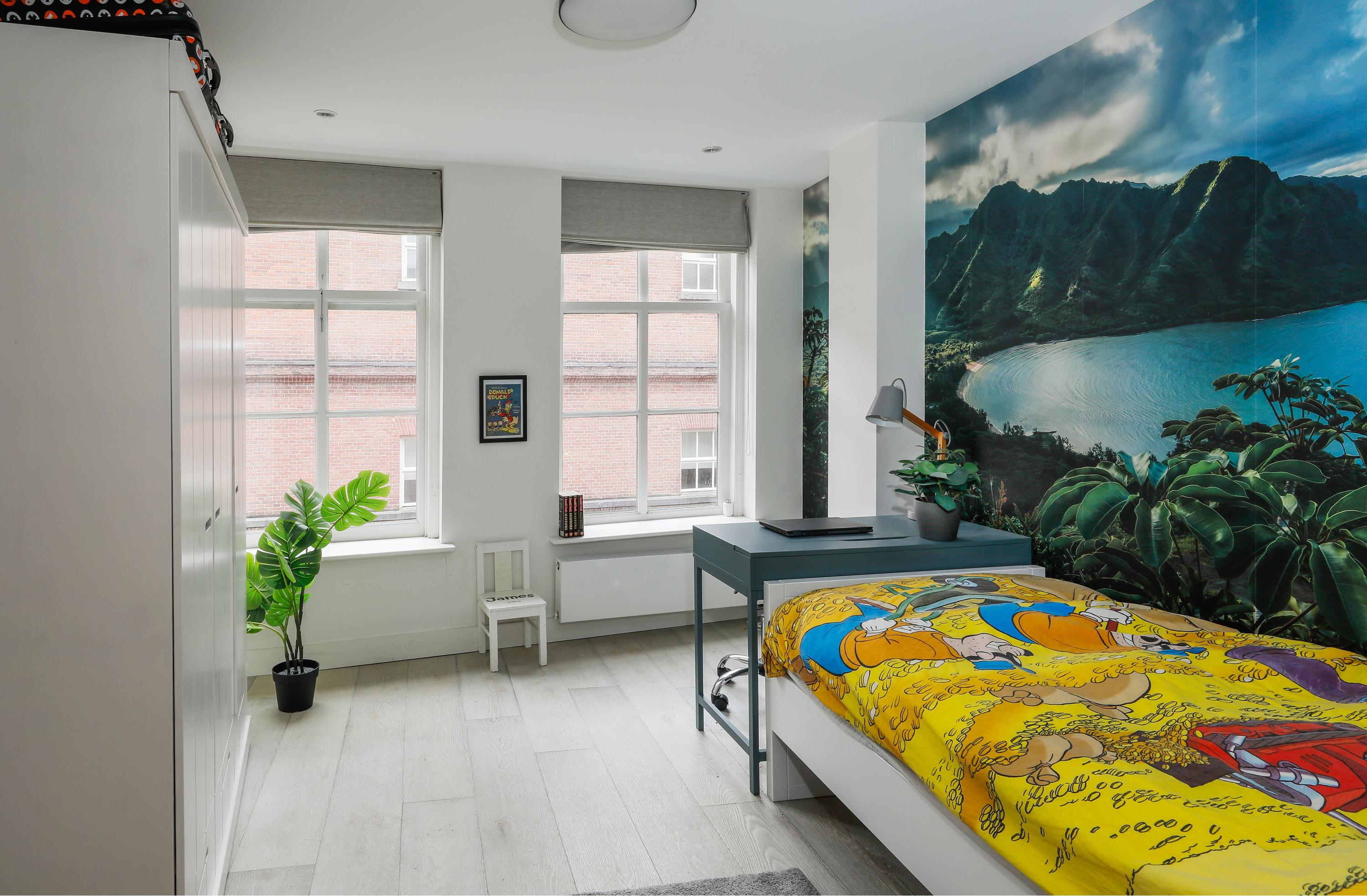 The other three bedrooms are for the children. Two bedrooms are at the front, both with two windows for relaxing. The back room opens onto the roof terrace.