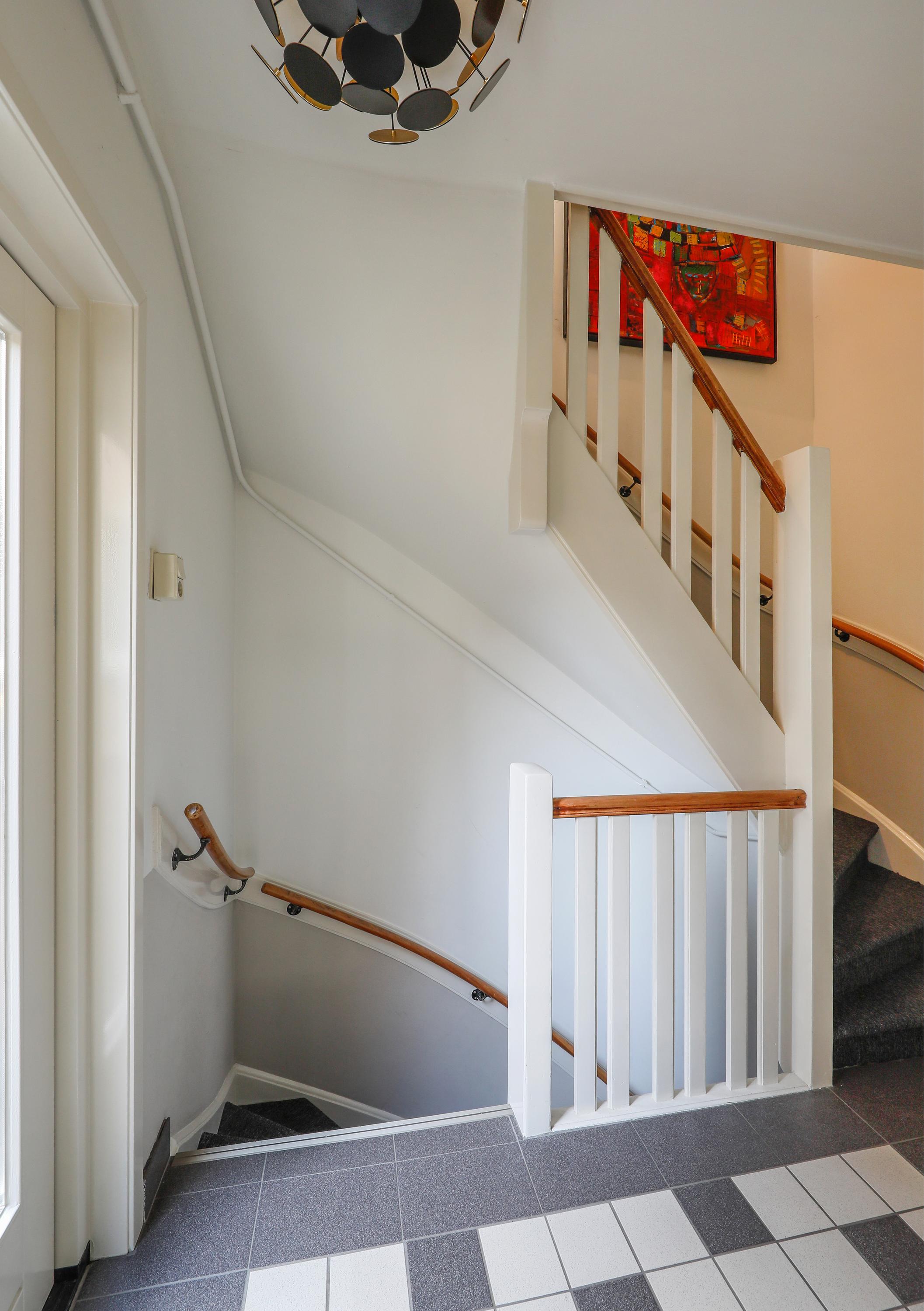 Private entrance with an exclusive hallway, featuring beautiful Winckelmans tiles and space for a coat rack and bicycle.