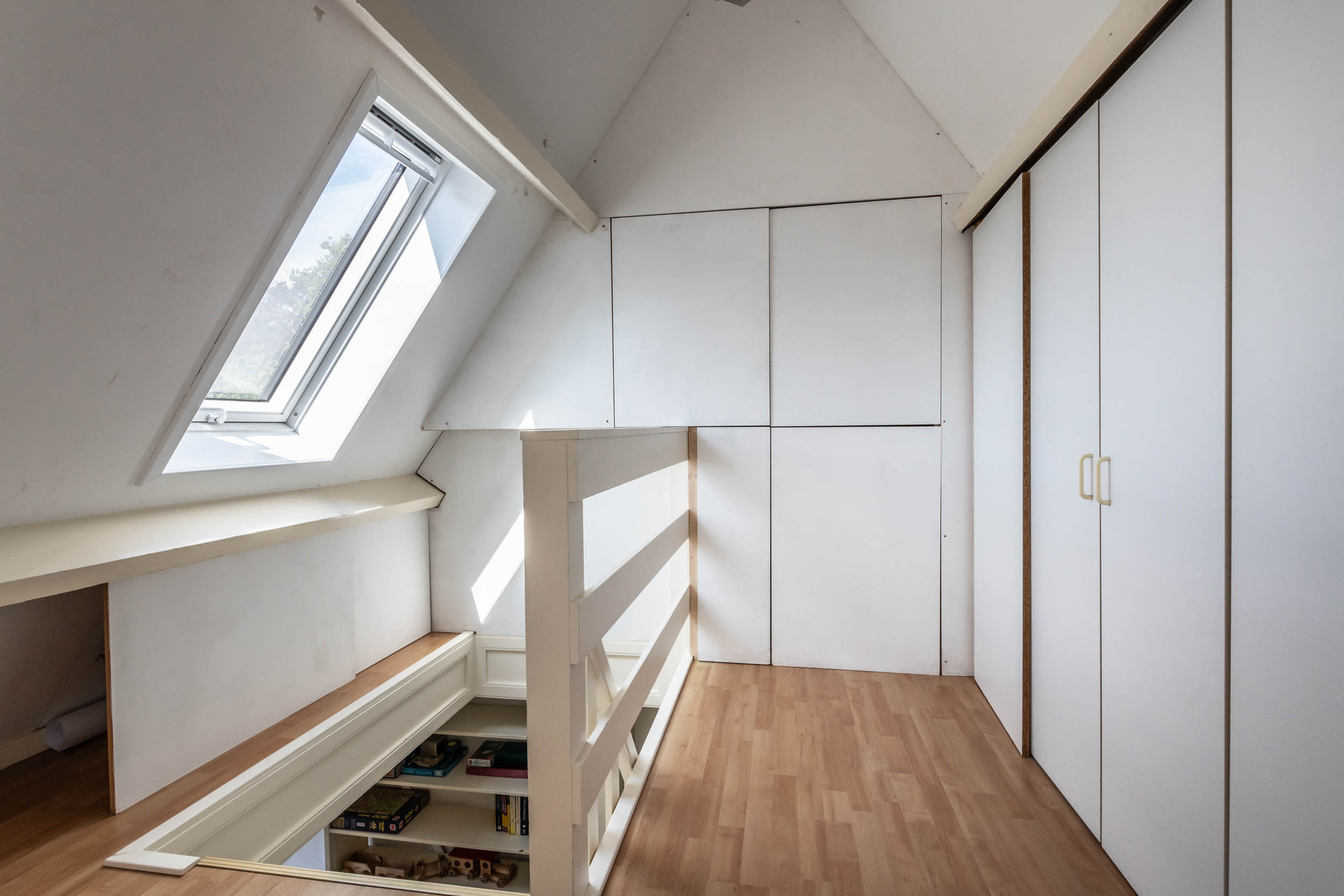 Landing with cupboard space and central heating boiler (2025), large, ridge-high bedroom with Velux window