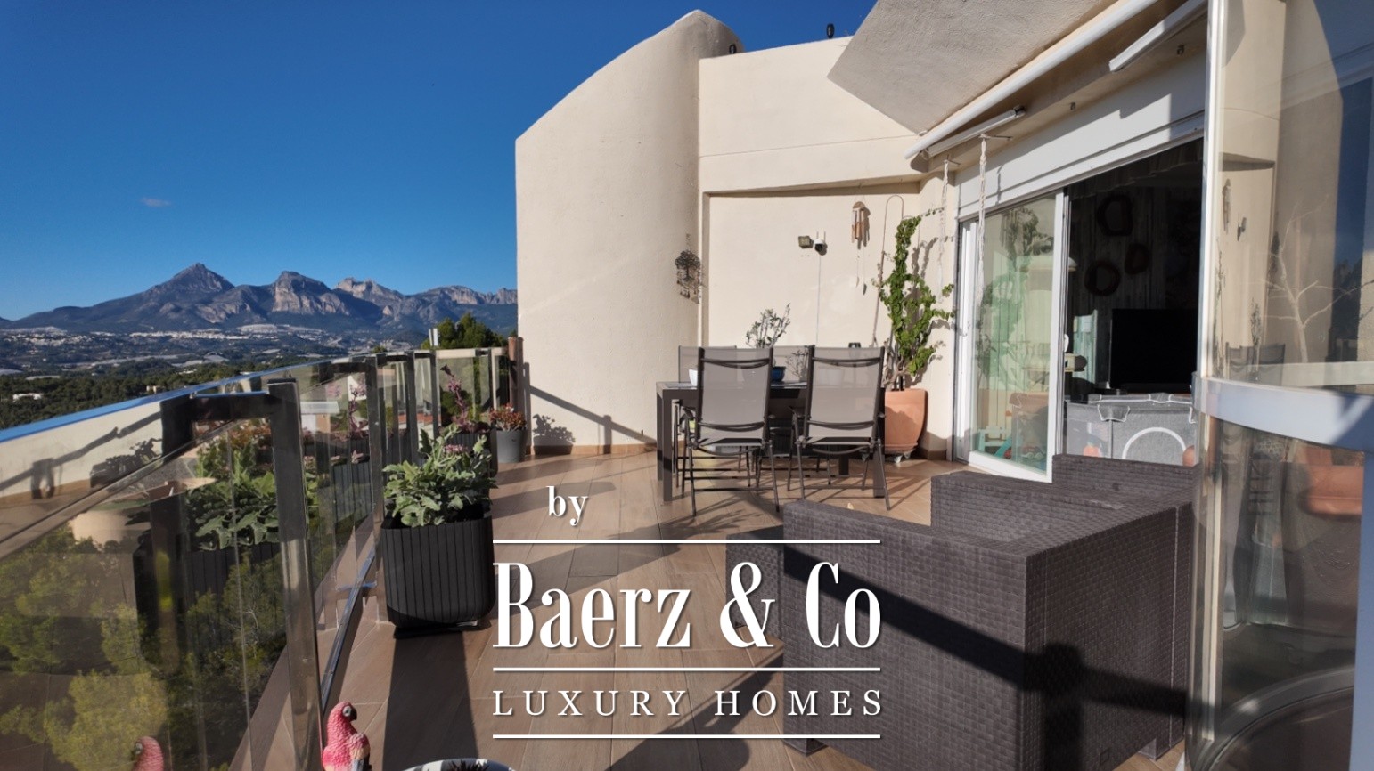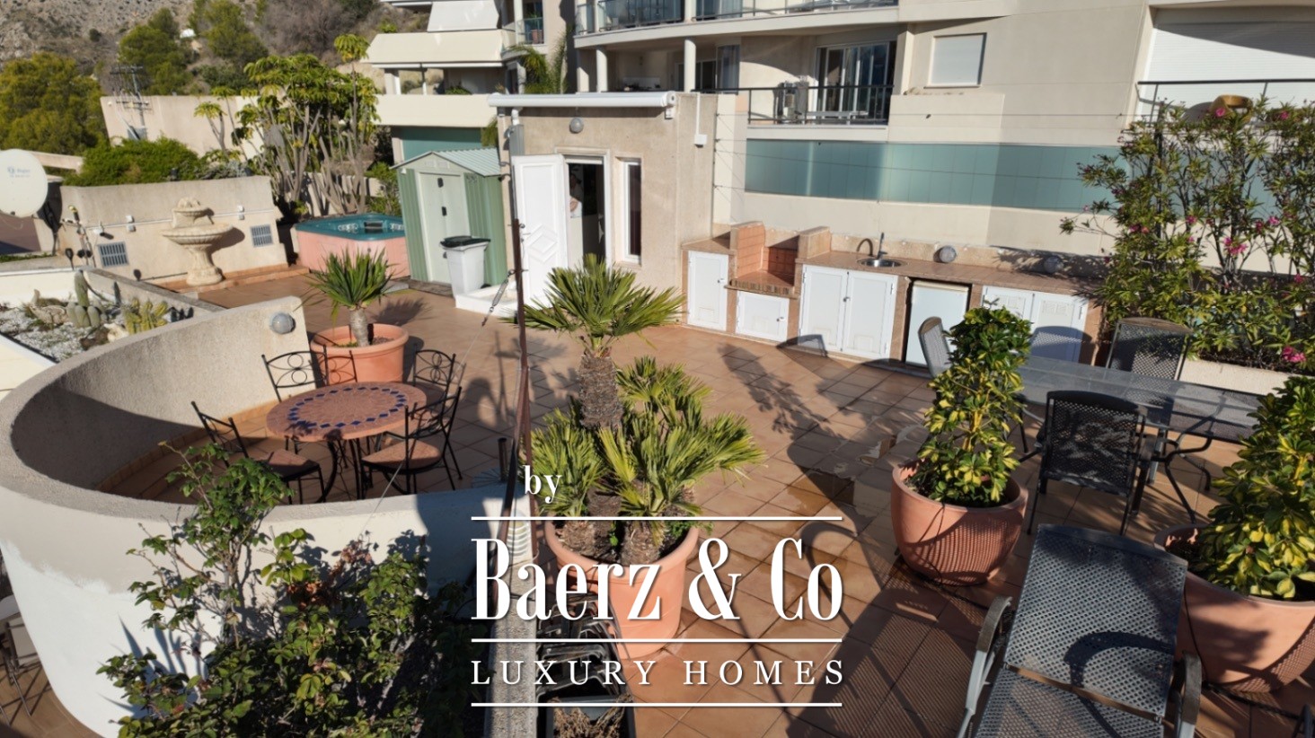 Penthouse Altea la Vieja introduces a private vantage point above the Costa Blanca, where 261 m² of living space unfold across refined interiors and expansive terraces. This penthouse in Altea la Vieja, only 10 minutes from Mascarat beach and moments from Don Cayo Golf Club, the marina, and the historic town center, presents a tranquil address attuned to both relaxation and effortless connection.