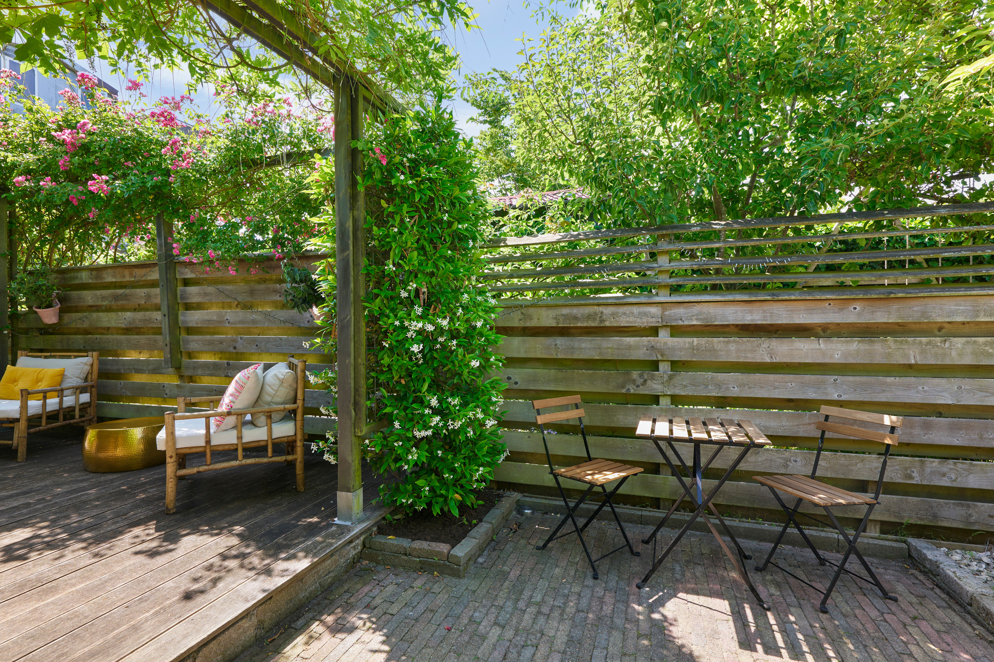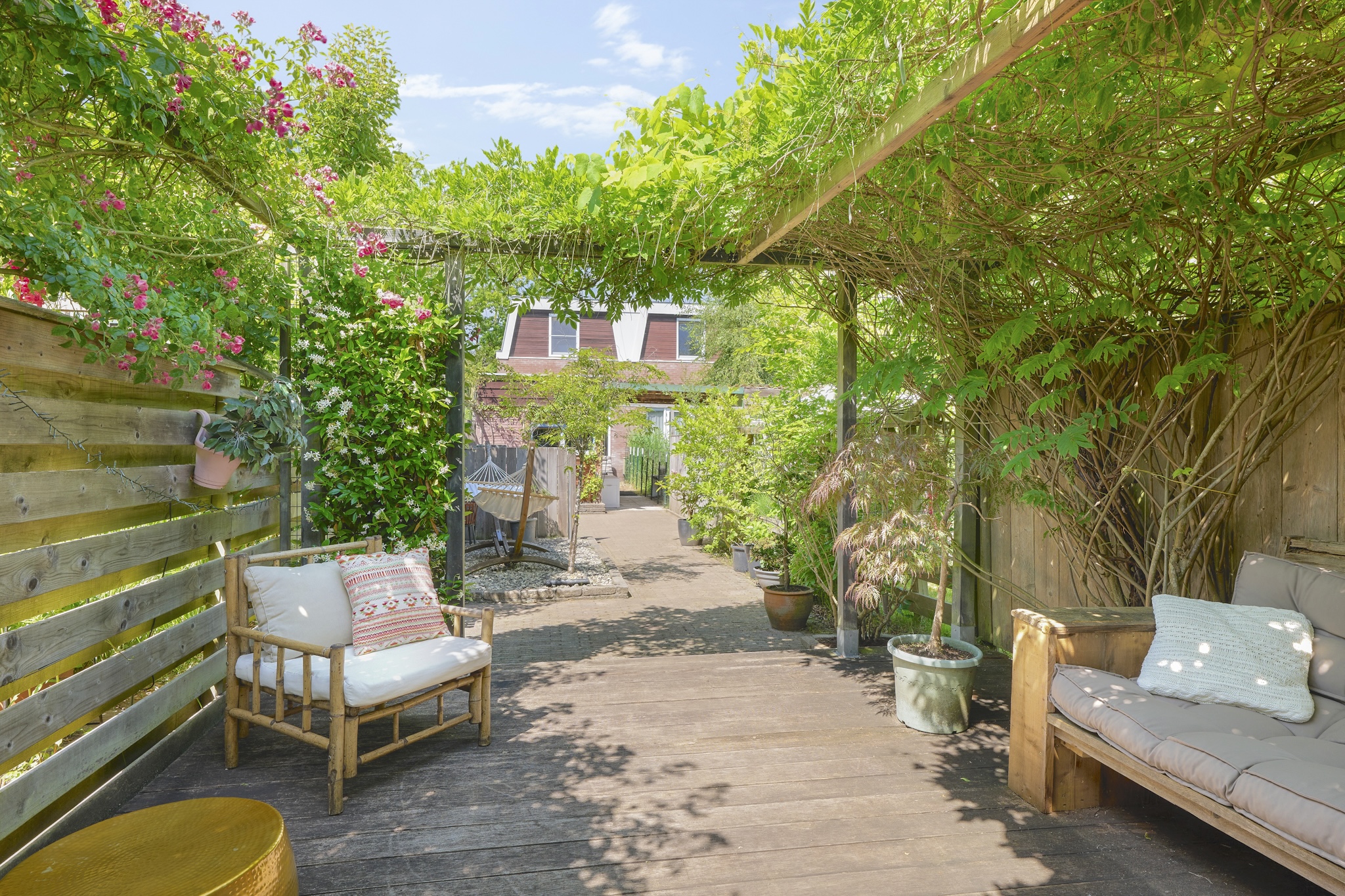 The garden is beautifully landscaped with a combination of terraces, borders, and lush planting. Thanks to its generous size, the garden offers plenty of opportunities – for children to play, for setting up an outdoor kitchen, or even creating a vegetable garden. The atmosphere is that of a green urban idyll: an oasis of peace and privacy in the heart of Amstelveen, where you can fully enjoy outdoor living.
