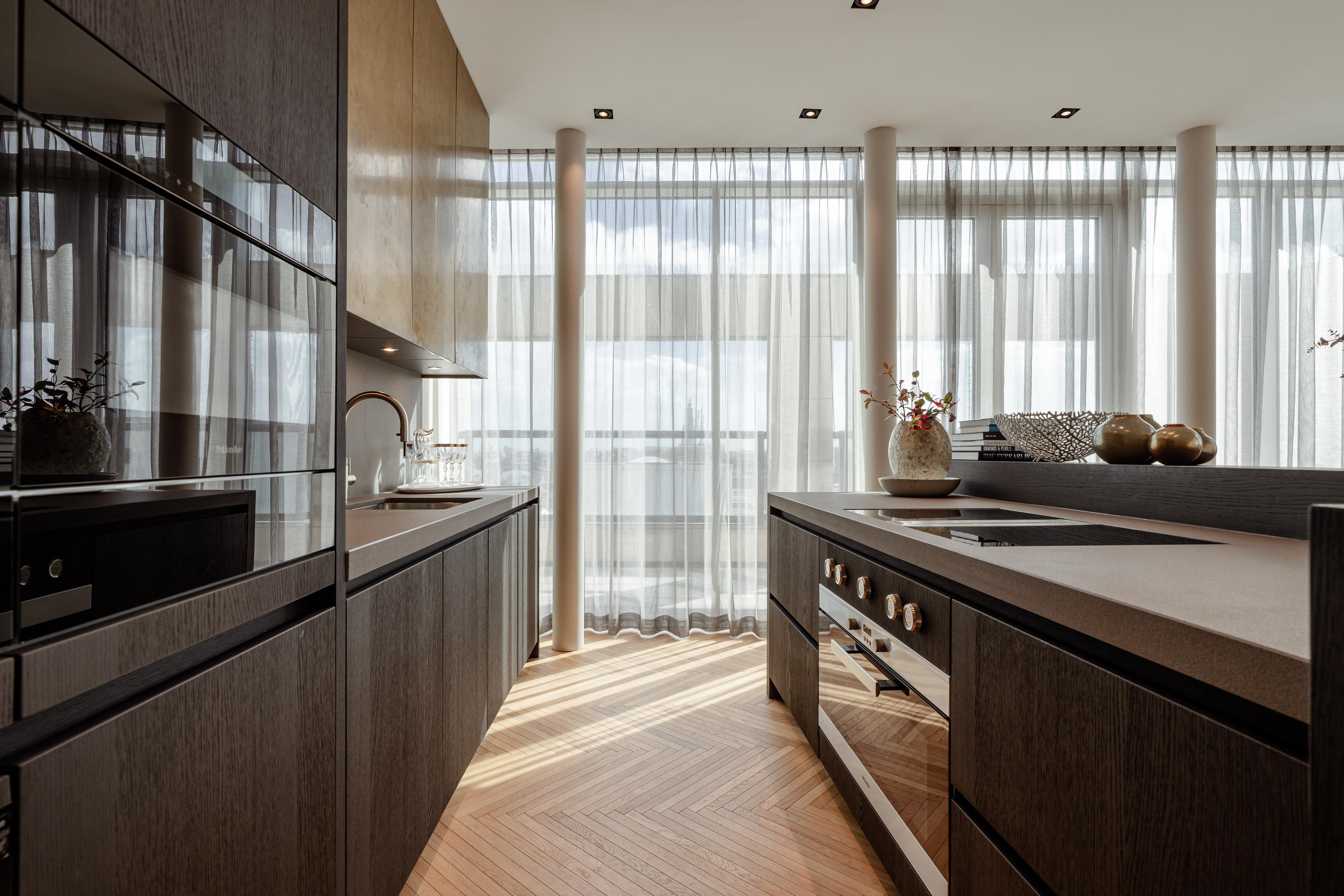 The large glass façades allow you to fully embrace the vibrant city life outside or close it off entirely to enjoy privacy and tranquility. The high-quality materials and finishes ensure a refined and comfortable living experience. The interior has been designed under the supervision of internationally renowned interior architect Pieter Laureys and finished to the highest standards. The apartment is offered including new, carefully selected bespoke furniture.