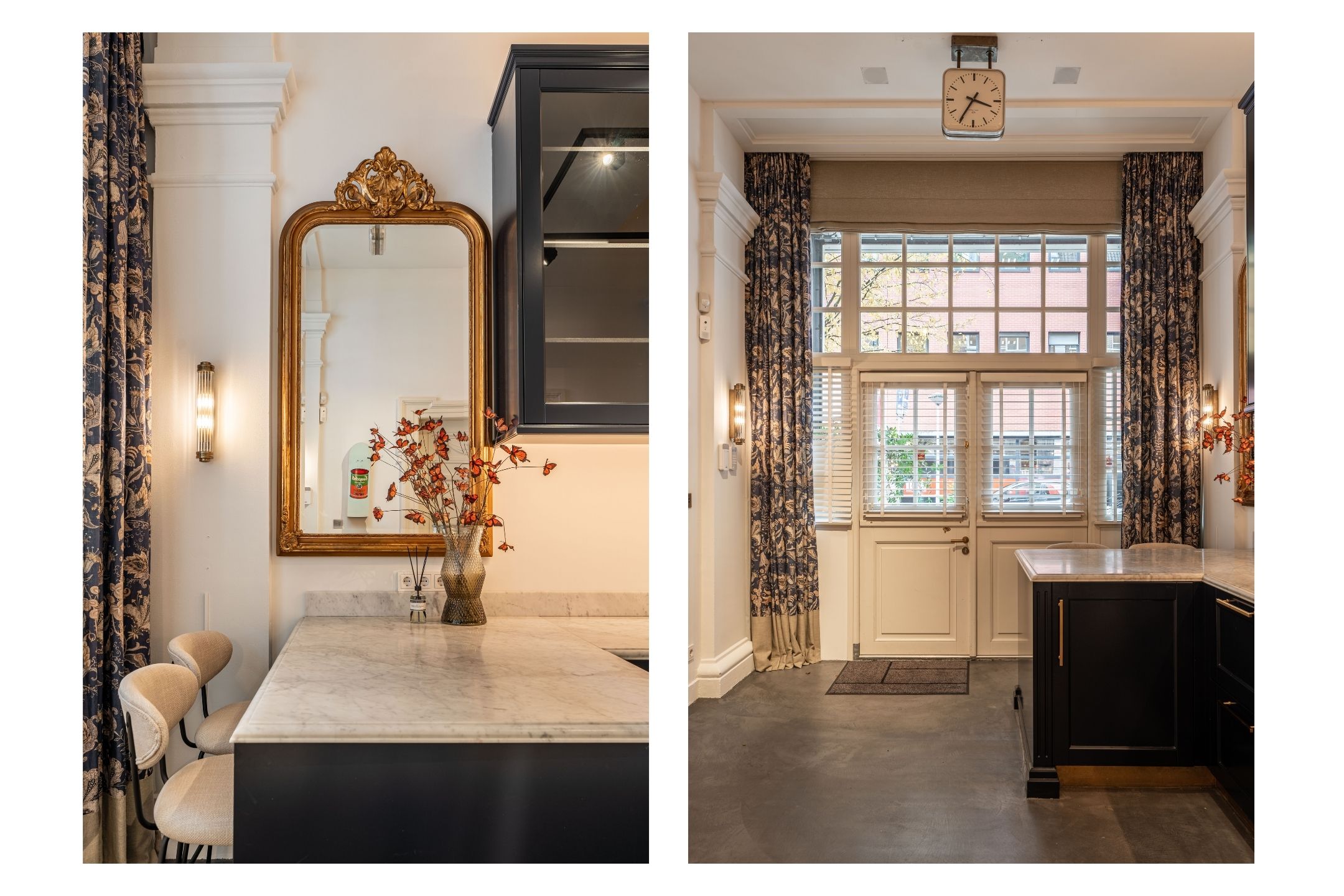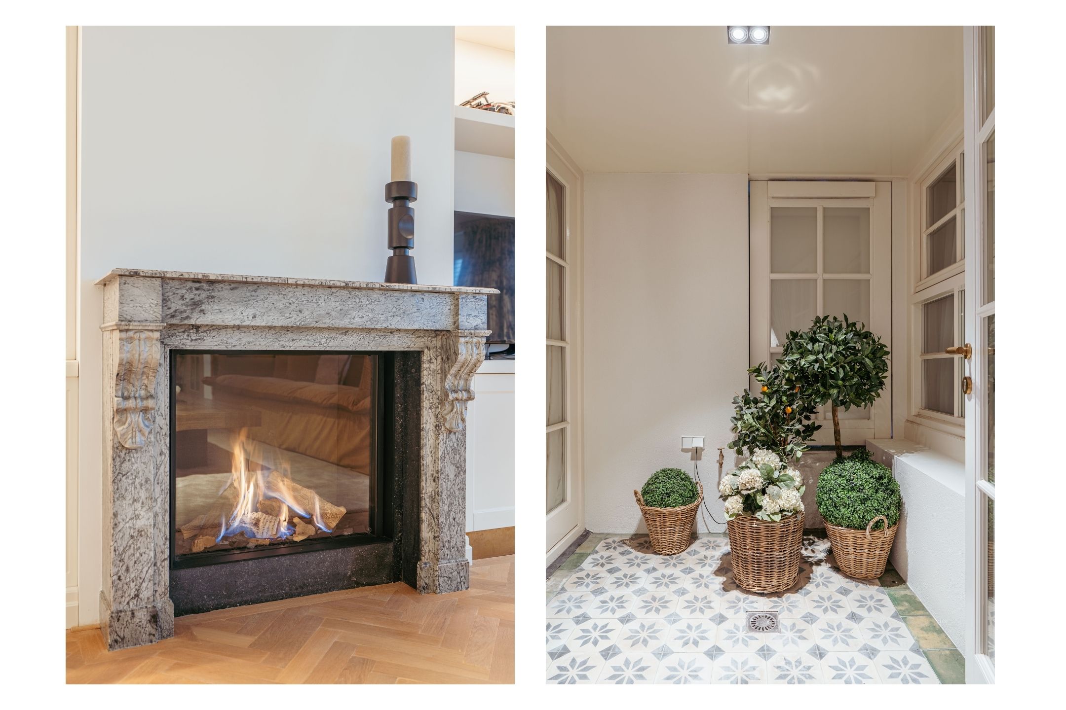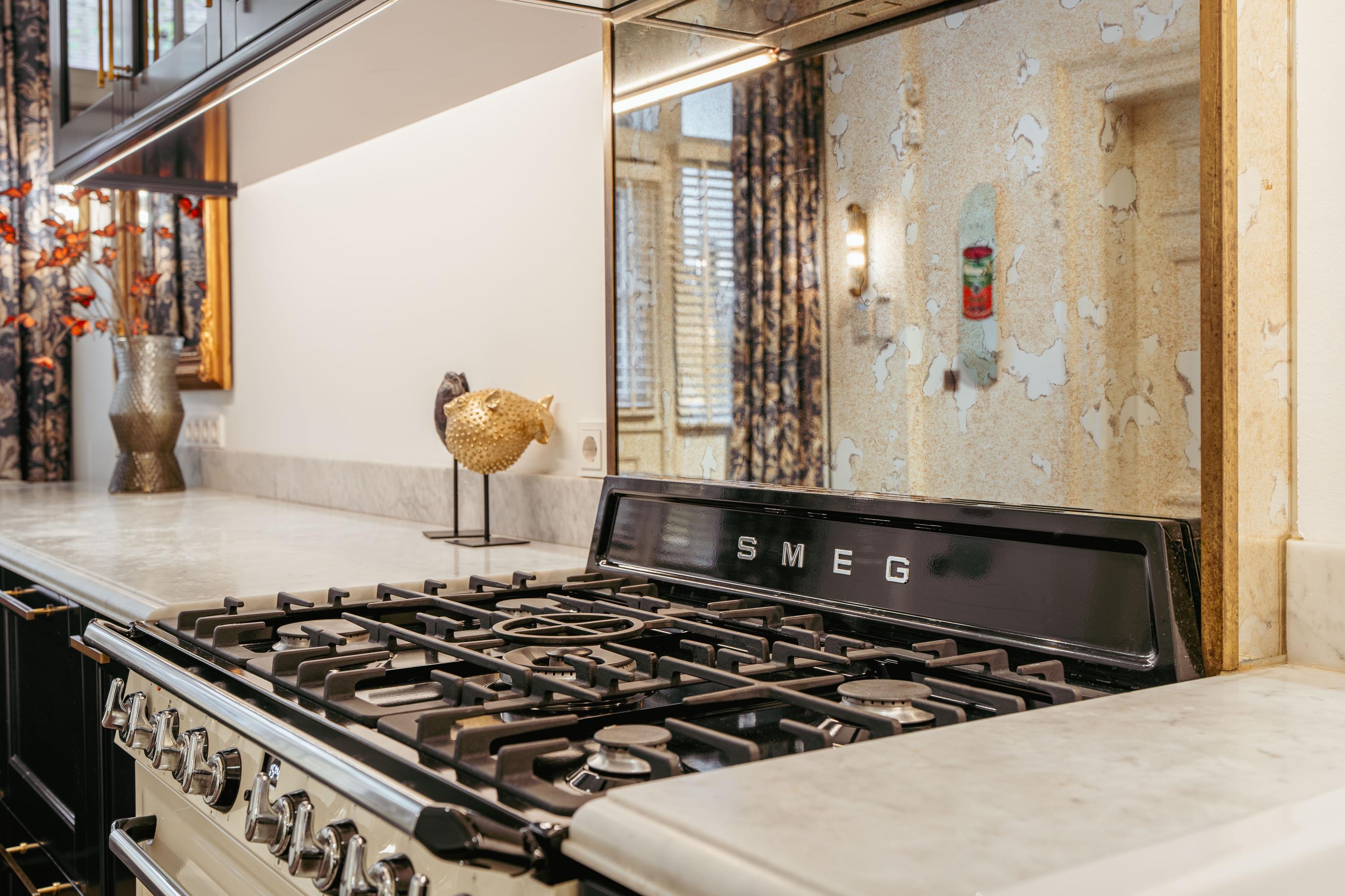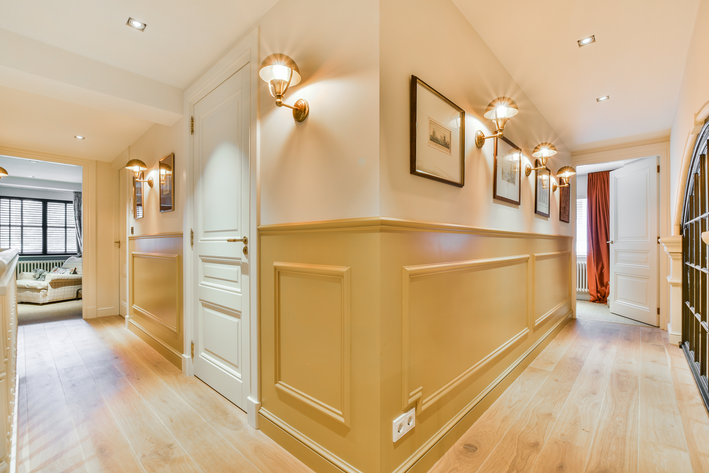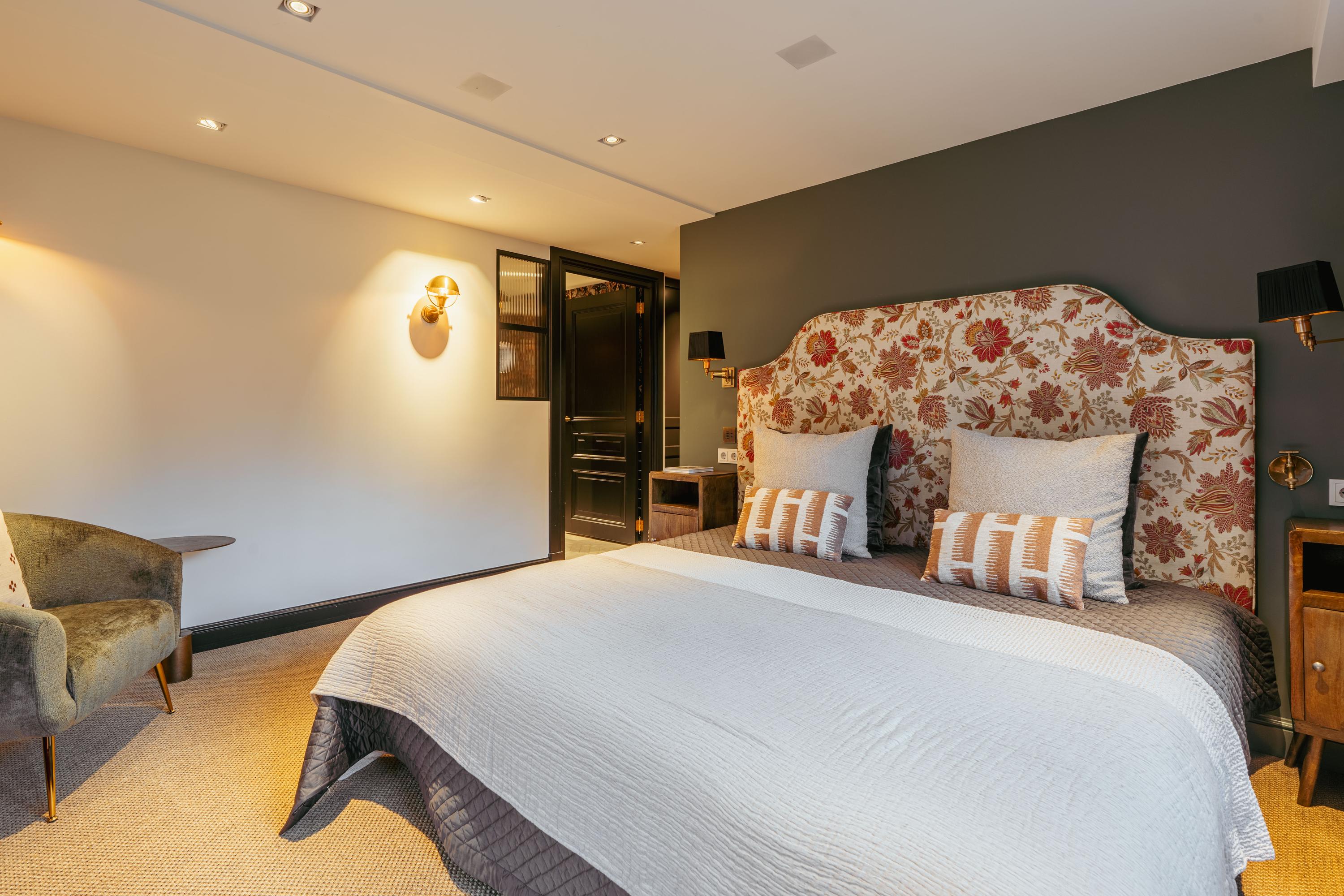 Through an elegant entrance, you step into the spacious and stylishly designed open-plan kitchen. The kitchen is equipped with various built-in appliances, including a dishwasher, gas stove with oven, and a Quooker. The varying ceiling heights in different areas add a playful and dynamic touch to the home. Between the kitchen and the sitting room, there is a study/office space and a large toilet. The living room features a beautiful herringbone parquet floor, custom-built cabinetry, and a projector with a screen. To complete the cozy ambiance, a large gas fireplace has been installed. Both the kitchen and a separate entrance from the street provide access to the guest quarters, which include an additional kitchen, bathroom, and laundry facilities. This space is perfect for accommodating guests or an au pair.