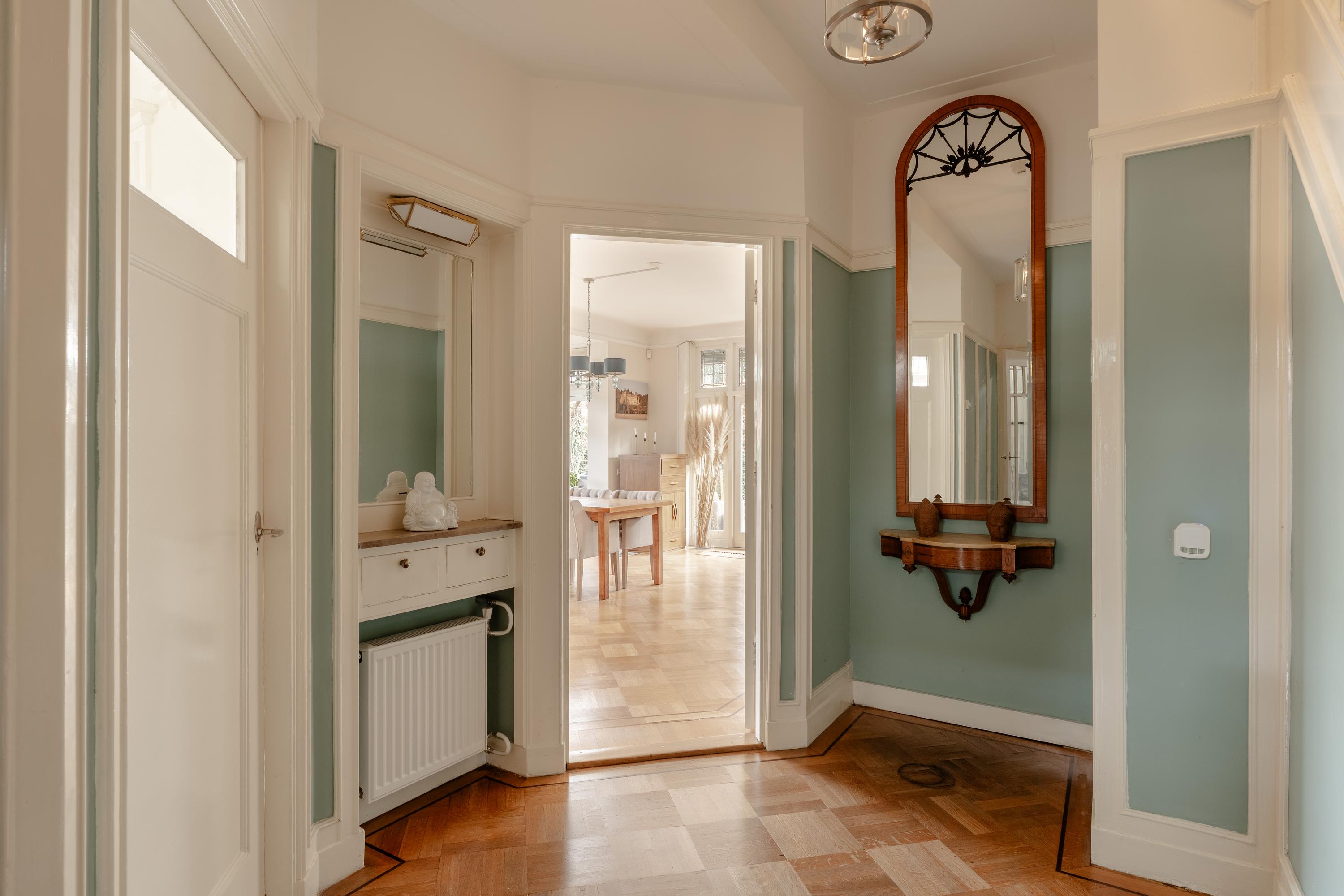 You enter the property through the stately entrance with vestibule, leading into the spacious central hallway. The hall provides access to the cloakroom and a separate toilet.