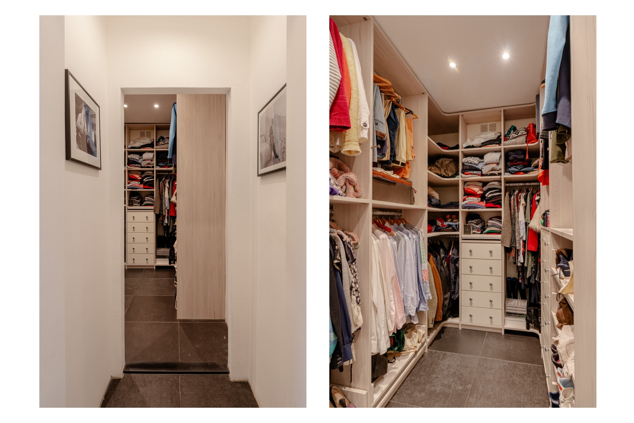 At the rear of the house is the spacious master bedroom with access to the balcony. The classic bathroom, finished in béton ciré, features a shower, double washbasin, towel radiator and a freestanding bathtub. The bathroom also provides access to the balcony through French doors.