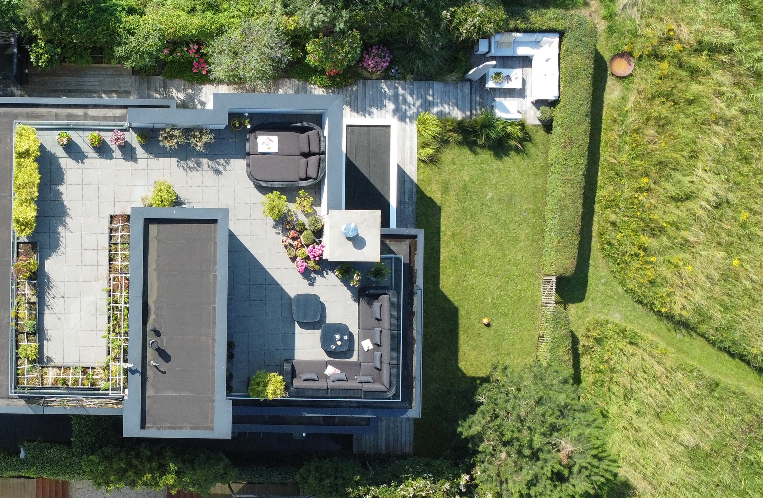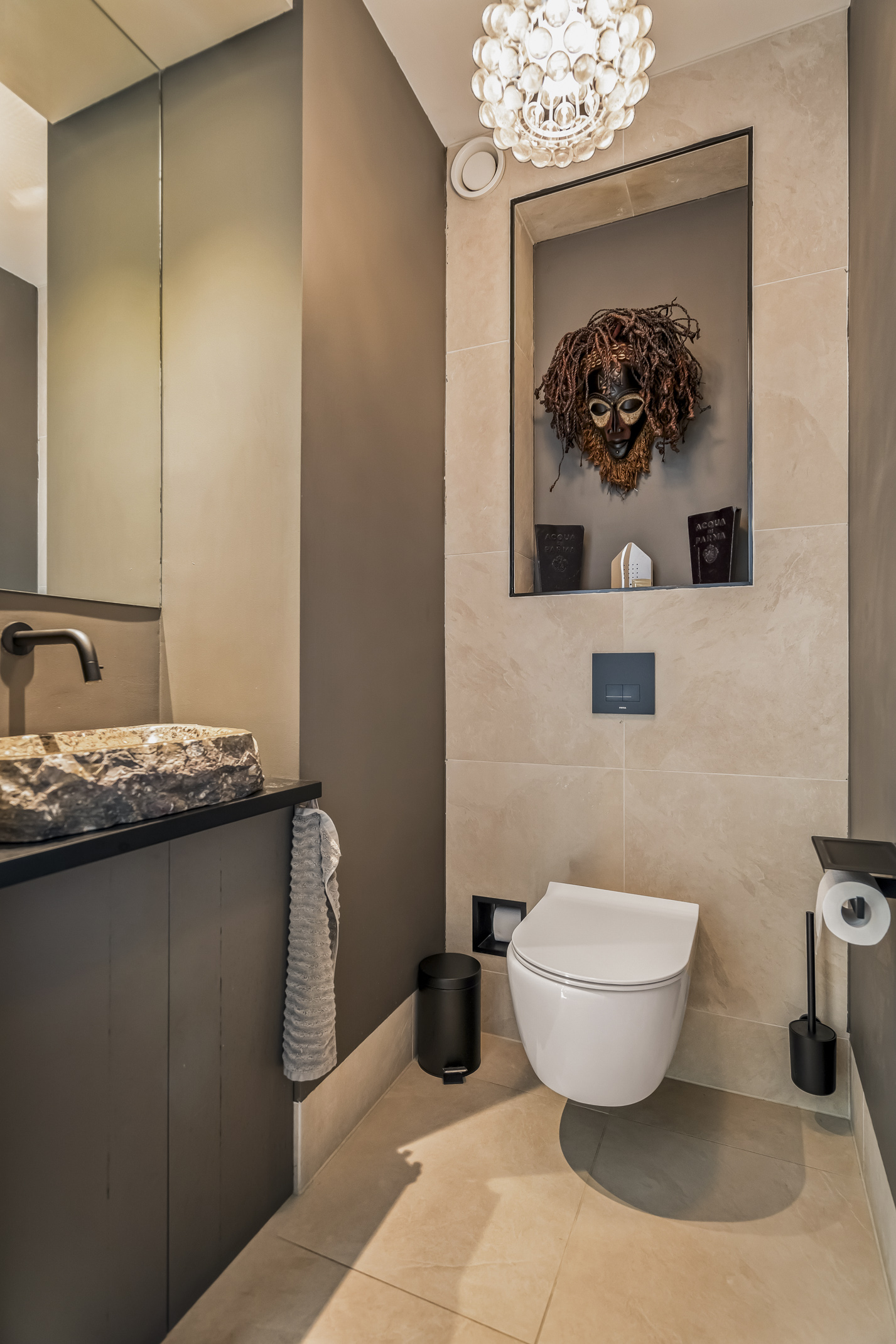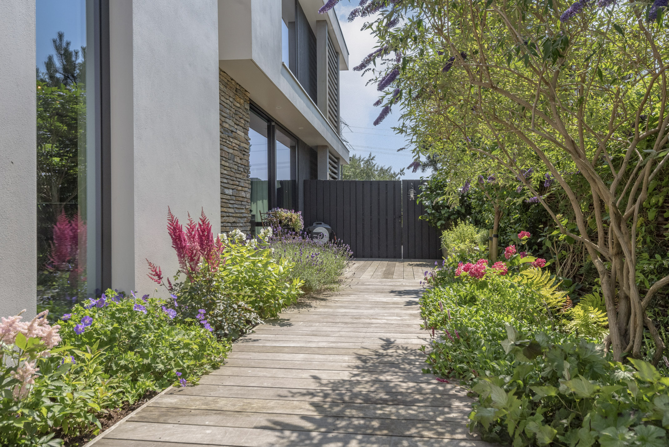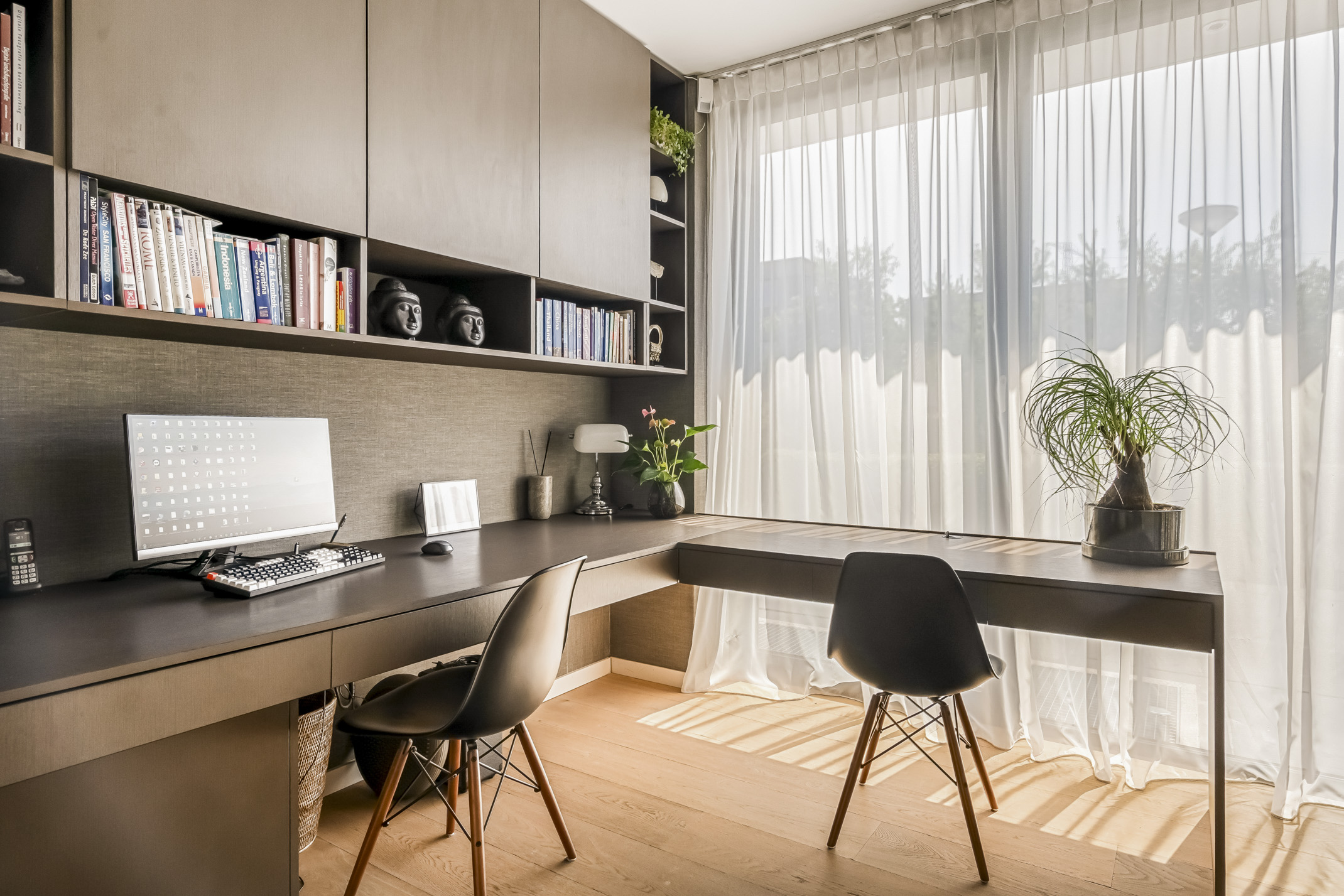 The luxurious kitchen is a dream for any chef, equipped with all modern appliances such as a Quooker, a Bora induction cooktop with integrated extraction system, dishwasher, extra large fridge and freezer, steam oven and a combi-oven. The coffee bar separates the kitchen from the study. There is also an outdoor kennel accessible from inside for your beloved pet.
