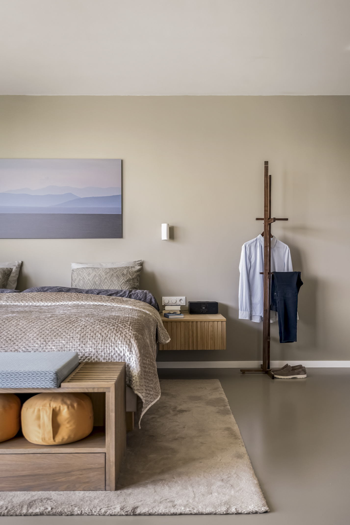 The spacious bedroom at the front can easily be divided into two bedrooms and offers a nice view of the entrance. This room is equipped with electric screens.