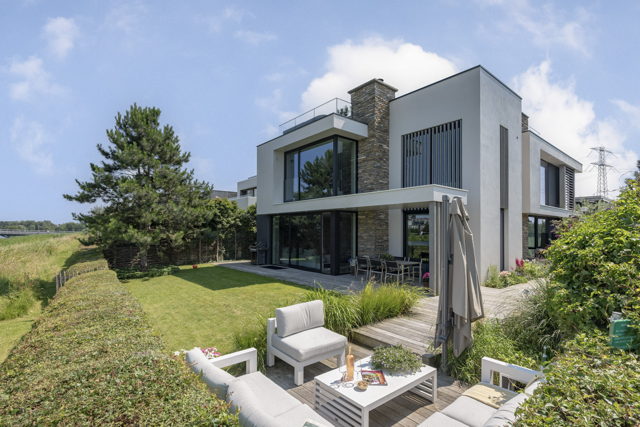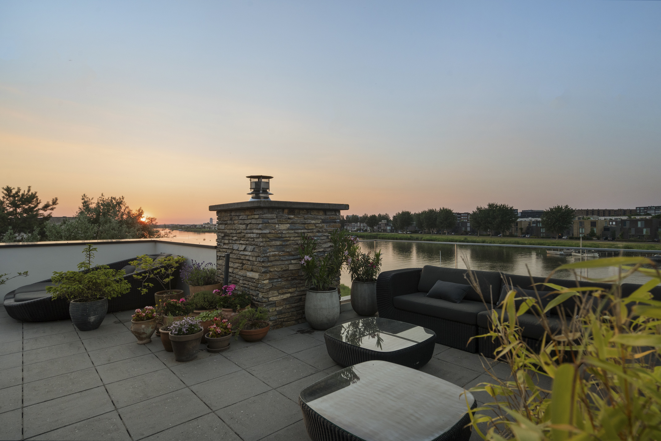 This dream villa exceeds all expectations with panoramic views from every floor over the water, a sensational rooftop terrace, 7 (bed)rooms, 3 luxurious bathrooms, an integrated garage and parking space for 4 or 5 cars on private grounds.