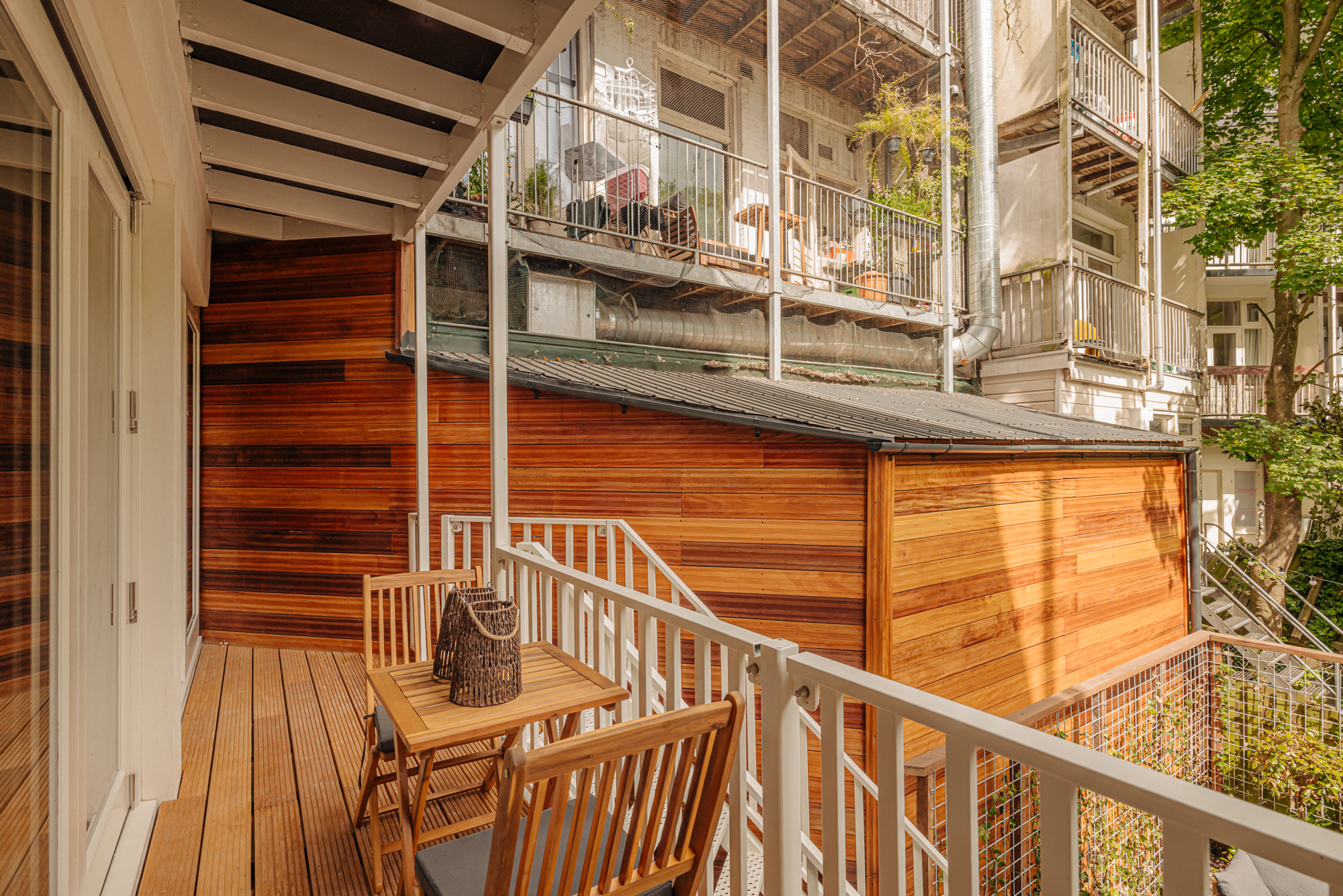 Private entrance on the ground floor. An open hallway with stairs leads up to the main living level (bel-etage).