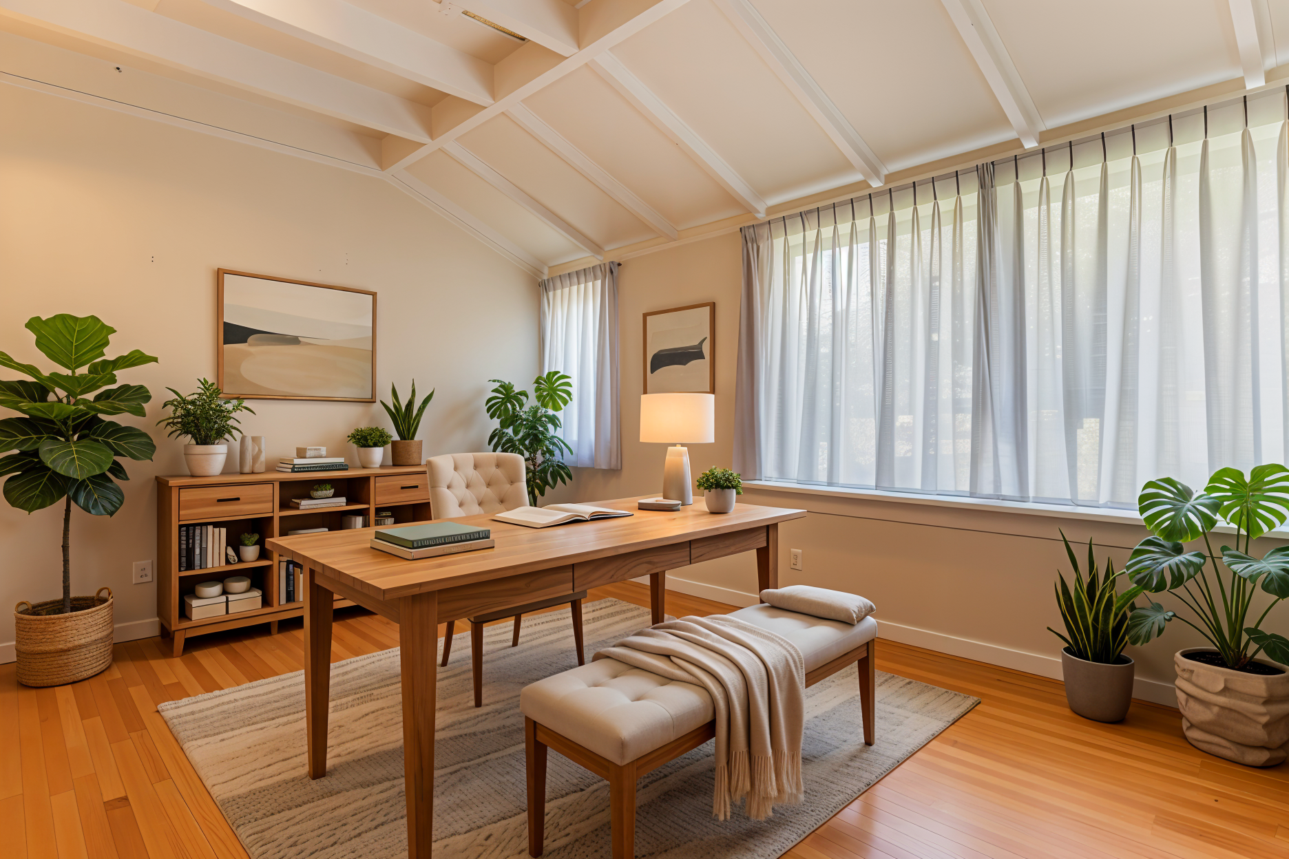 A welcoming hallway with original tiled flooring and a kitchenette with utility connections form a practical base. Two spacious rooms, previously used as offices, can be flexibly arranged – whether as workspace, guest suite, studio or lounge. With natural daylight and a warm ambience, this is a fully functional living level that combines residential comfort and professional use with ease.