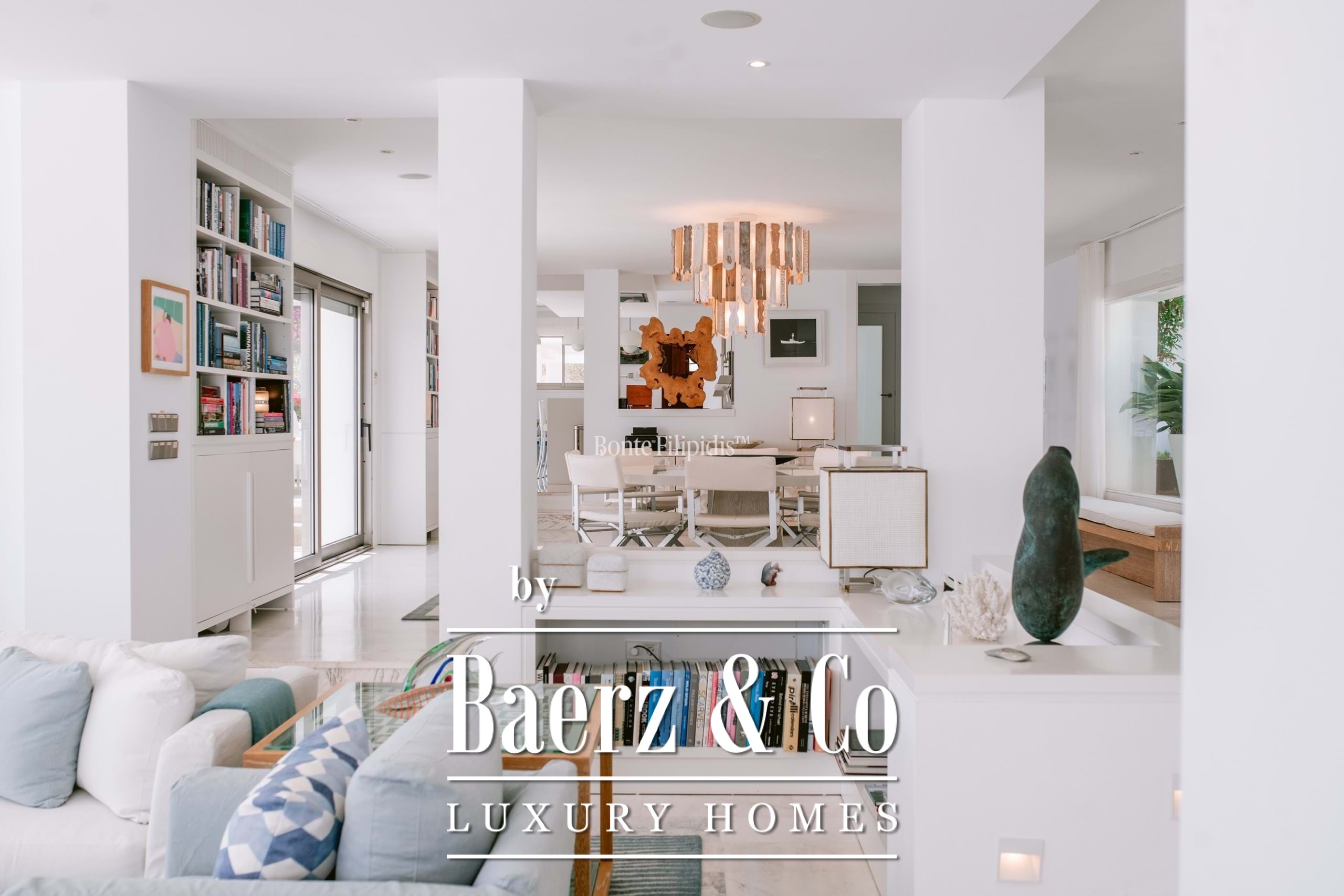 Amenities include a home cinema, gym, underfloor heating, and a comprehensive security system. With swift access to Ibiza Town and the marina, this Mediterranean villa in Área de Eivissa offers a serene yet connected retreat, harmonizing timeless architecture with modern comfort and iconic island views.