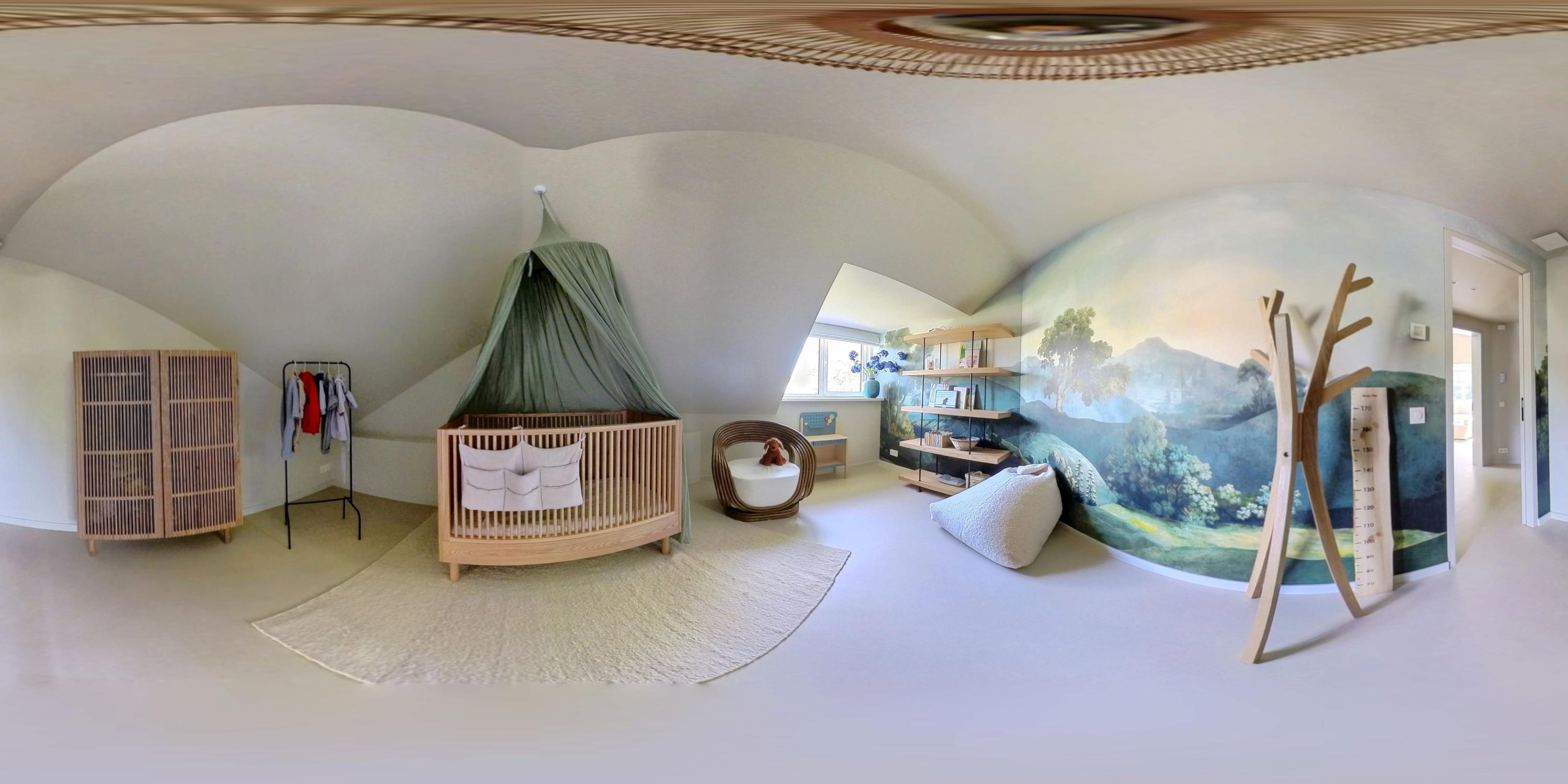 A staircase in the hallway leads to the first floor, where you will find three generously sized bedrooms. Thanks to their large dimensions, it would be simple to create a fourth or even fifth bedroom. The luxurious master bedroom features a freestanding bathtub, an en-suite bathroom, built-in wardrobes, and a spacious walk-in closet. The large bathroom is fitted with a double washbasin, walk-in shower, and WC. On the opposite side of the hallway, the second bathroom is also equipped with a walk-in shower, WC, and washbasin.