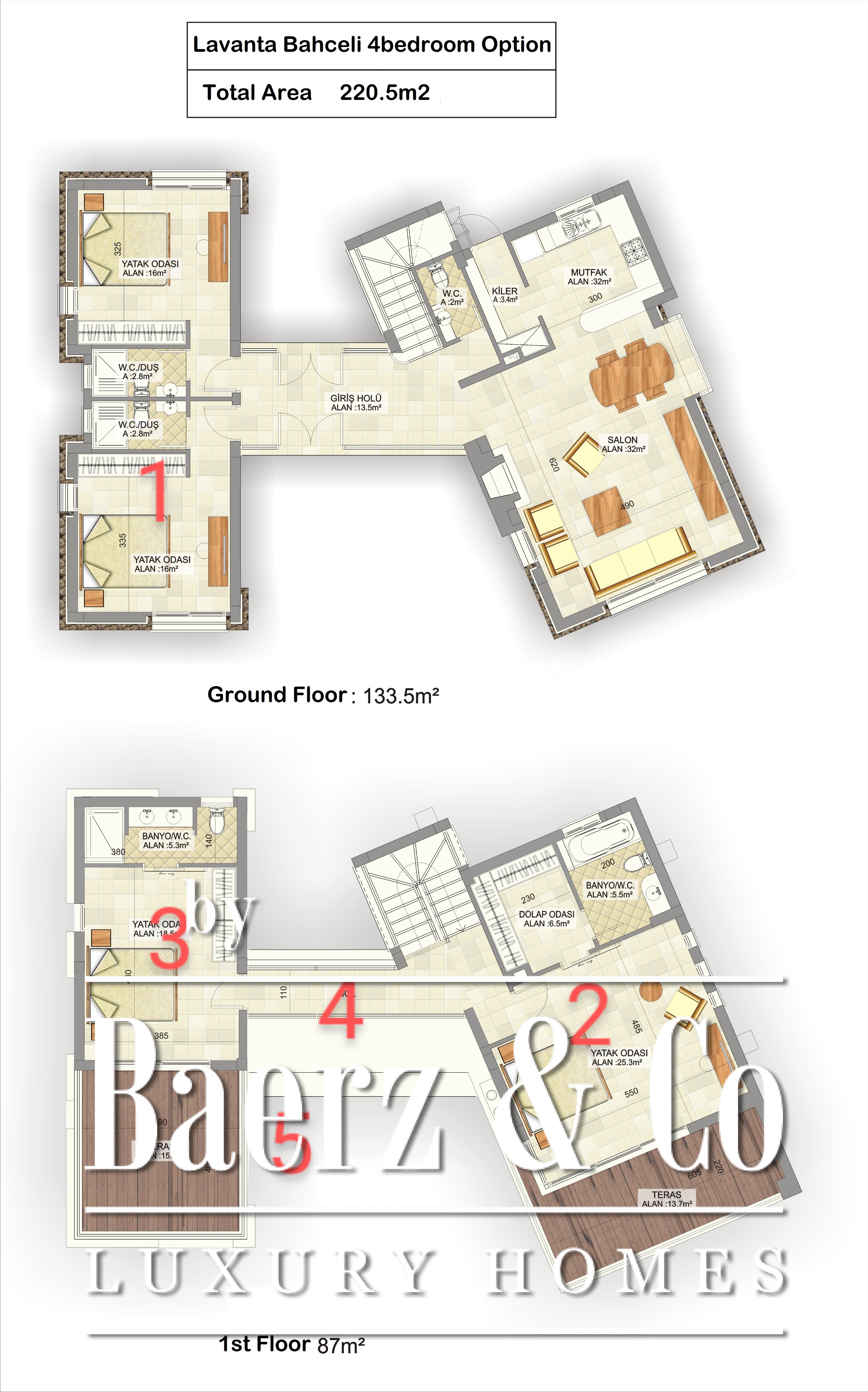 Standard specifications include underfloor central heating and air conditioning units throughout the property, granite worktops in the kitchen, all household appliances are AAA+ and are included along with fitted wardrobes in each bedroom, TV and internet points. Exterior specs include cyprus stone natural walls and iron railings, weatherproof lighting and electrical systems, exterior storage room and storage area for the boiler.