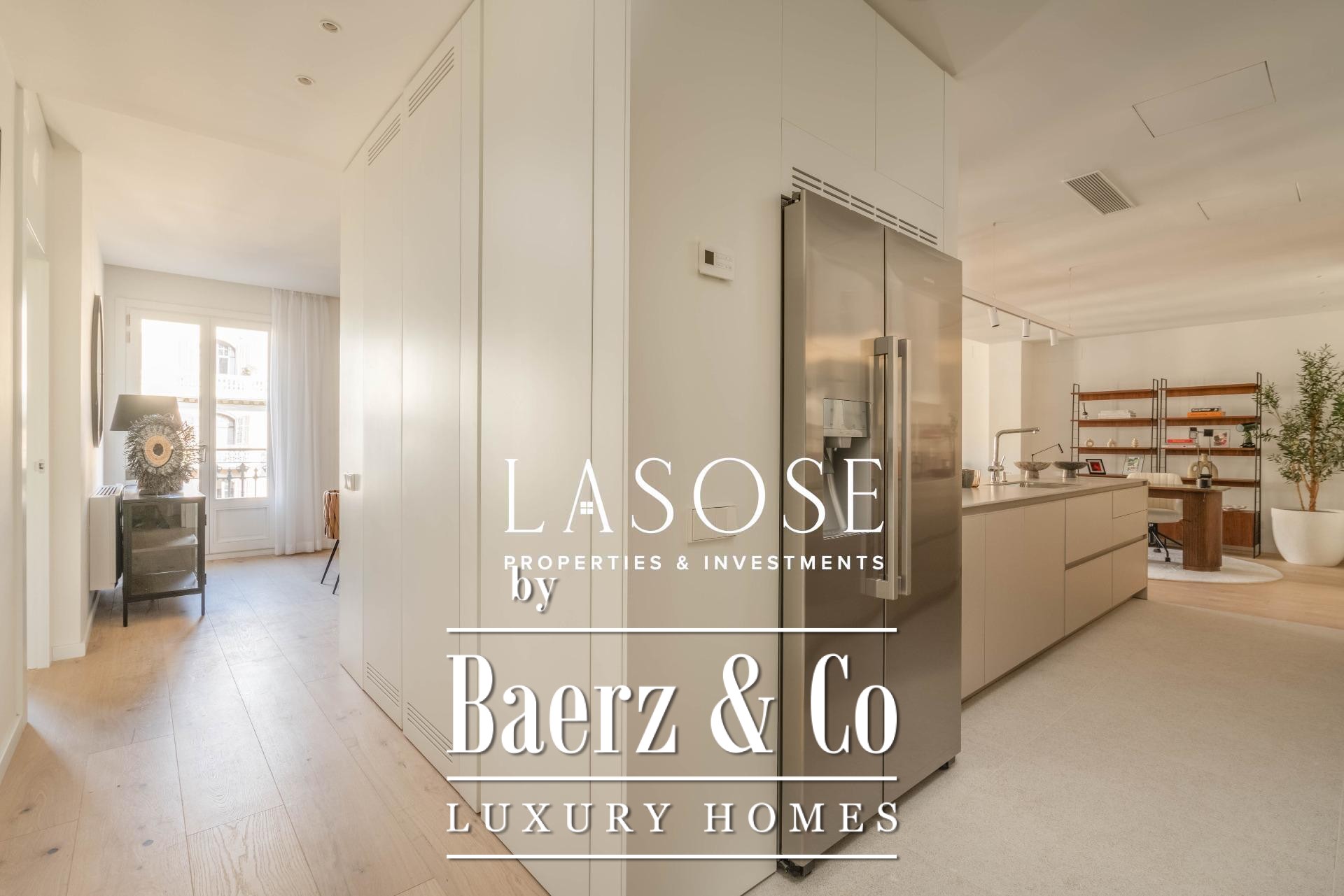 Within these walls, light moves fluidly between spaces, accentuating clean lines and generous proportions. The building integrates seamlessly with the distinctive rhythm of Eixample, whose octagonal blocks, broad avenues, and peerless connectivity set the pace of contemporary Barcelona living. Amenities include elevator access, built-in wardrobes, and a dedicated washing room, all composed without compromise.