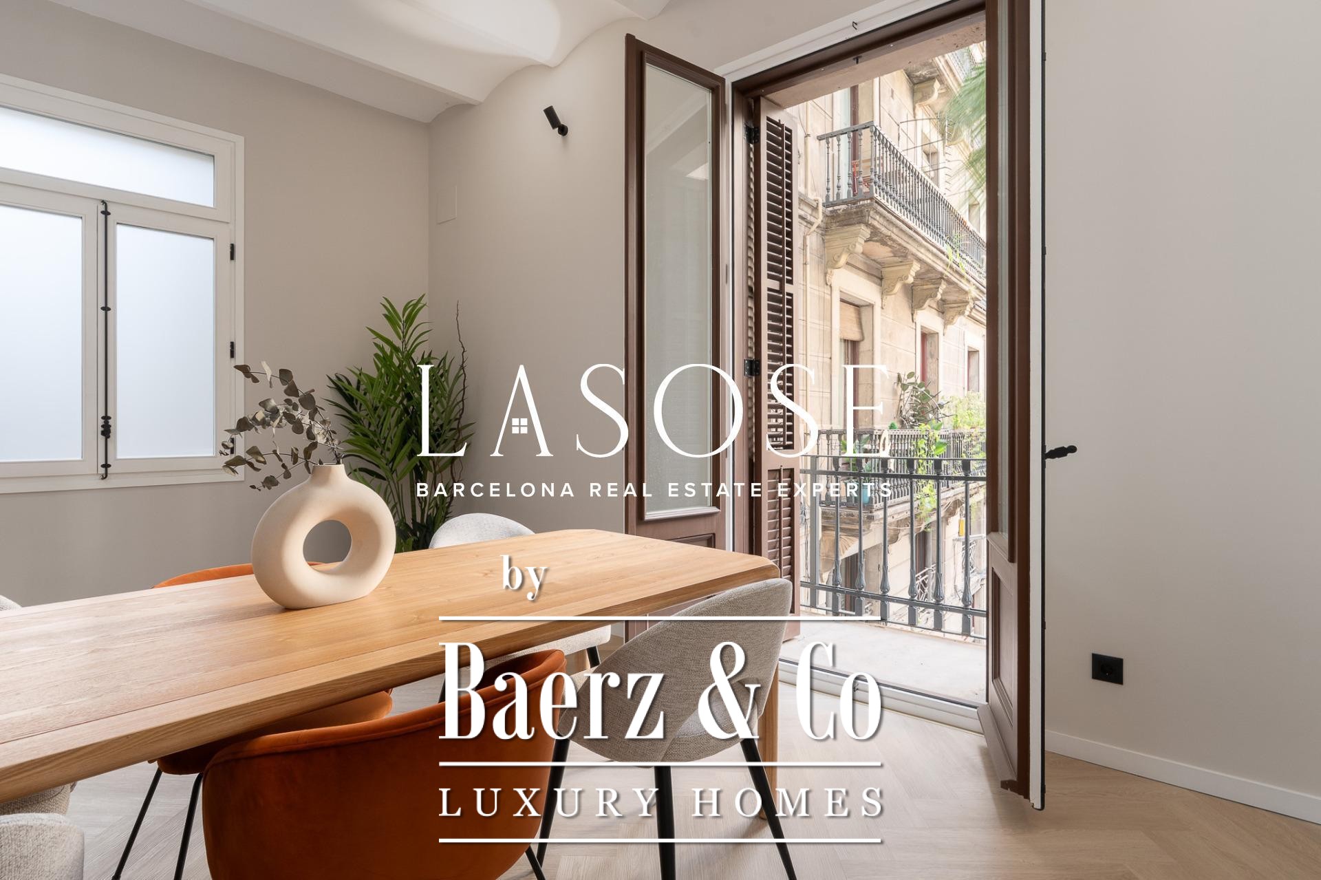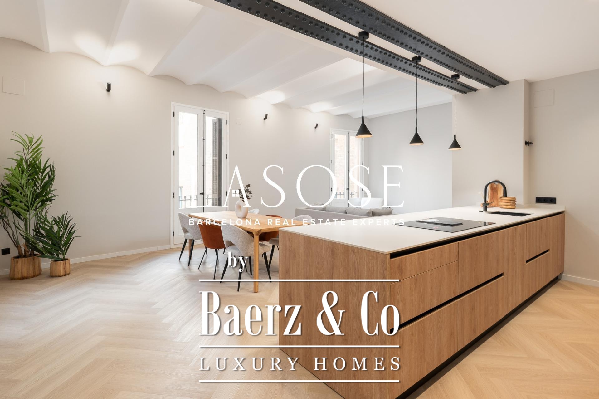 Apartment Barcelona blends the authenticity of a classic building with the refinement of meticulous renovation, positioned in the city’s historic center near the Cathedral and the Palau de la Música. This apartment, offering 140 m² of built space and a living area of 119.72 m², exemplifies thoughtful restoration using high quality materials while preserving timeless features such as the Catalan vault and wooden shutters.