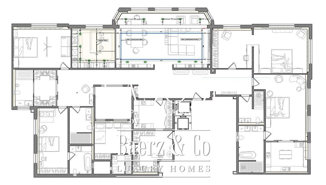 Apartment Barcelona Turó Park is an address defined by privacy, volume, and calm. This 455 m² residence occupies the third floor of a carefully maintained 1957 building with concierge presence and elevator, in one of Barcelona’s most distinguished neighborhoods. The apartment is presented with a high-end renovation project already underway, offering flexibility for those who seek a move-in-ready home or wish to individualize every detail.