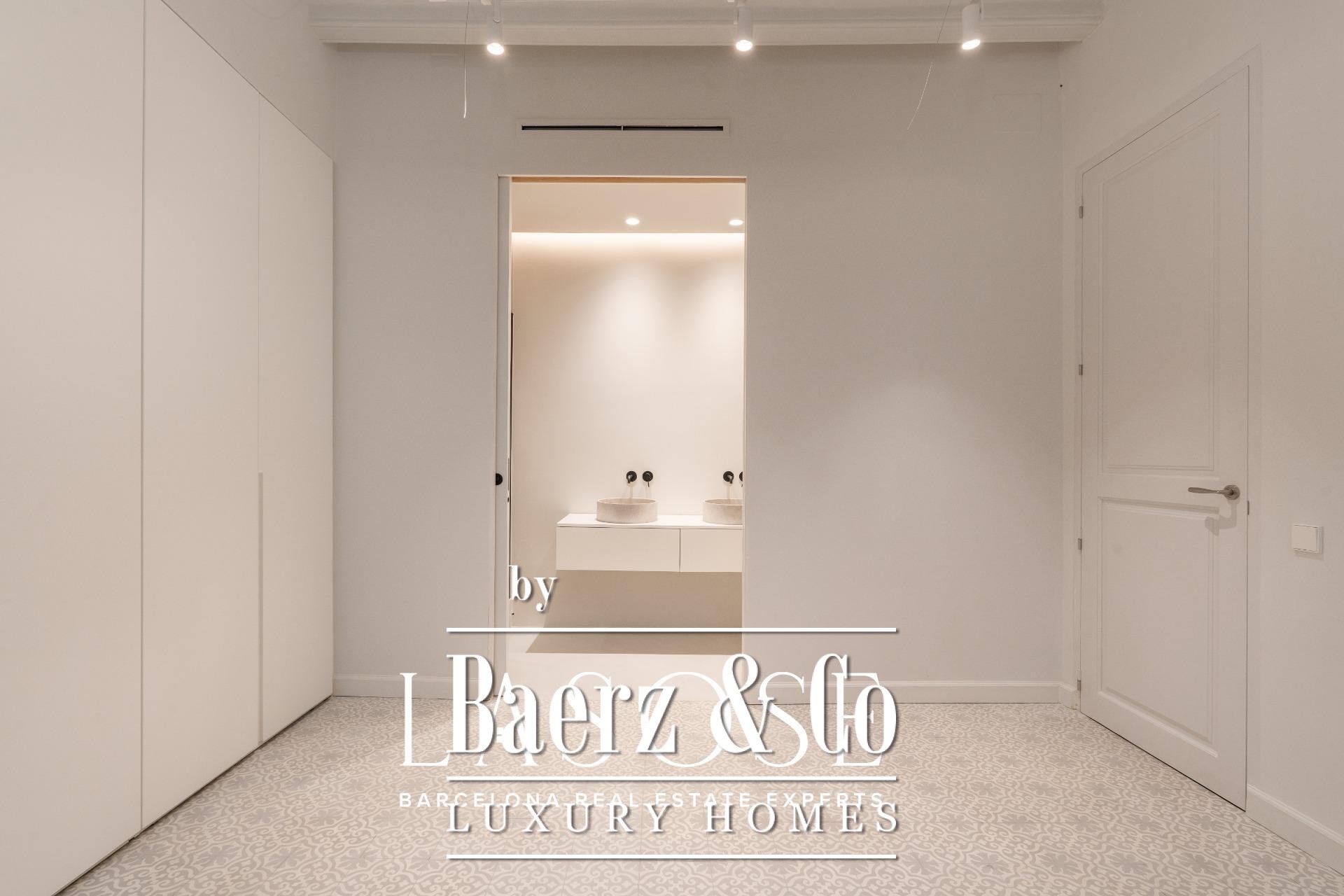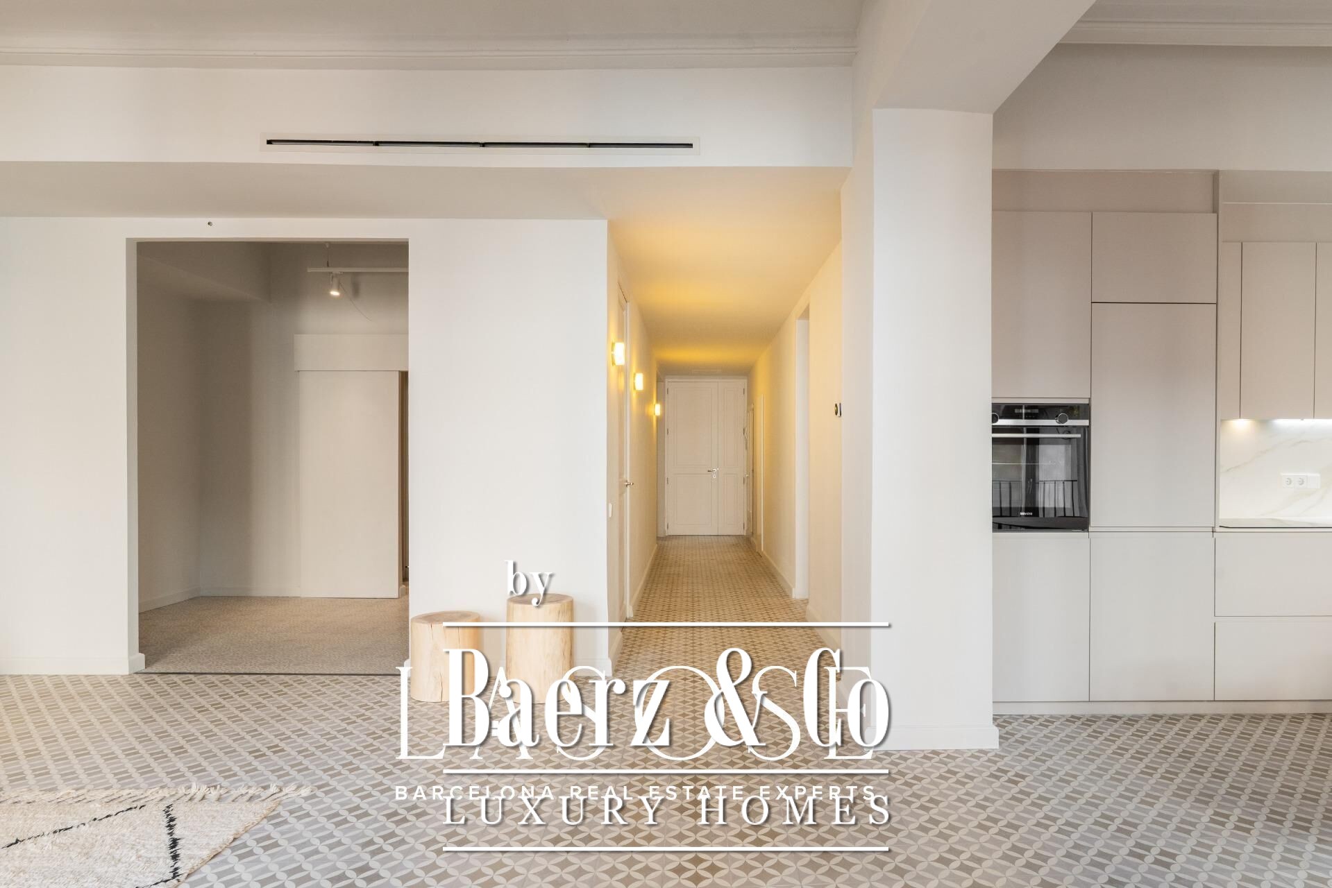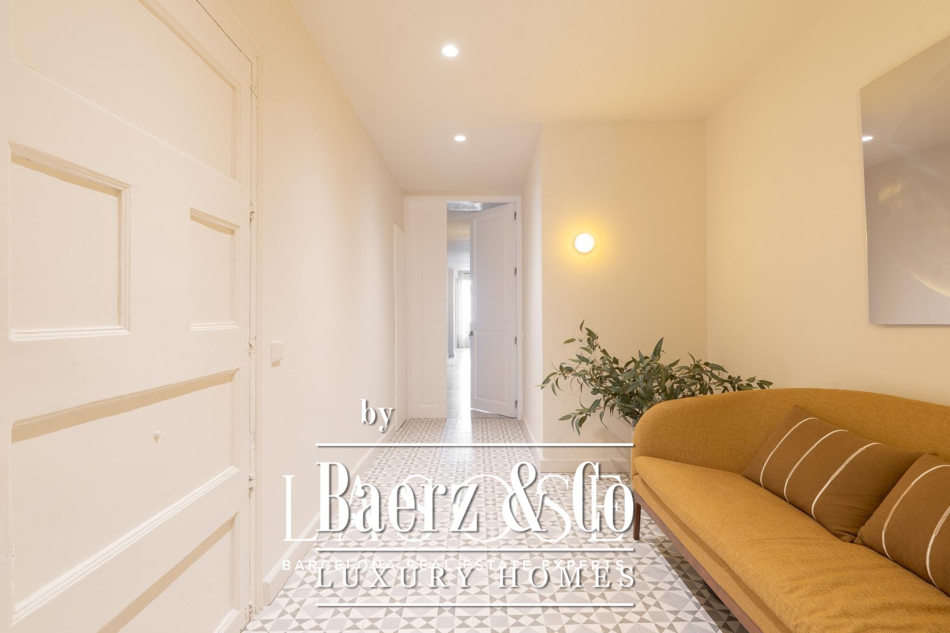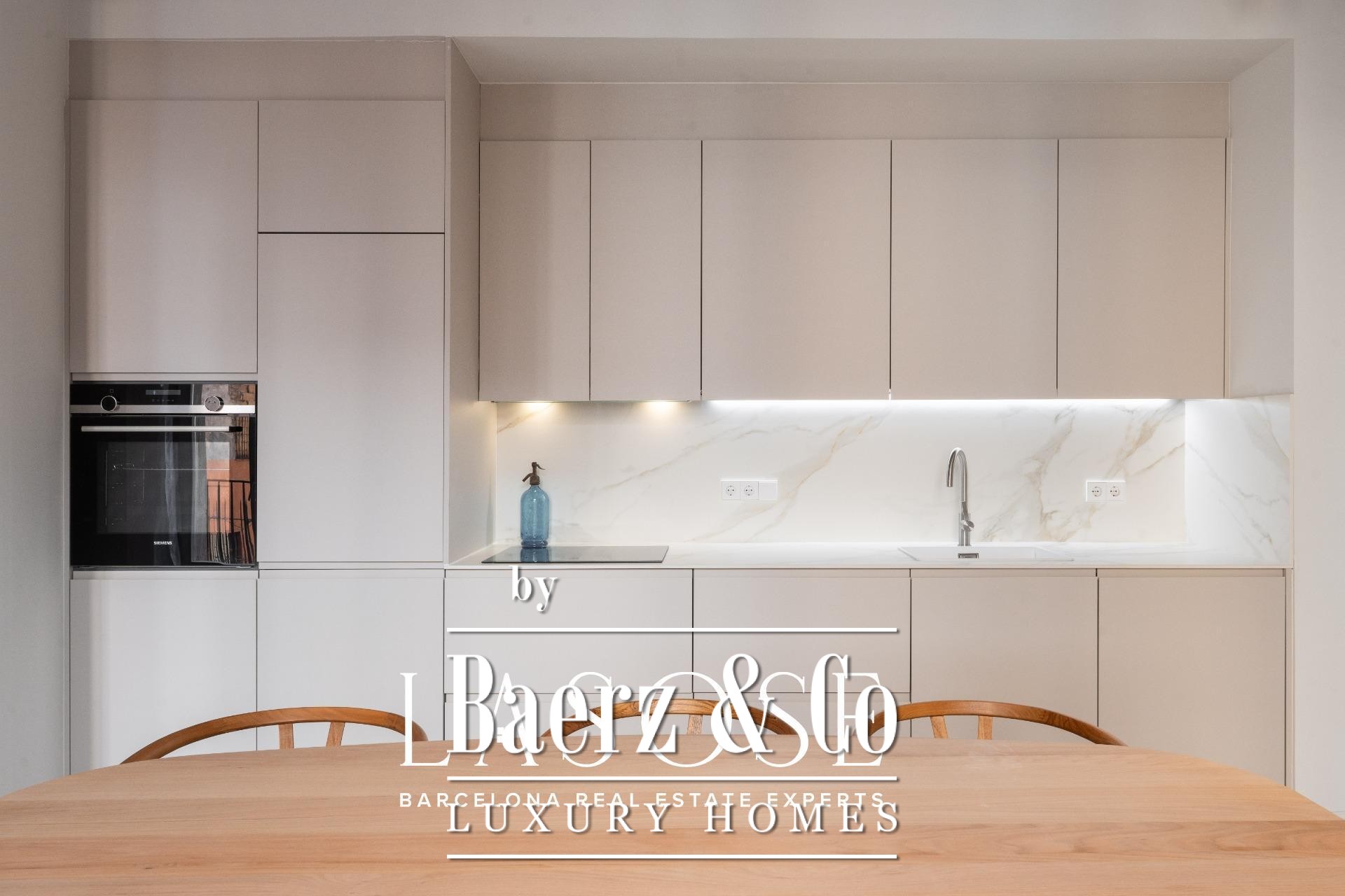 Apartment El Born Barcelona brings modern refinement into one of the city’s most historic districts. Positioned in the northern part of El Born, near Eixample Dret, this 133 m² apartment merges contemporary comfort with the enduring character of Barcelona’s iconic quarter. A considered renovation reveals exposed wooden beams, original details, and premium finishes, creating an atmosphere of understated authenticity.