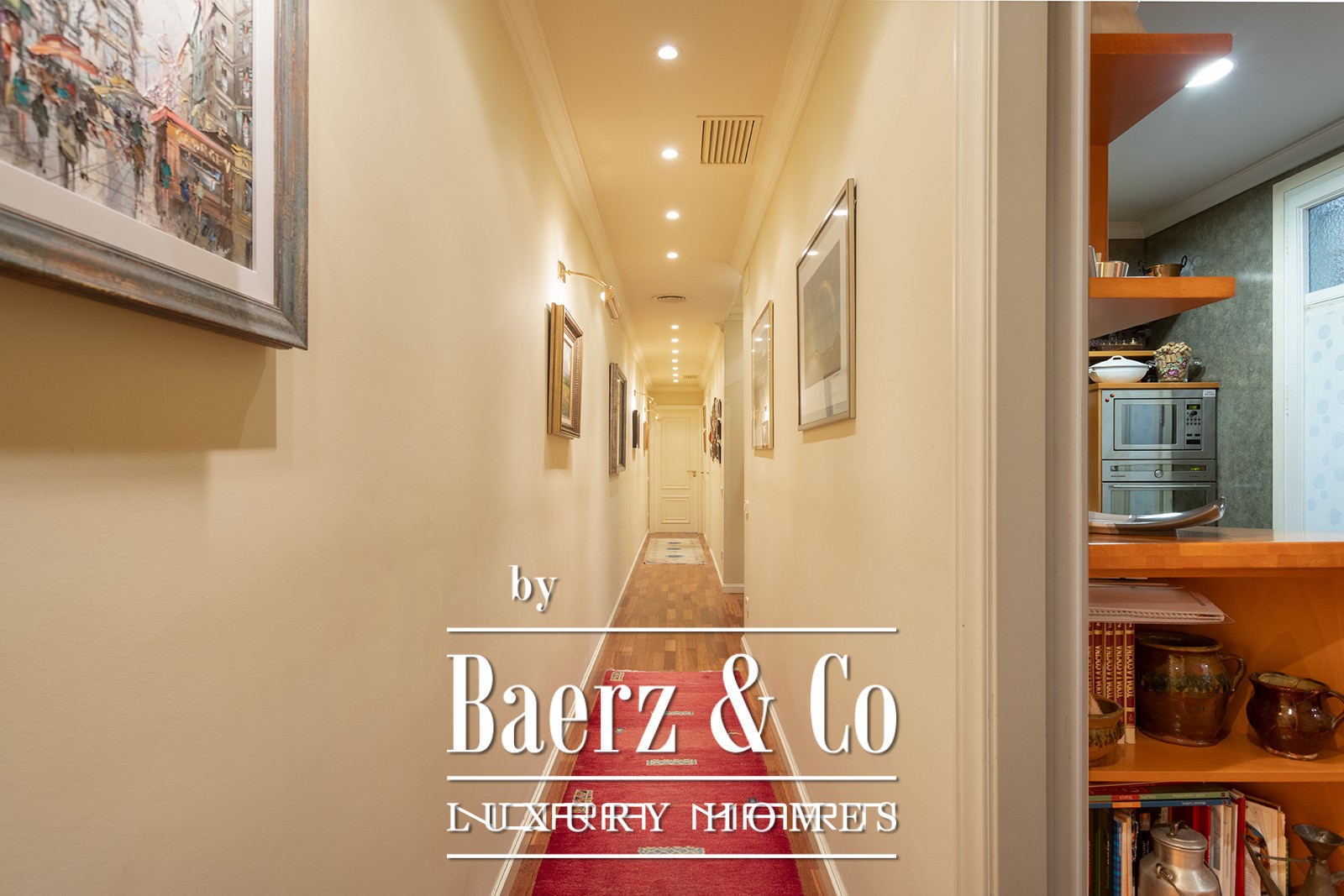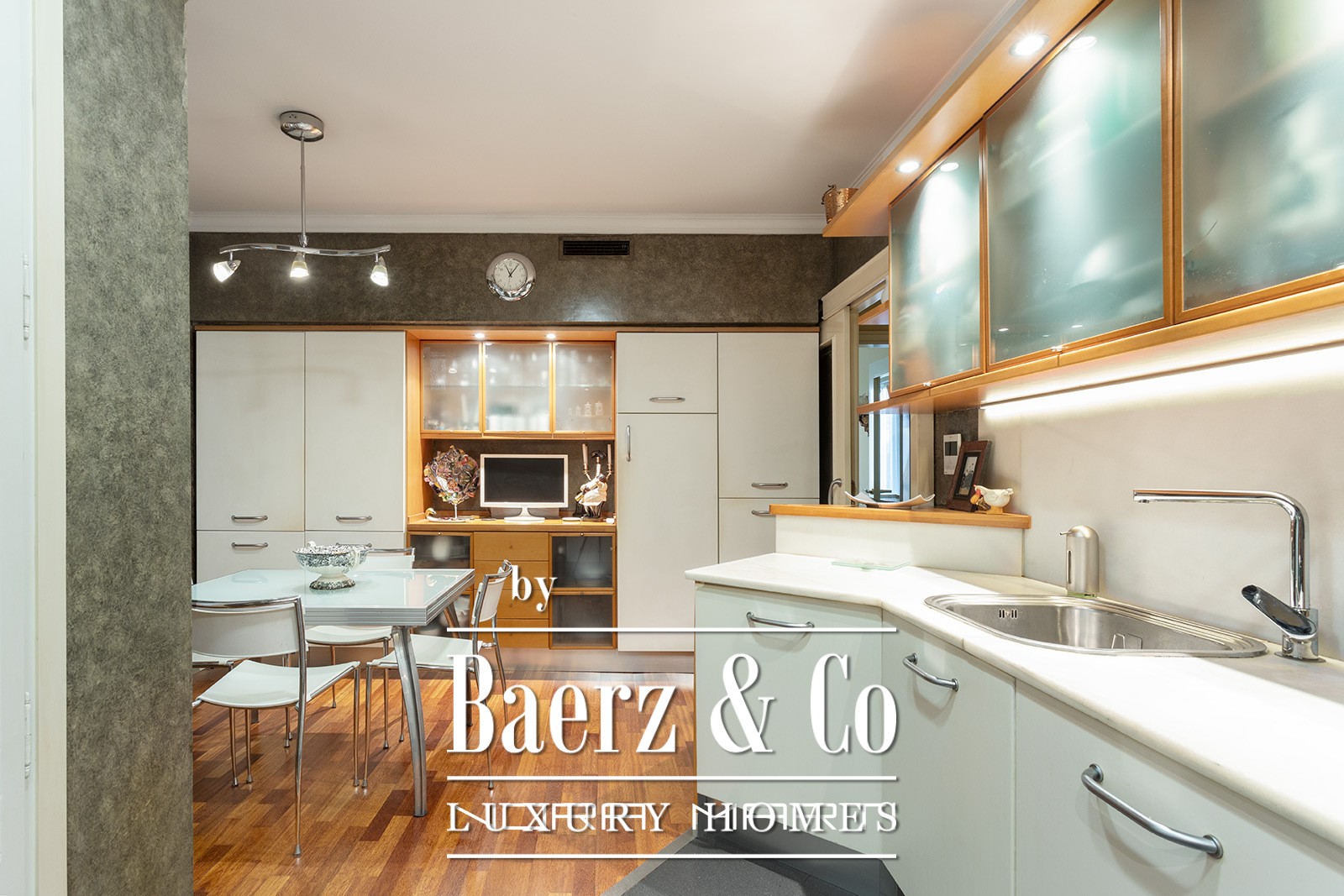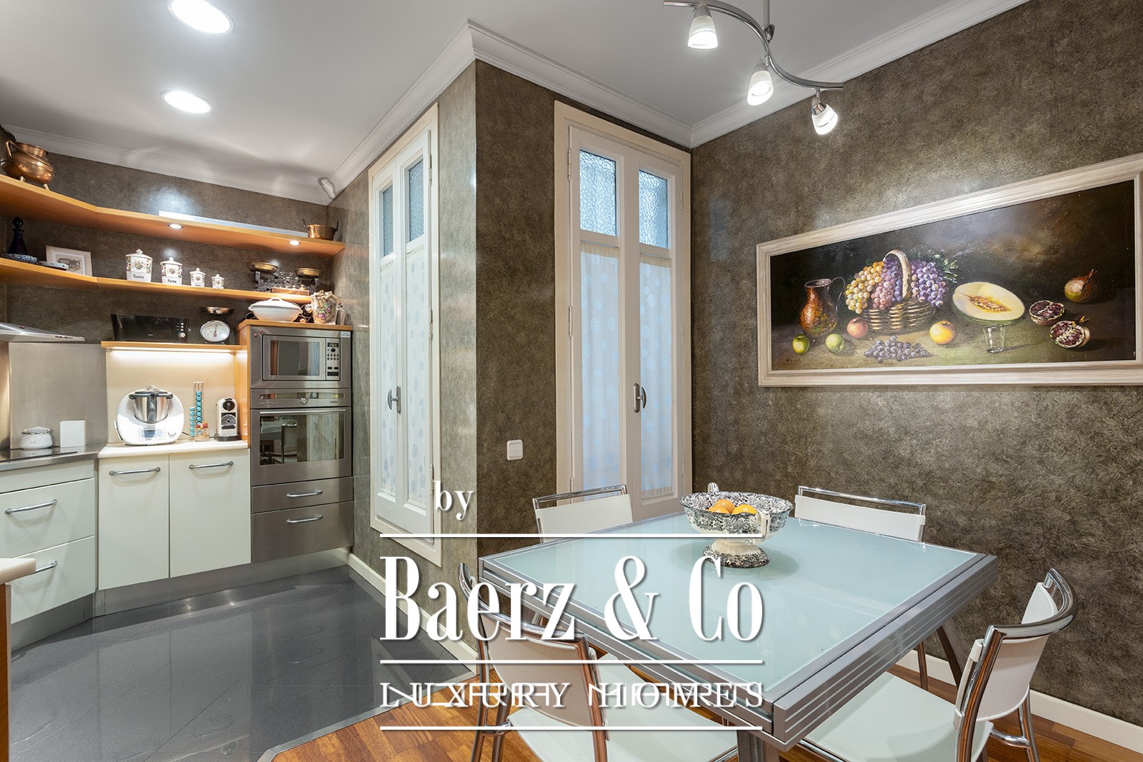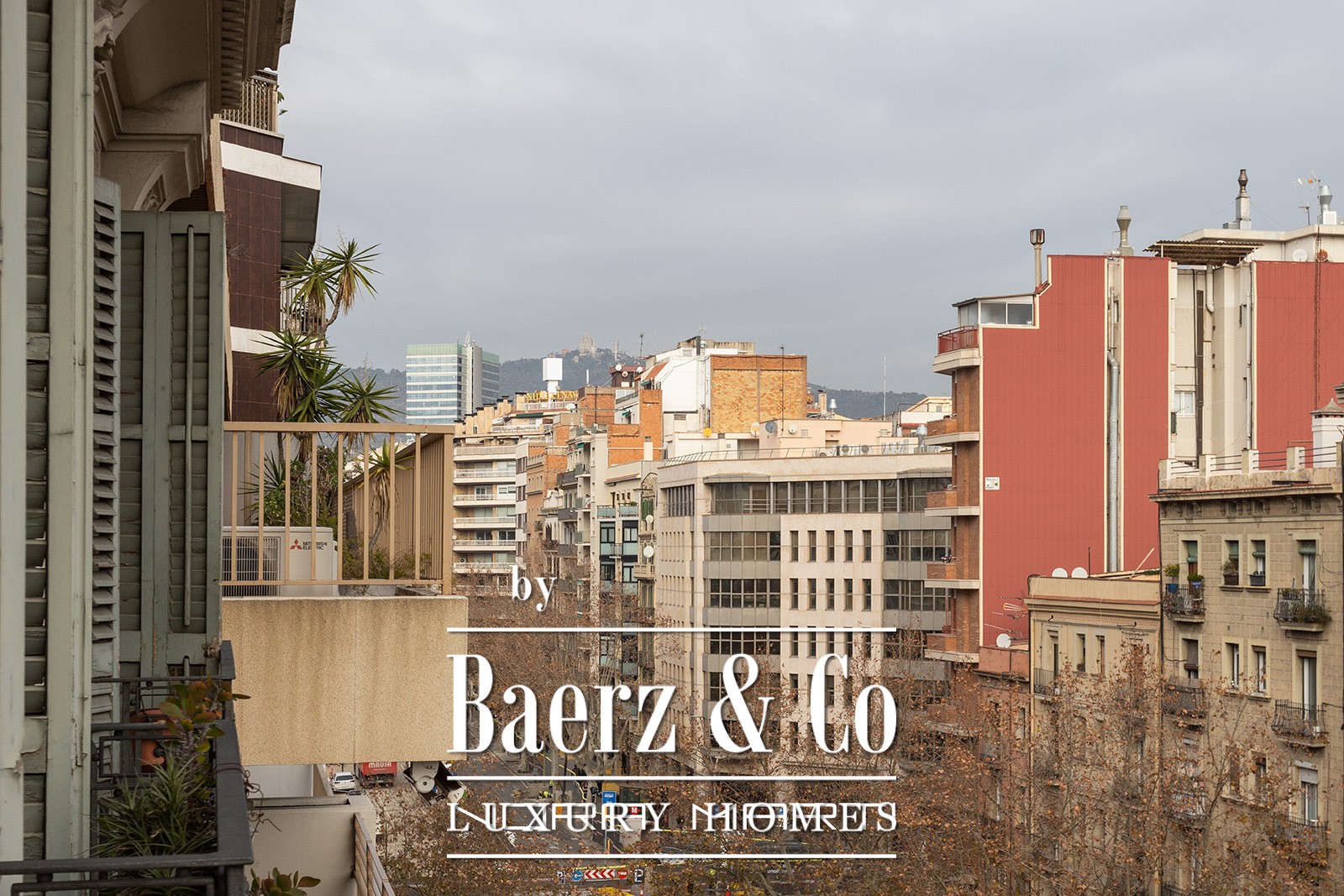 Apartment Barcelona is situated on the central Calle Urgell, offering 110 m² of refined living space that balances comfort and practicality. The high ceilings amplify the sense of openness throughout, while the functional layout ensures a seamless flow from room to room. The home includes two double bedrooms, one configured as a private suite with an adjoining dressing area and bathroom.
