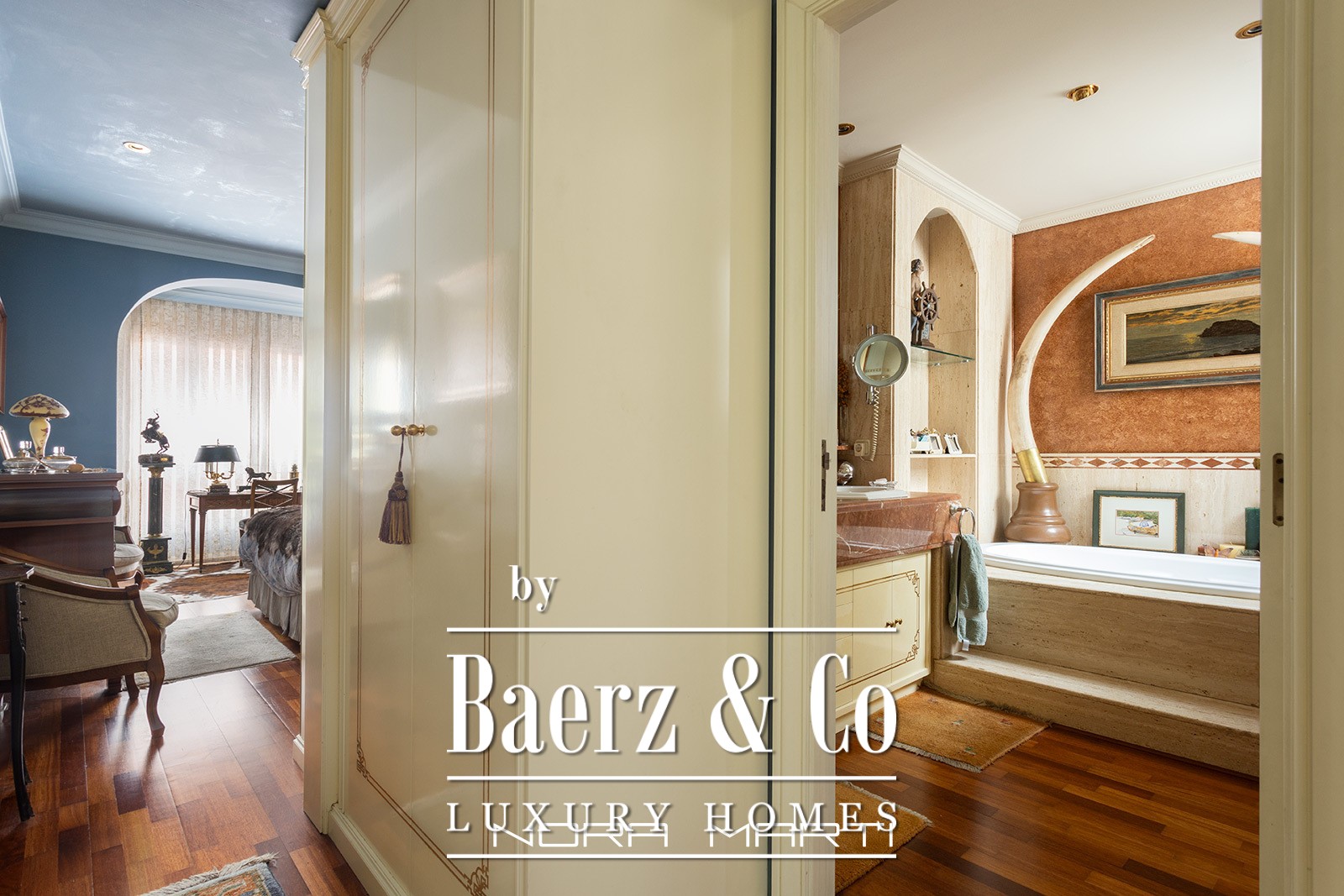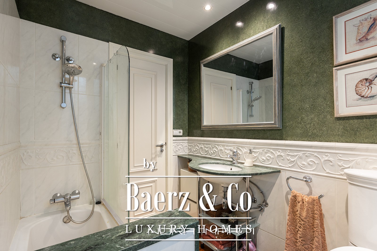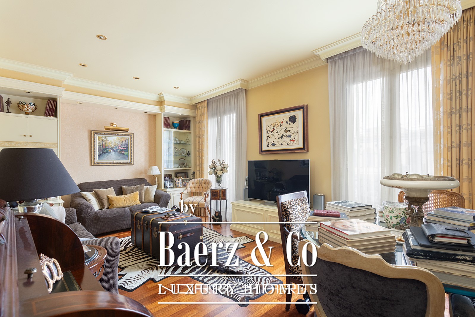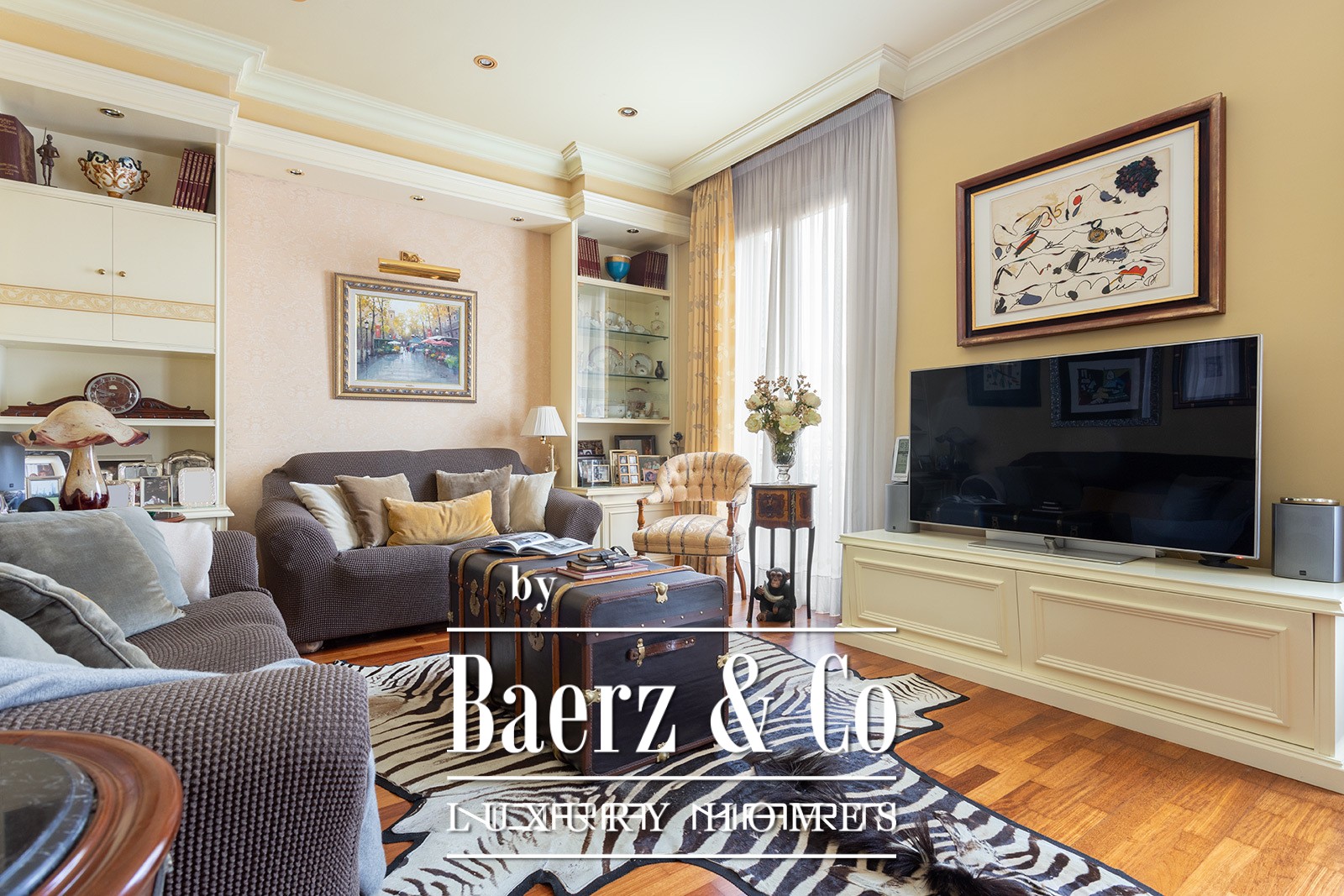Apartment Barcelona is situated on the central Calle Urgell, offering 110 m² of refined living space that balances comfort and practicality. The high ceilings amplify the sense of openness throughout, while the functional layout ensures a seamless flow from room to room. The home includes two double bedrooms, one configured as a private suite with an adjoining dressing area and bathroom.