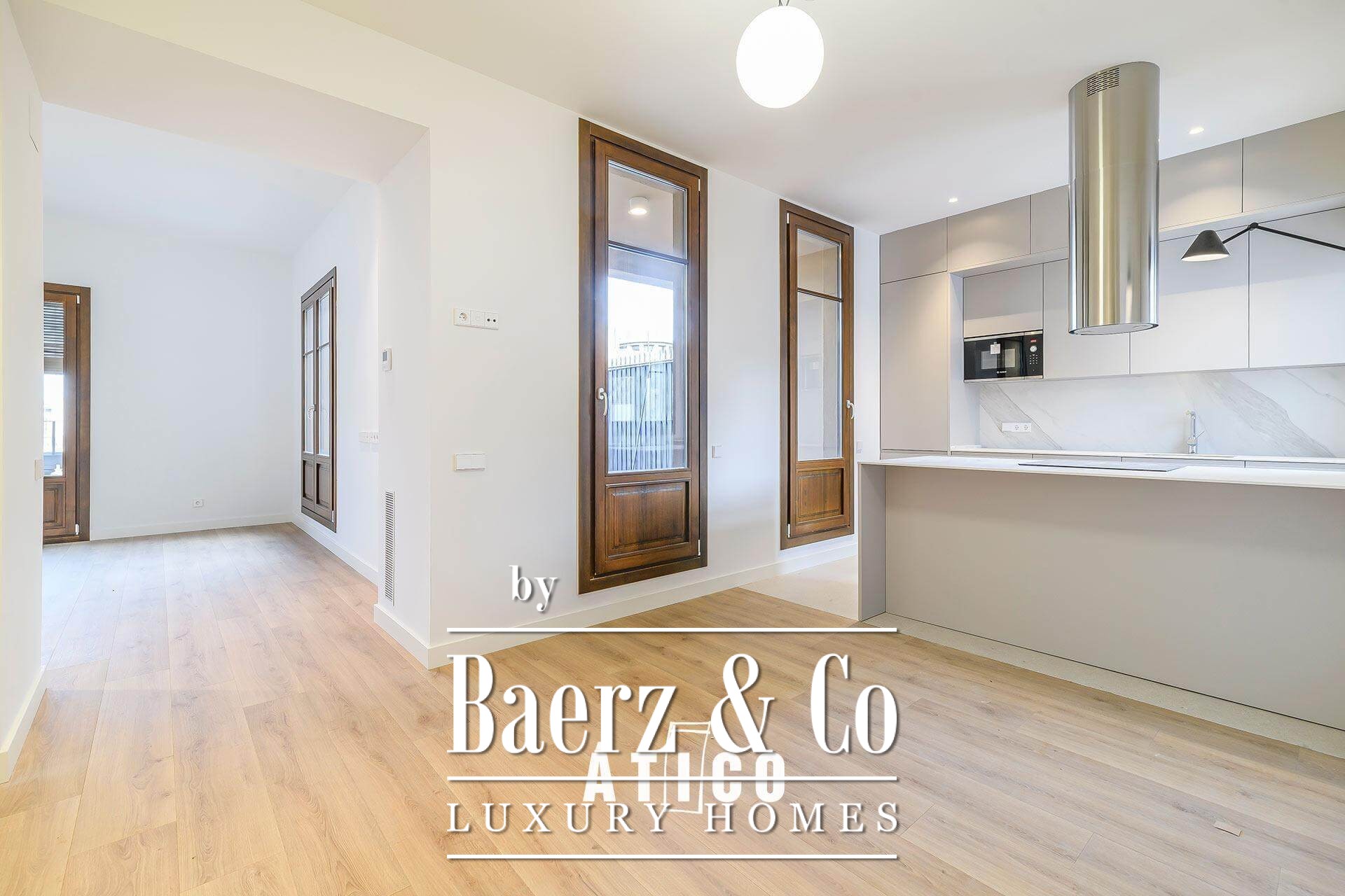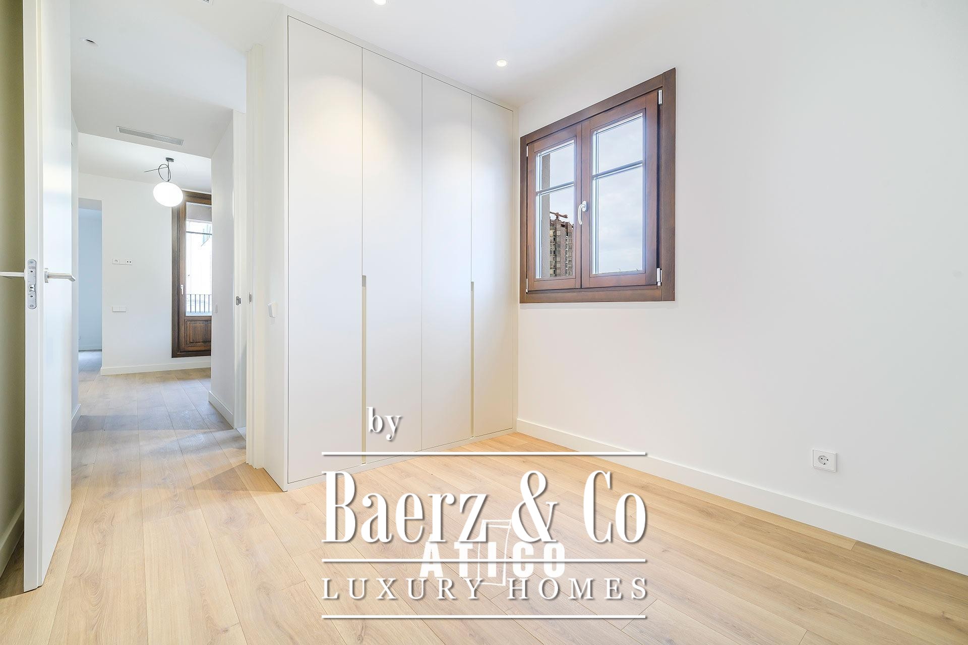 Penthouse Barcelona in the Golden Square presents a rare opportunity for modern city living in a prestigious and historic setting. This brand-new penthouse has been completely renovated to reveal 89.22 m² of airy, carefully designed interiors, defined by high-quality materials and abundant natural light. The thoughtful layout maximizes comfort, ensuring each space is purposeful, from the inviting living area to the modern kitchen with ample storage.