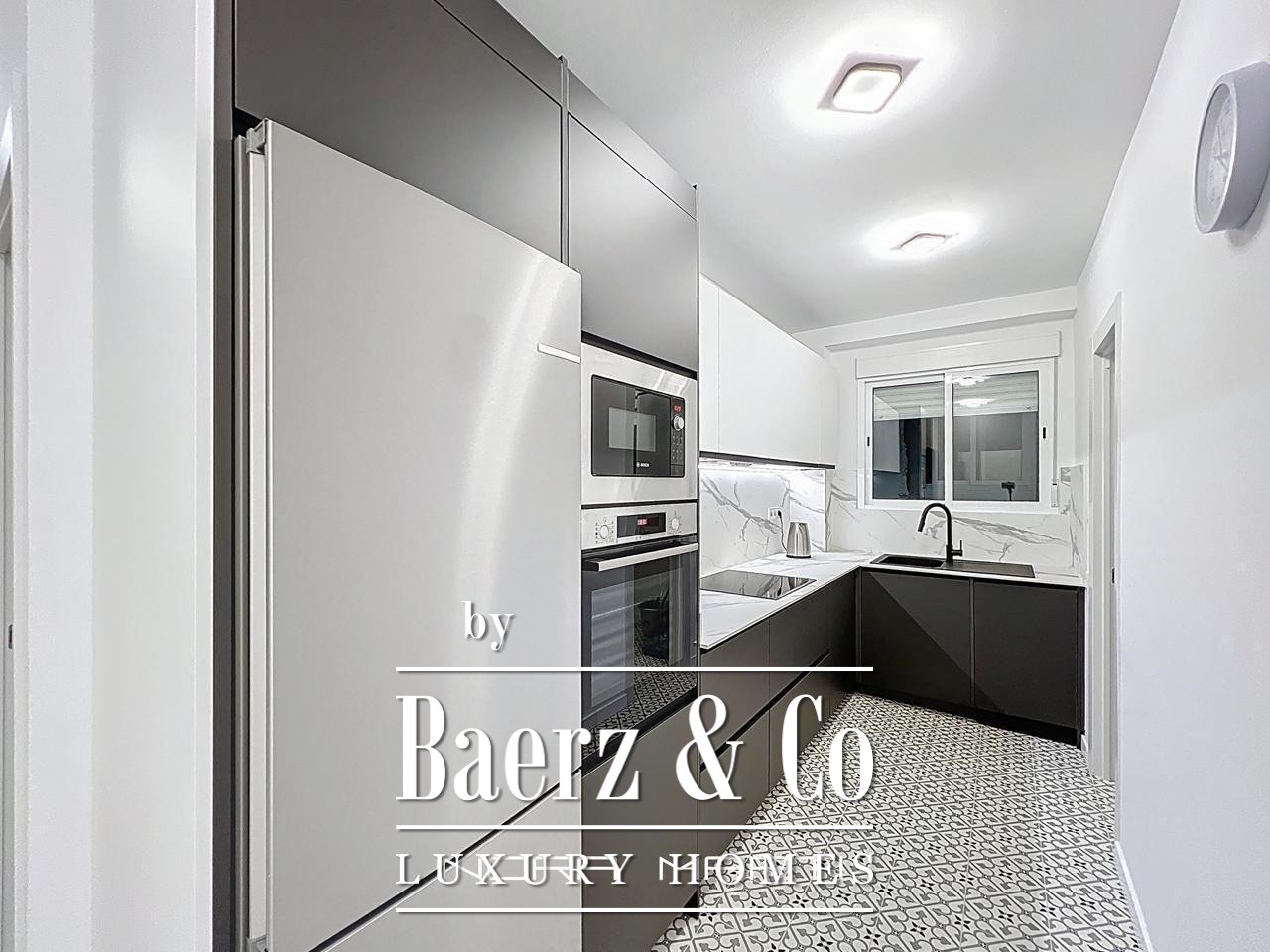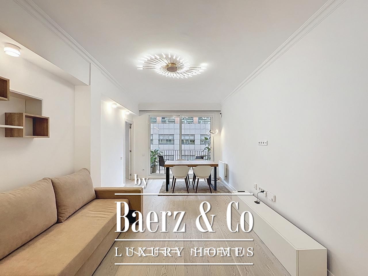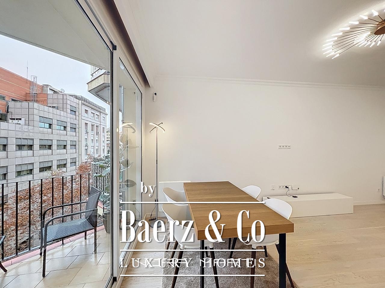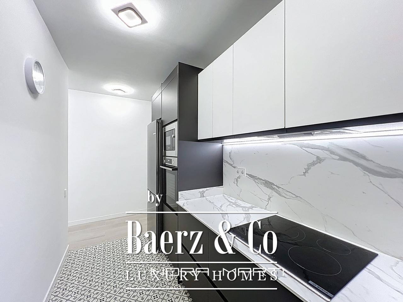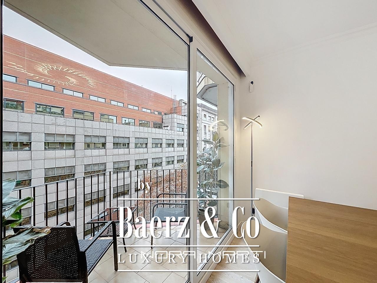 Wooden floors and Climalit double-glazed exterior windows provide thermal and acoustic insulation, while split air conditioning, heat pumps in every room, and low-consumption electric heating create a refined, comfortable environment. This apartment is offered fully furnished and ready for immediate occupancy, reflecting a lifestyle where every detail counts. The property’s sixth-floor position maximizes privacy, security, and natural light throughout the day, culminating in a tranquil city retreat.