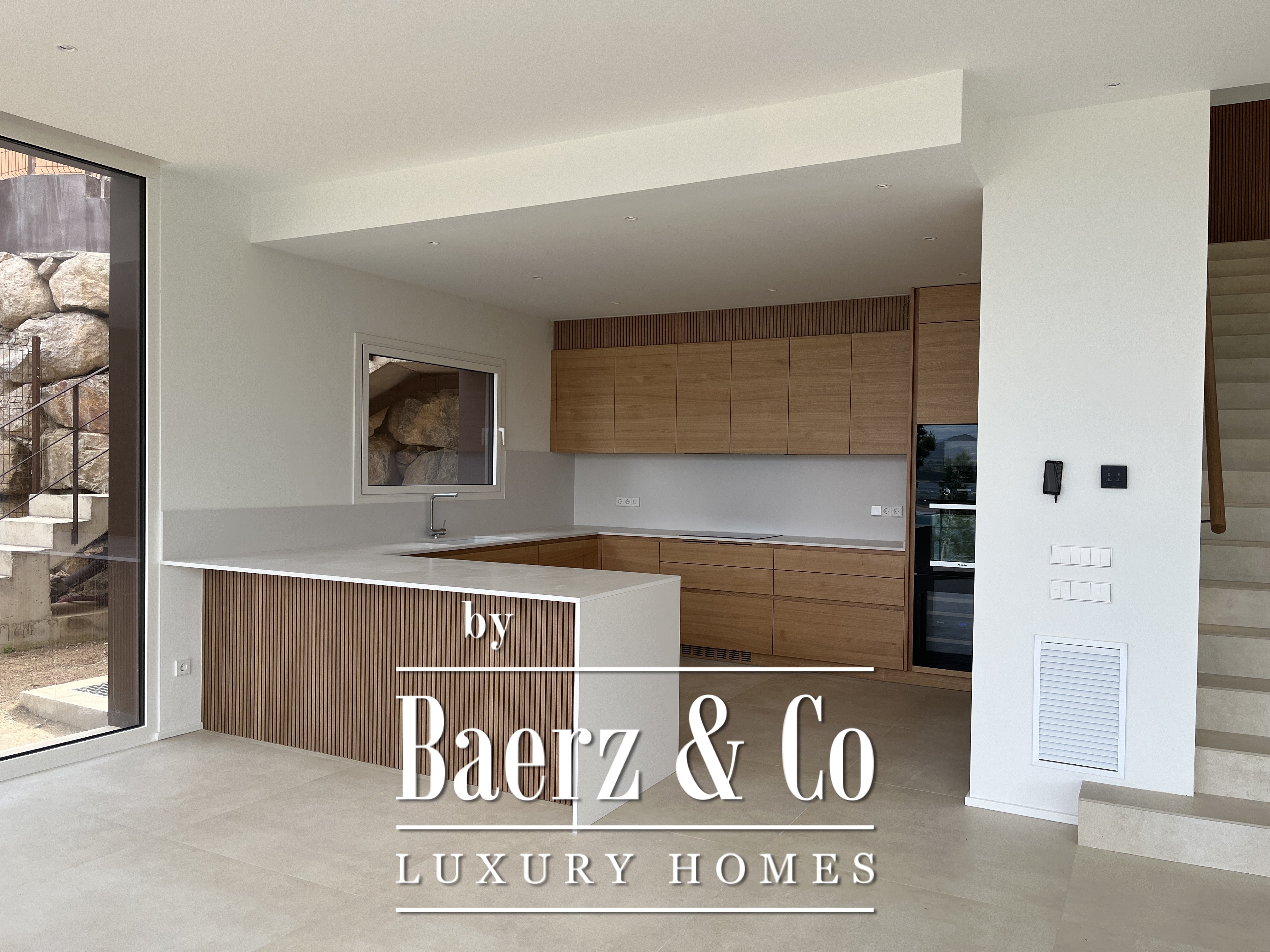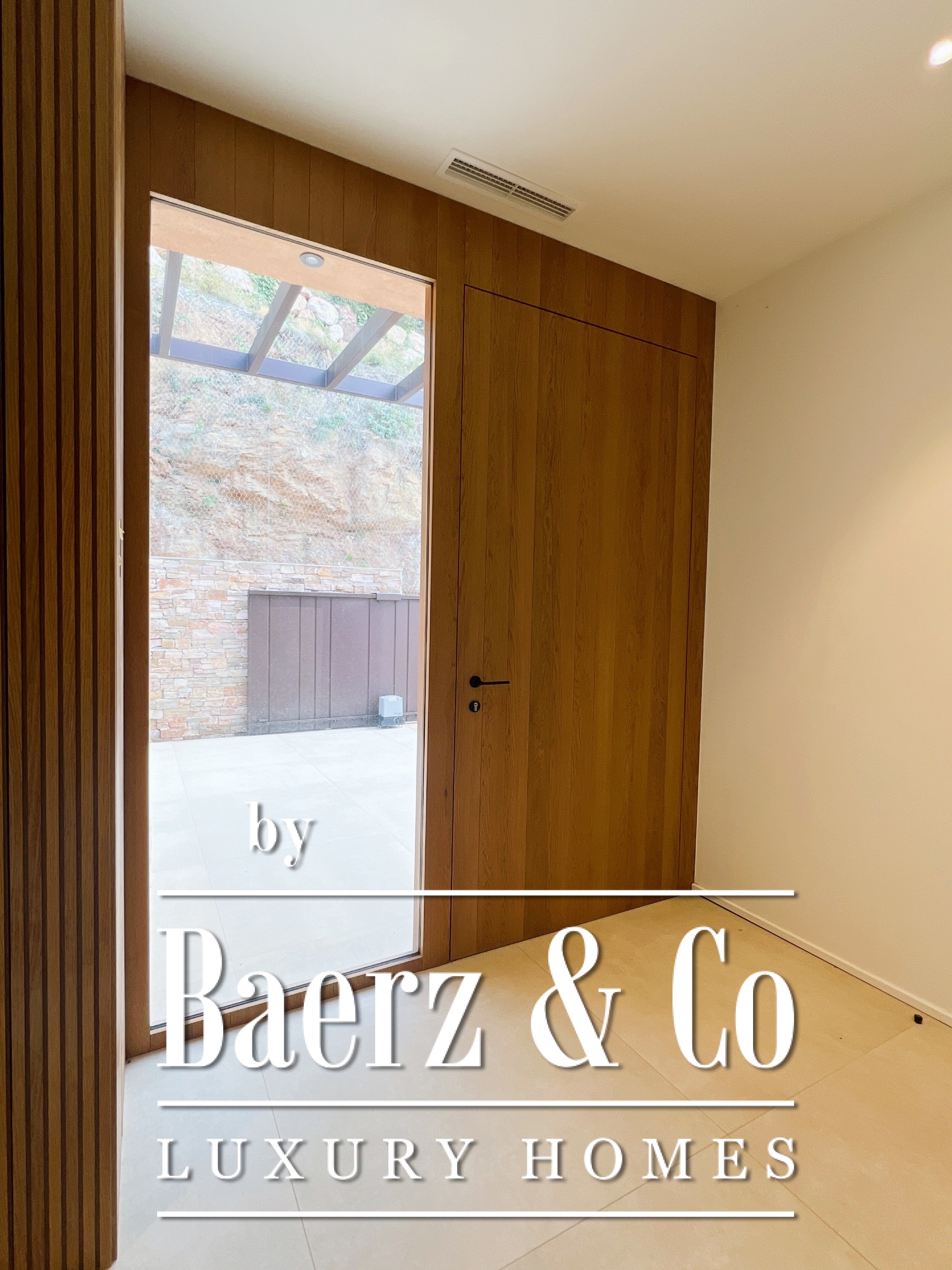 Within its 329 m² of living space, the villa balances open interiors with enduring materials, where floor-to-ceiling glass merges each room with sea and sky. The architecture is defined by restraint and clarity, tailored to individual vision, making every home as distinctive as the surrounding landscape. The villa includes four bedrooms, three bathrooms, a thoughtfully landscaped garden, swimming pool, private parking, and rooftop terrace. Smart home technology, security features, air conditioning, and a dedicated game room complement the experience.