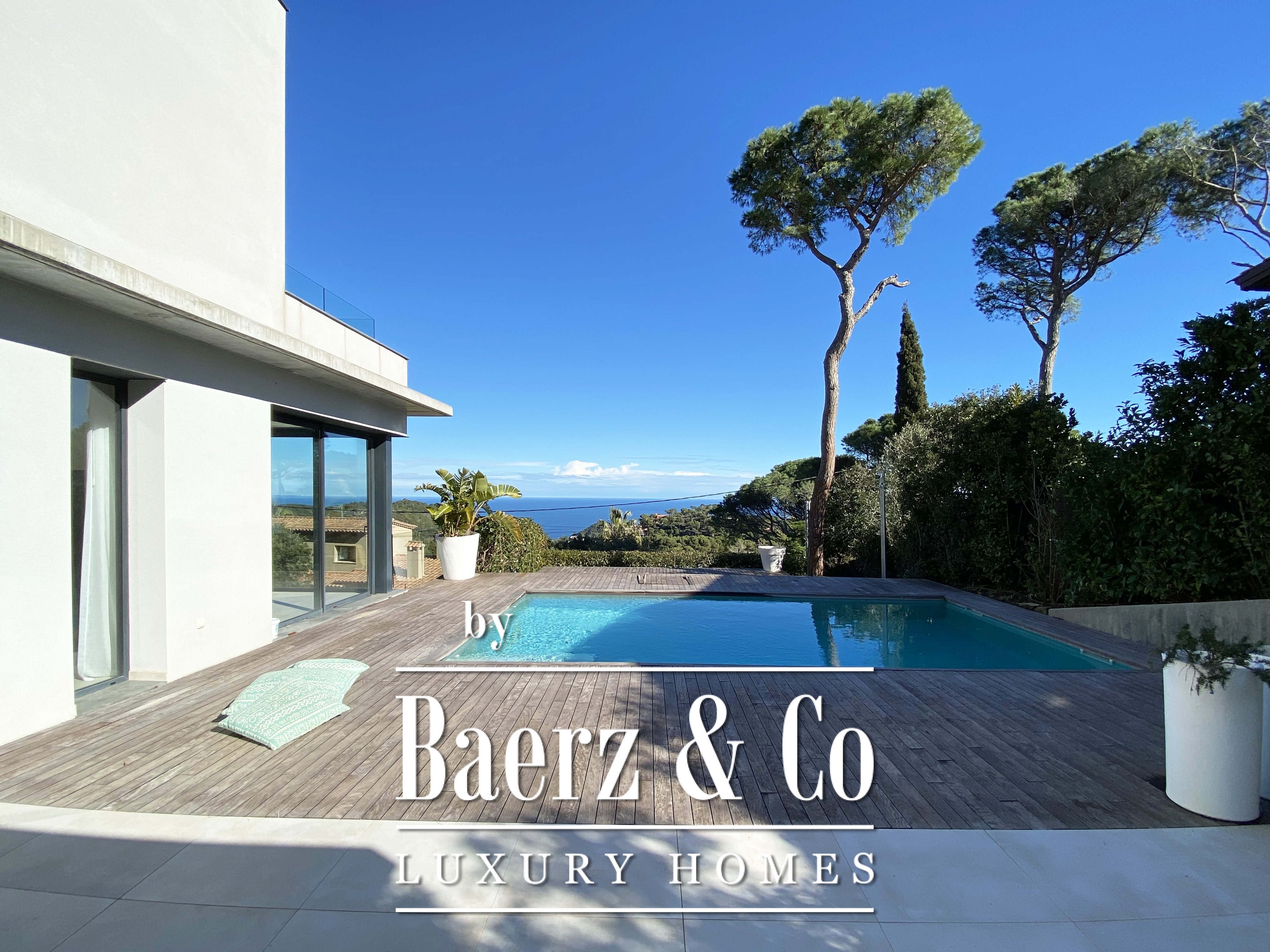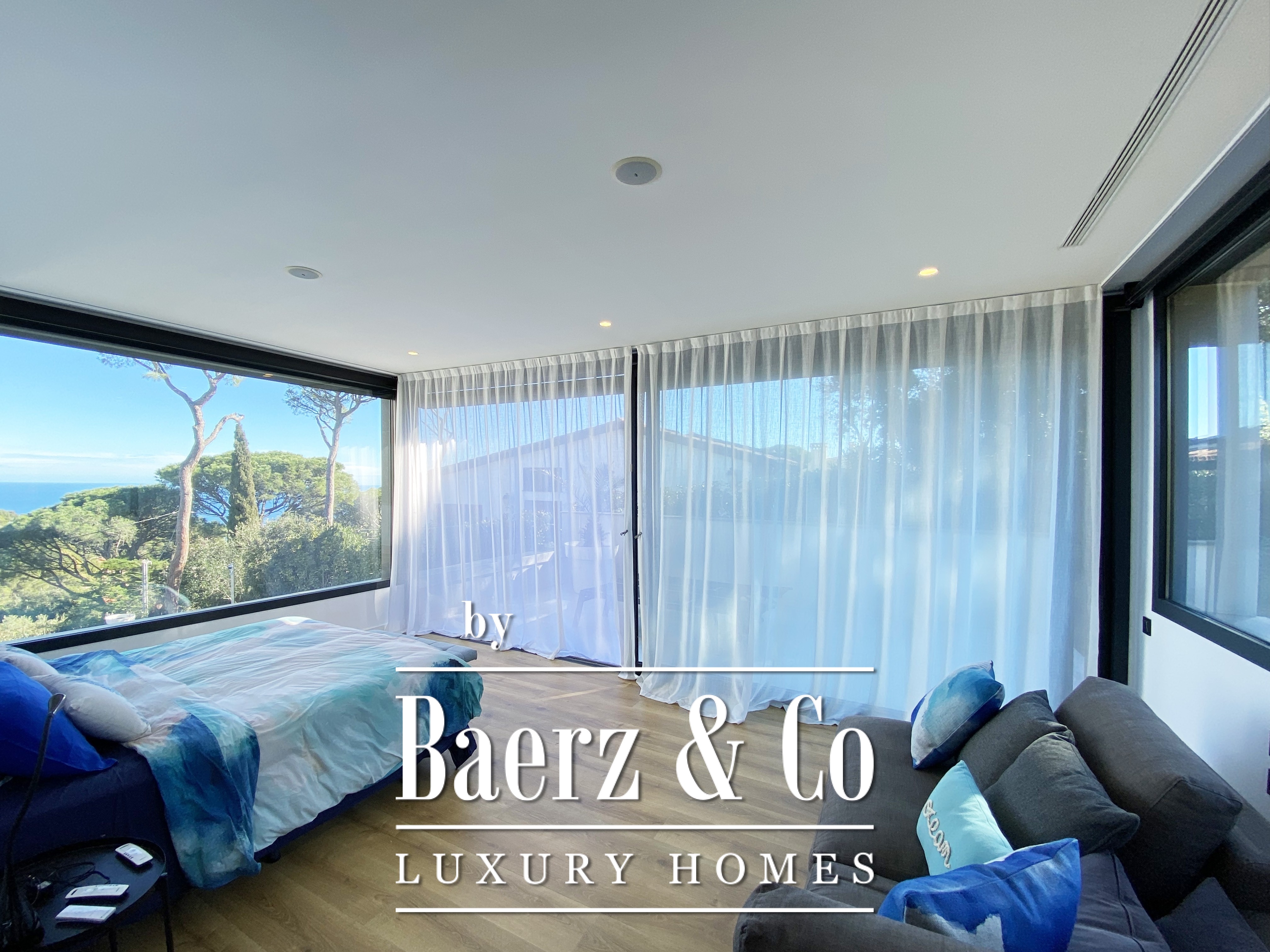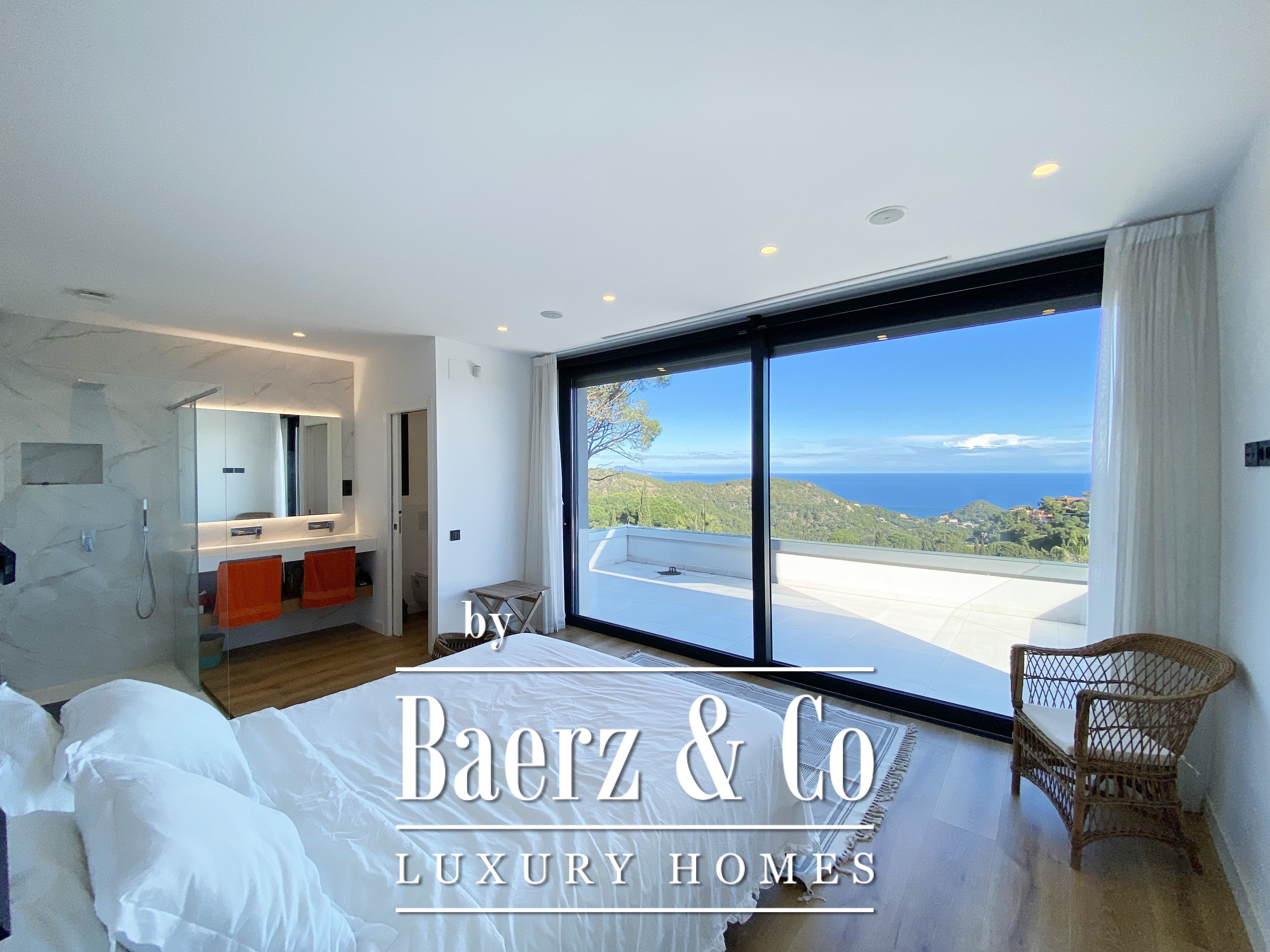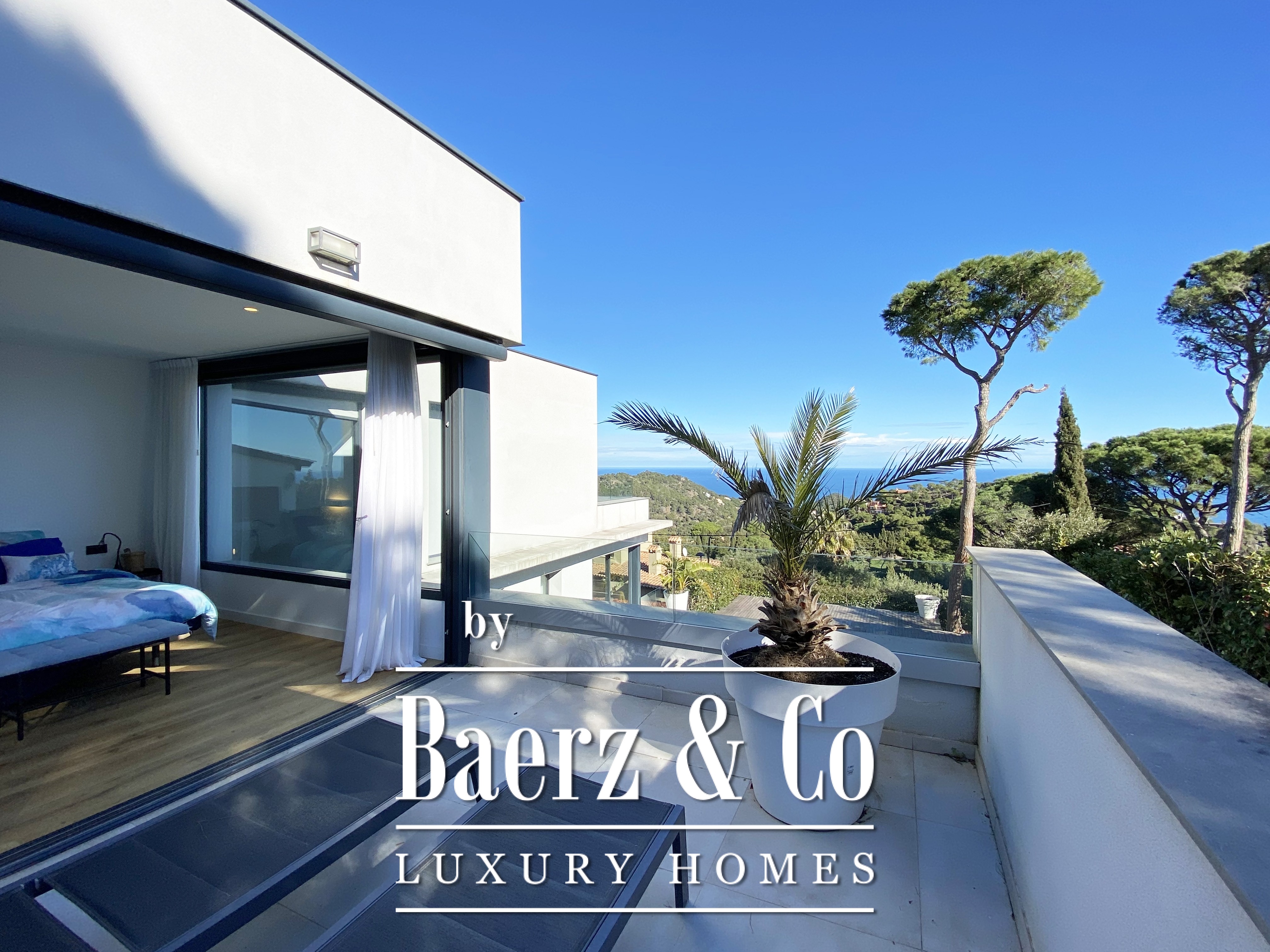 Features such as Mitsubishi air conditioning, an aerothermal system, and a sound system enhance comfort. The 404 m² living space, set on a 717 m² plot, reflects elegance and contemporary function, while the panoramic sea views elevate each moment.