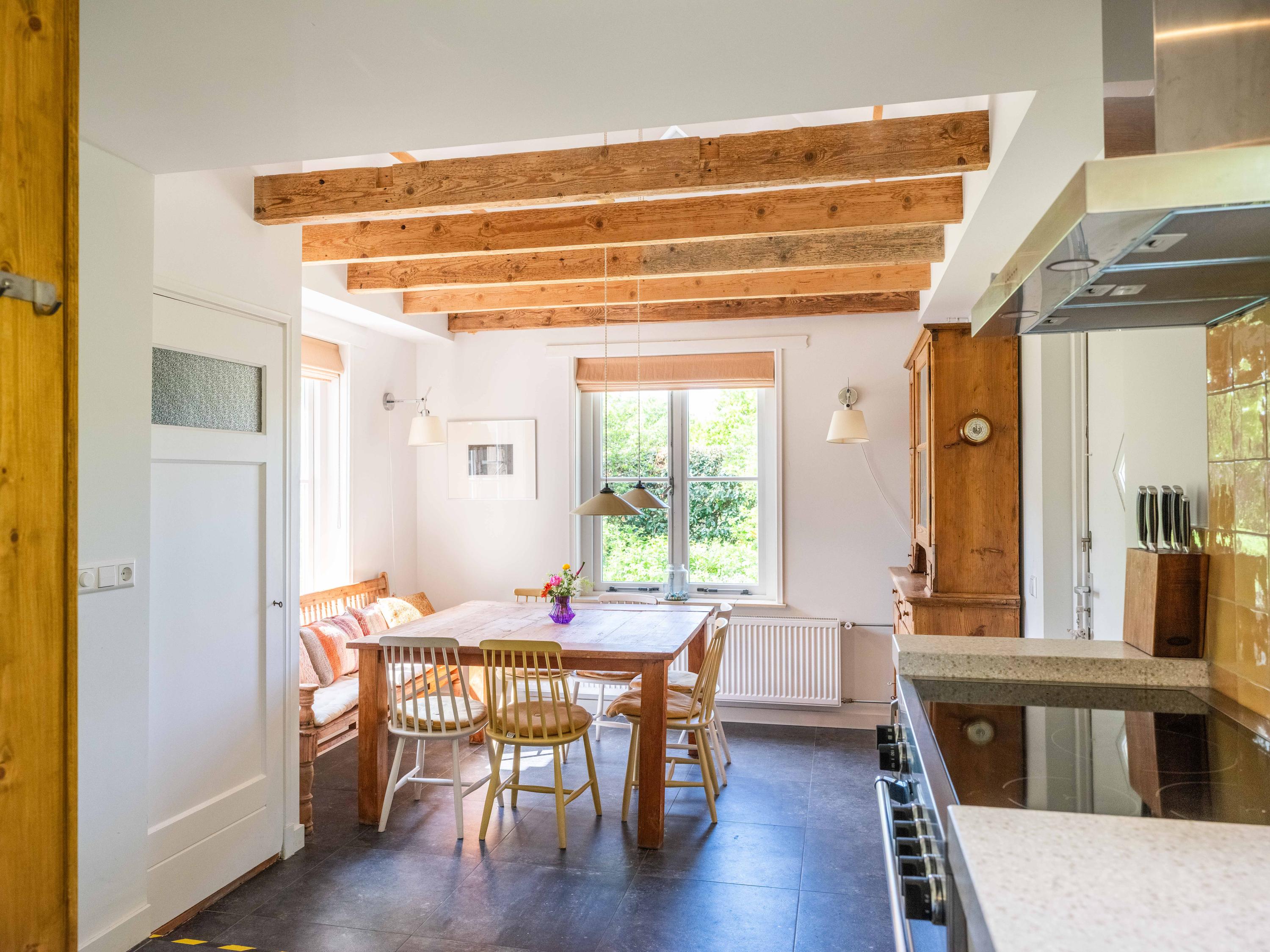 The kitchen diner is a nice place for the whole family, equipped with all conveniences: a quooker, dishwasher, extractor hood, large oven with induction hob and a separate fridge-freezer. There is also access to the meter cupboard from the kitchen.