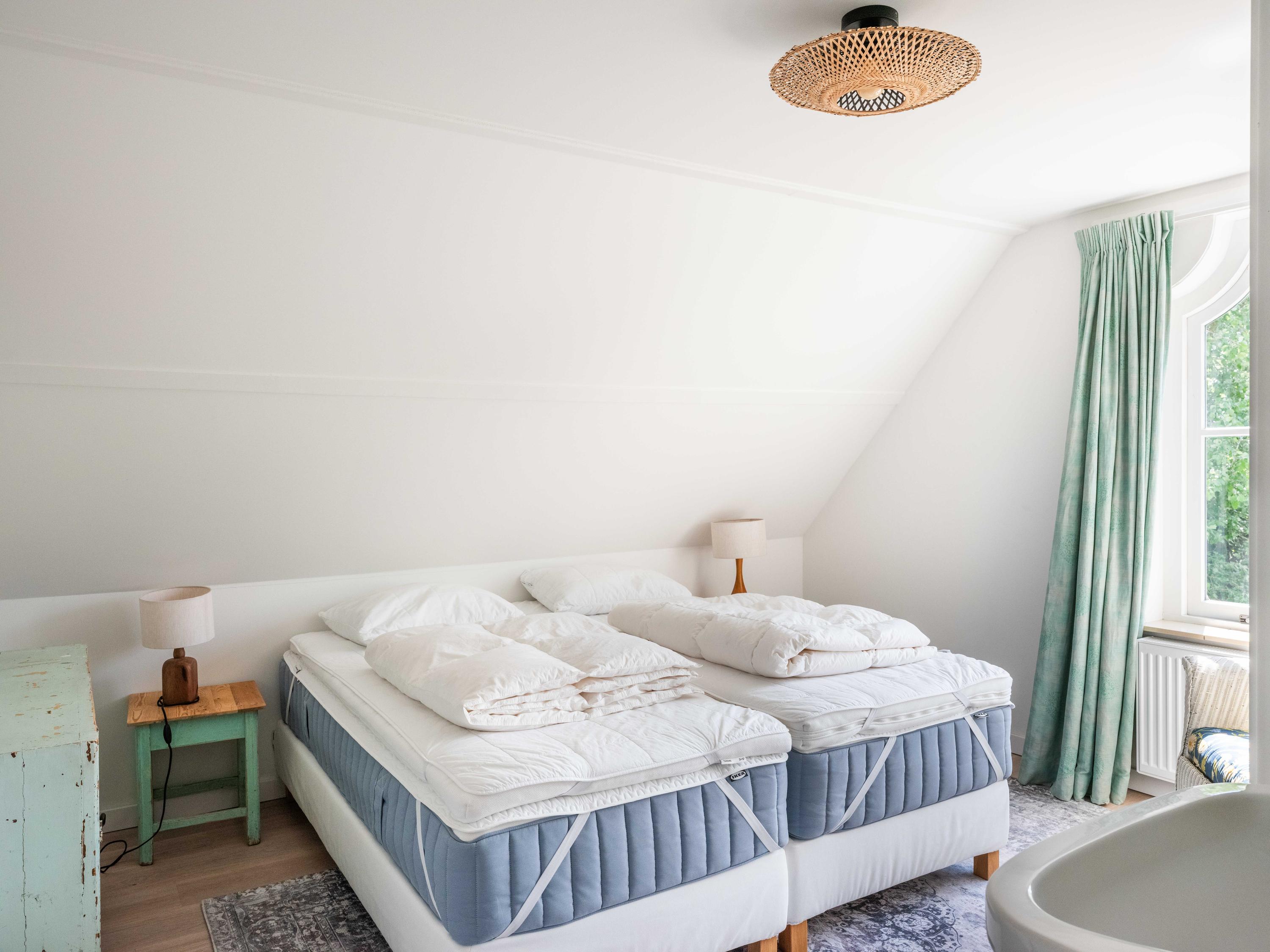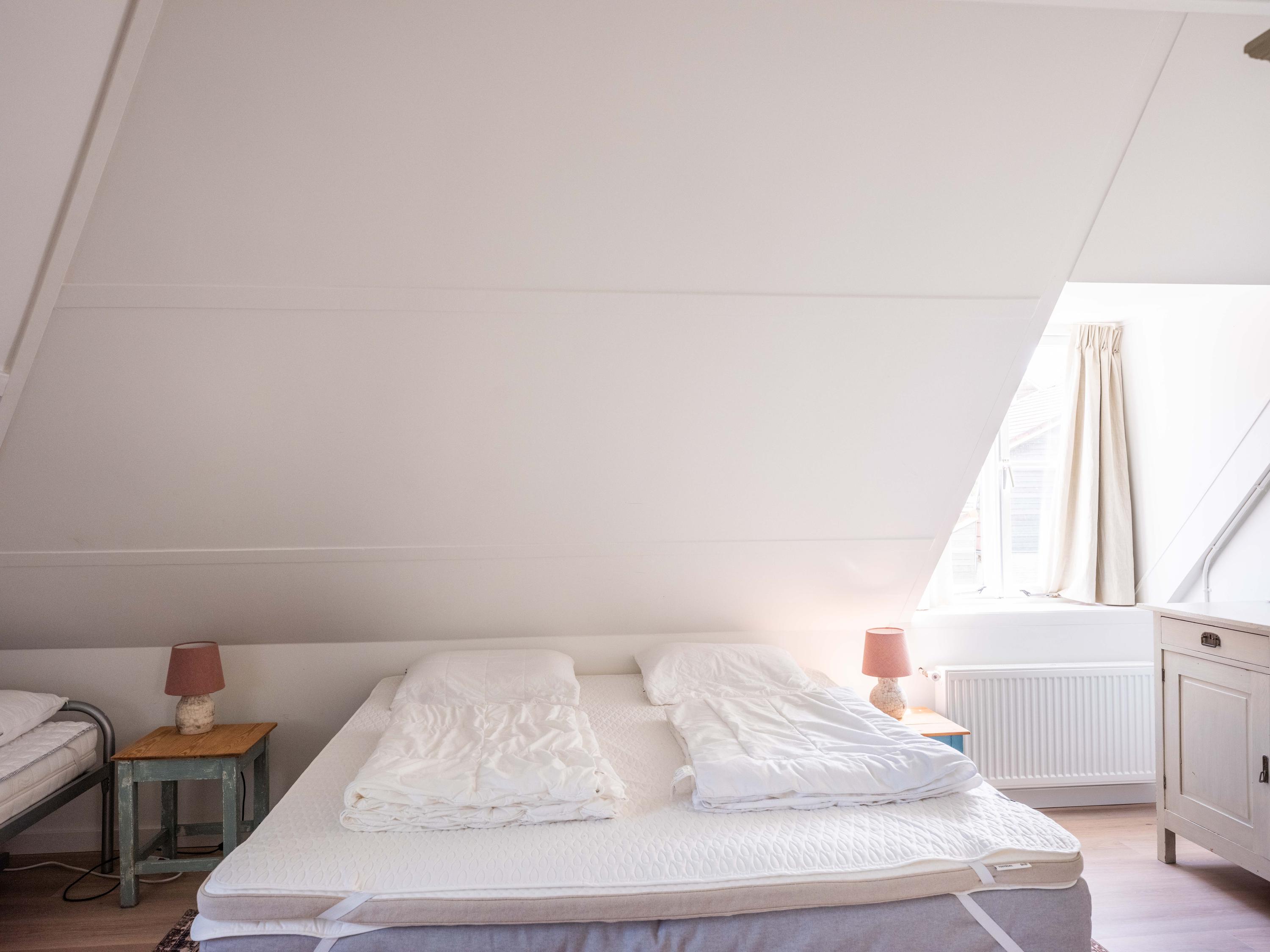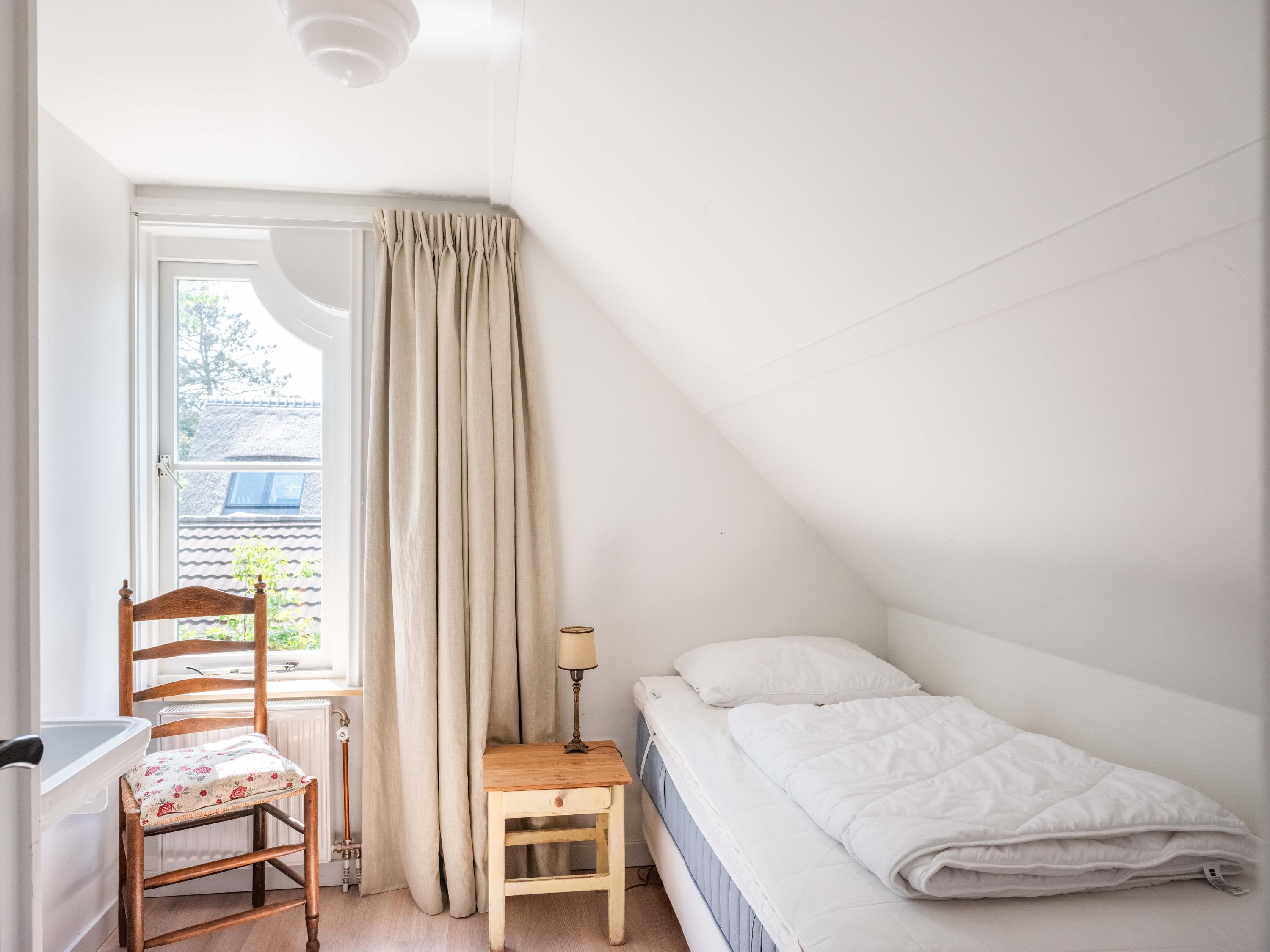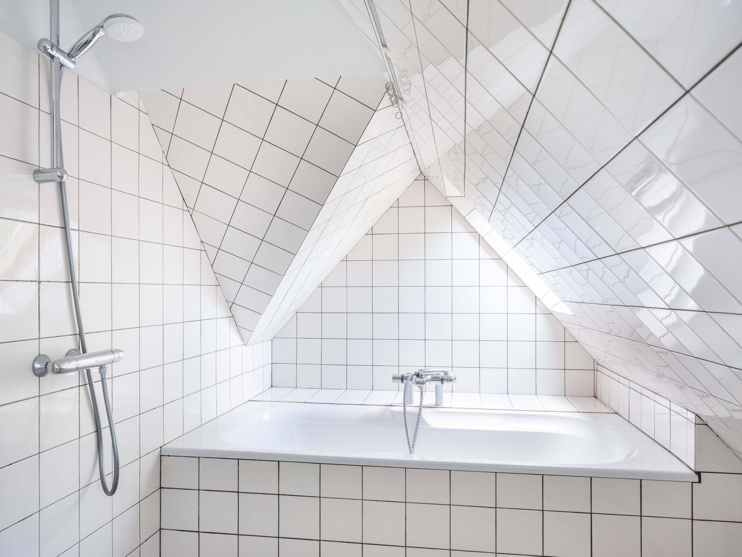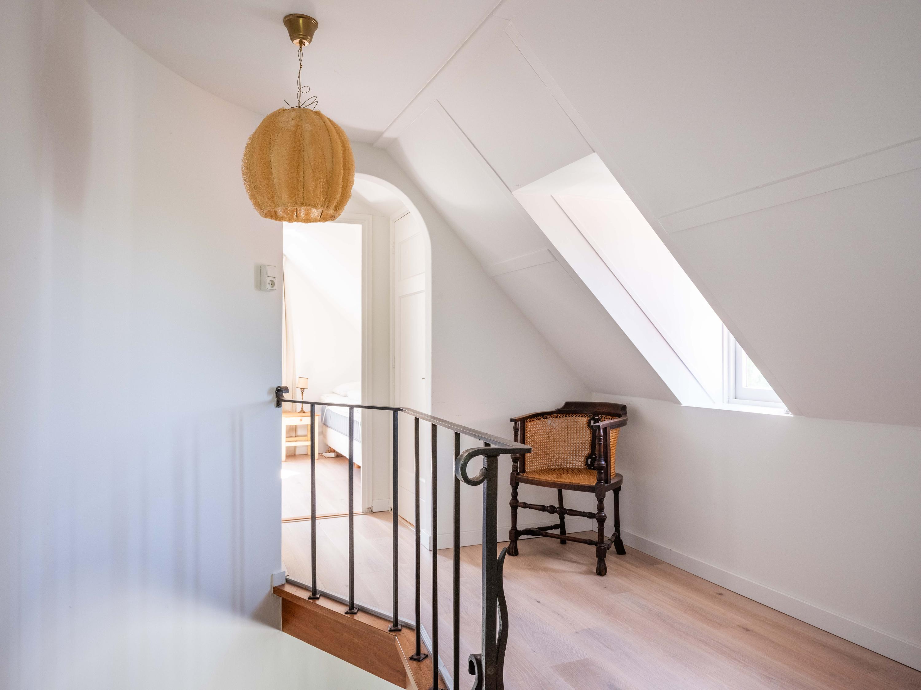 The first floor has three bedrooms, each with a washbasin and a closet. Thanks to several dormers, there is plenty of light and space. There is a separate central heating cupboard and a second bathroom with bath, shower, toilet, skylight and mechanical ventilation.