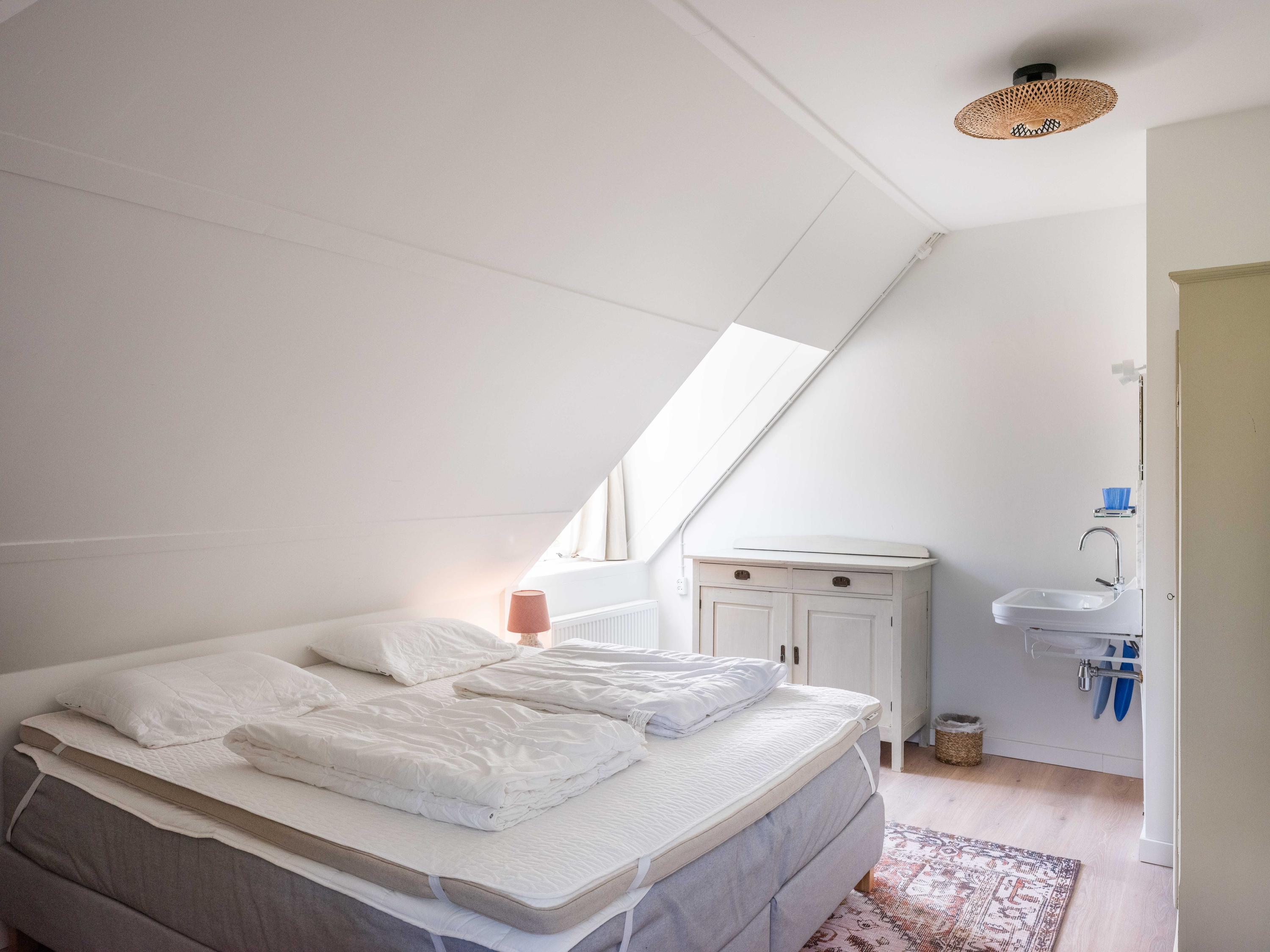 Also on the ground floor is a bedroom with an ensuite bathroom. Here you will find a shower, toilet and washbasin. In short, a life-proof layout.