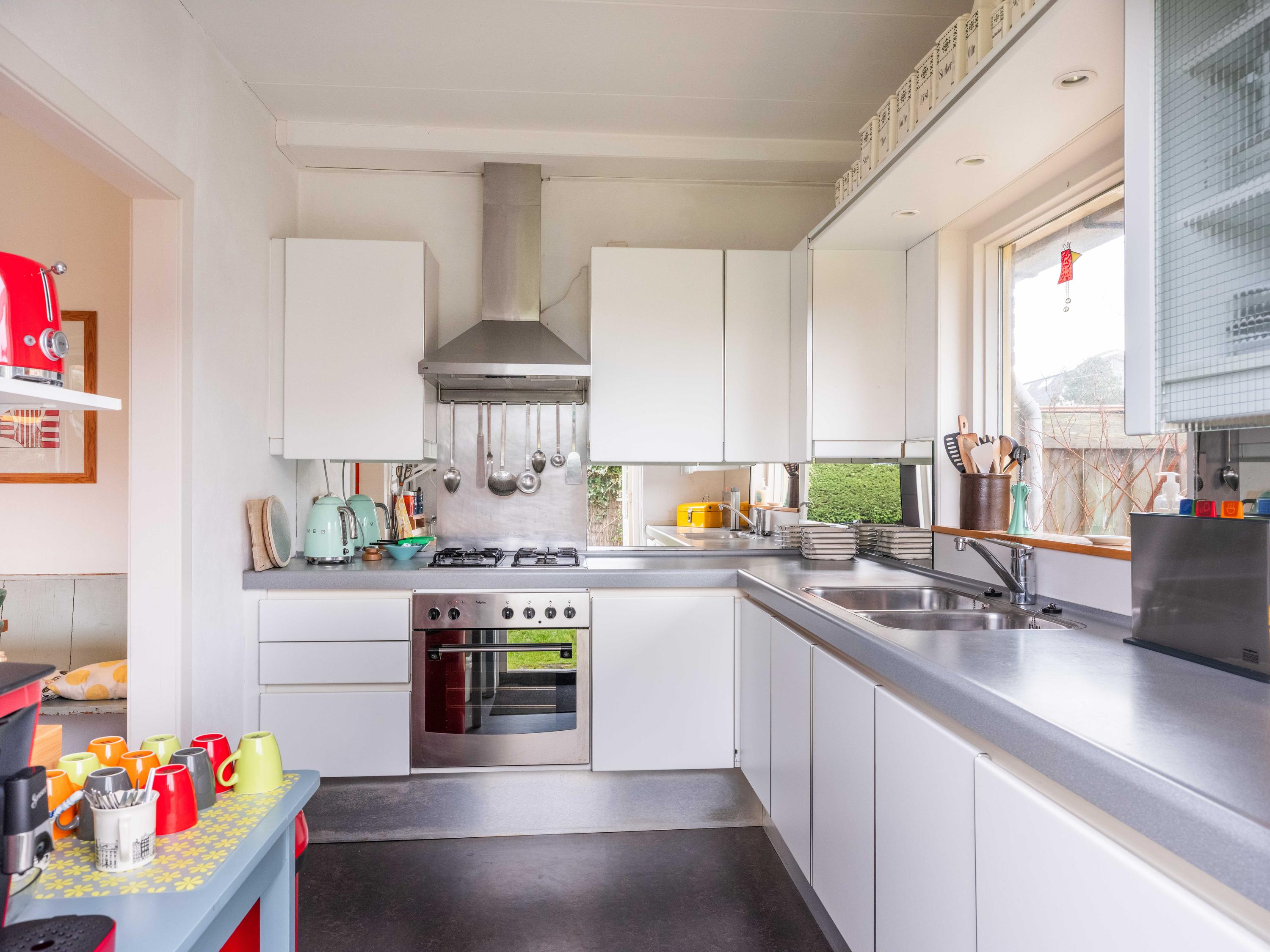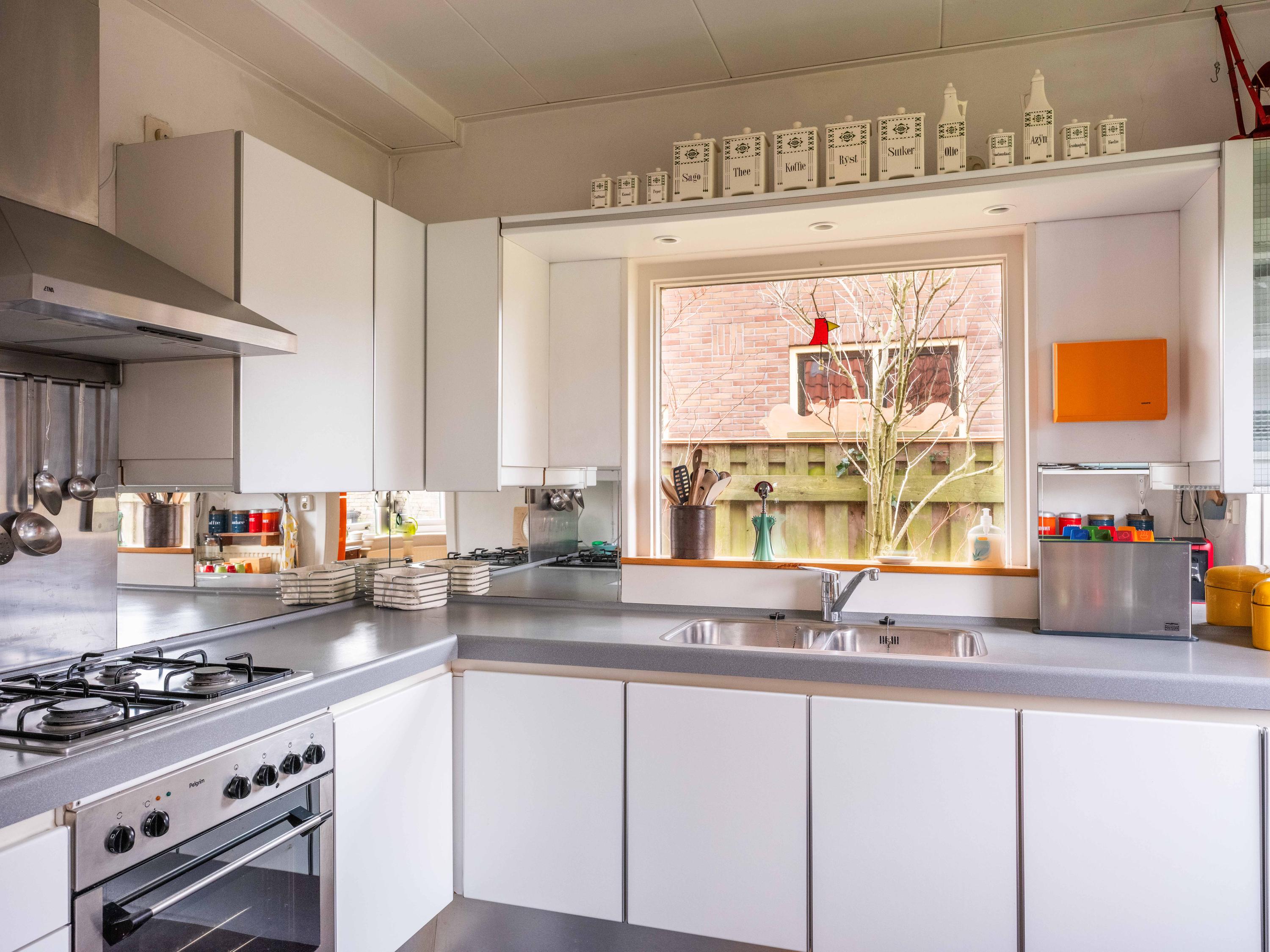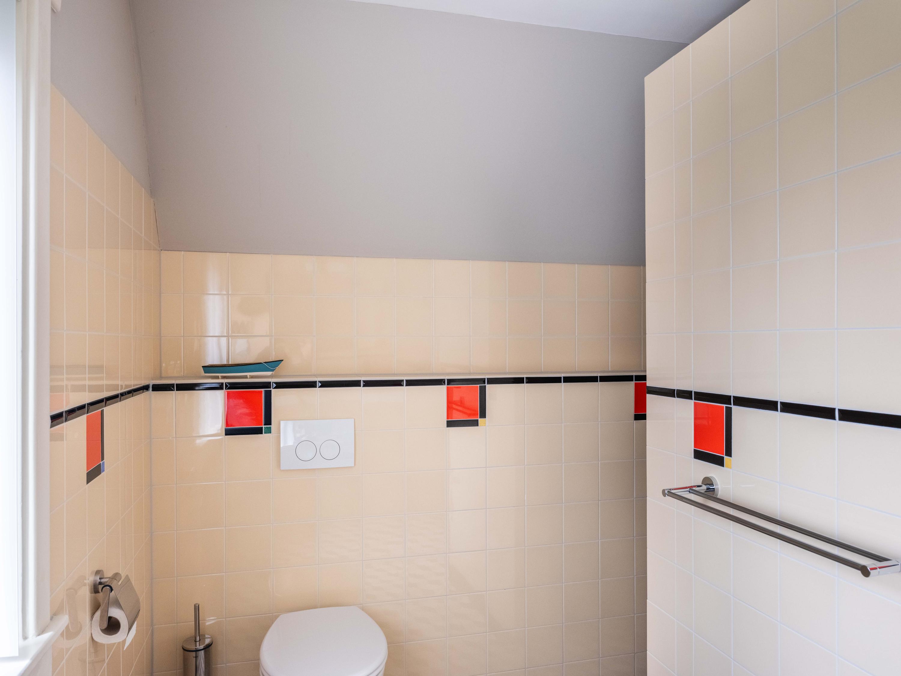 Upon entering, you enter the spacious hall, where the meter cupboard, toilet and staircase to the floors are located. Under the stairs is a spacious pantry. From the hall, a door leads to the bright and spacious living room, which offers a nice view of the greenery opposite. Another door gives access to the dining room and the kitchen, which is equipped with some built-in appliances. From the kitchen, a door leads to the garden.