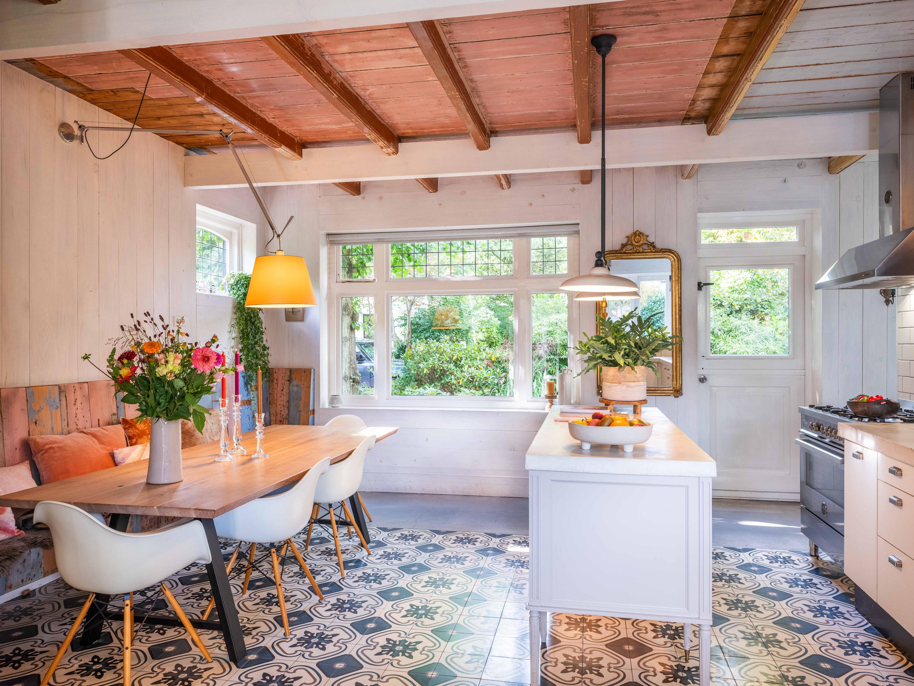 Upon entering from Dorpsstraat, you step directly into the spacious kitchen-diner. This open kitchen is equipped with modern built-in appliances and a cooking island, seamlessly connected to the dining area. Large windows make this a wonderfully bright and inviting space. From here, you also have access to the basement, which provides additional storage.