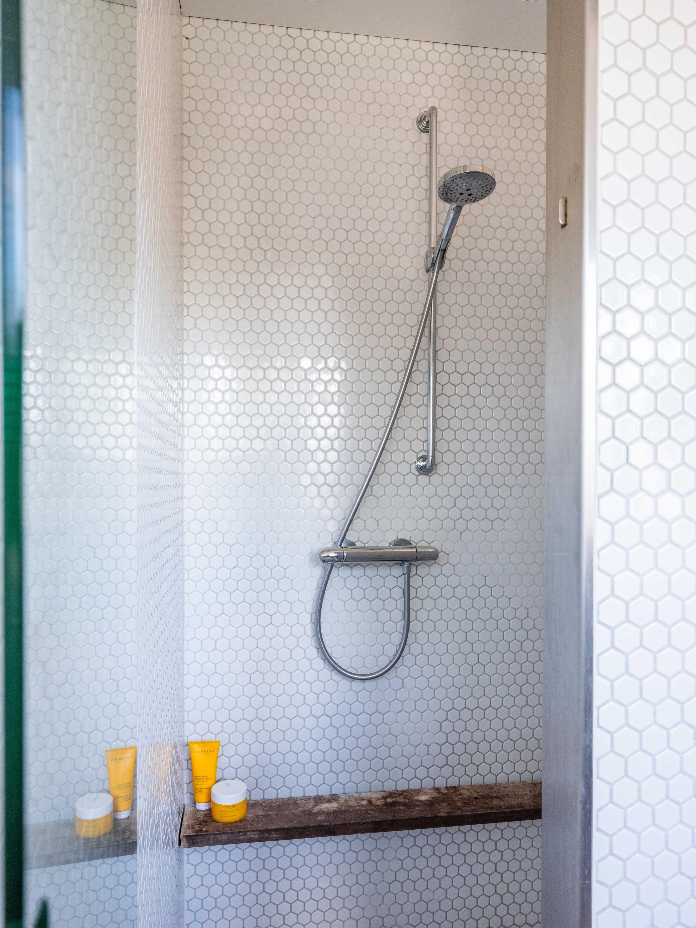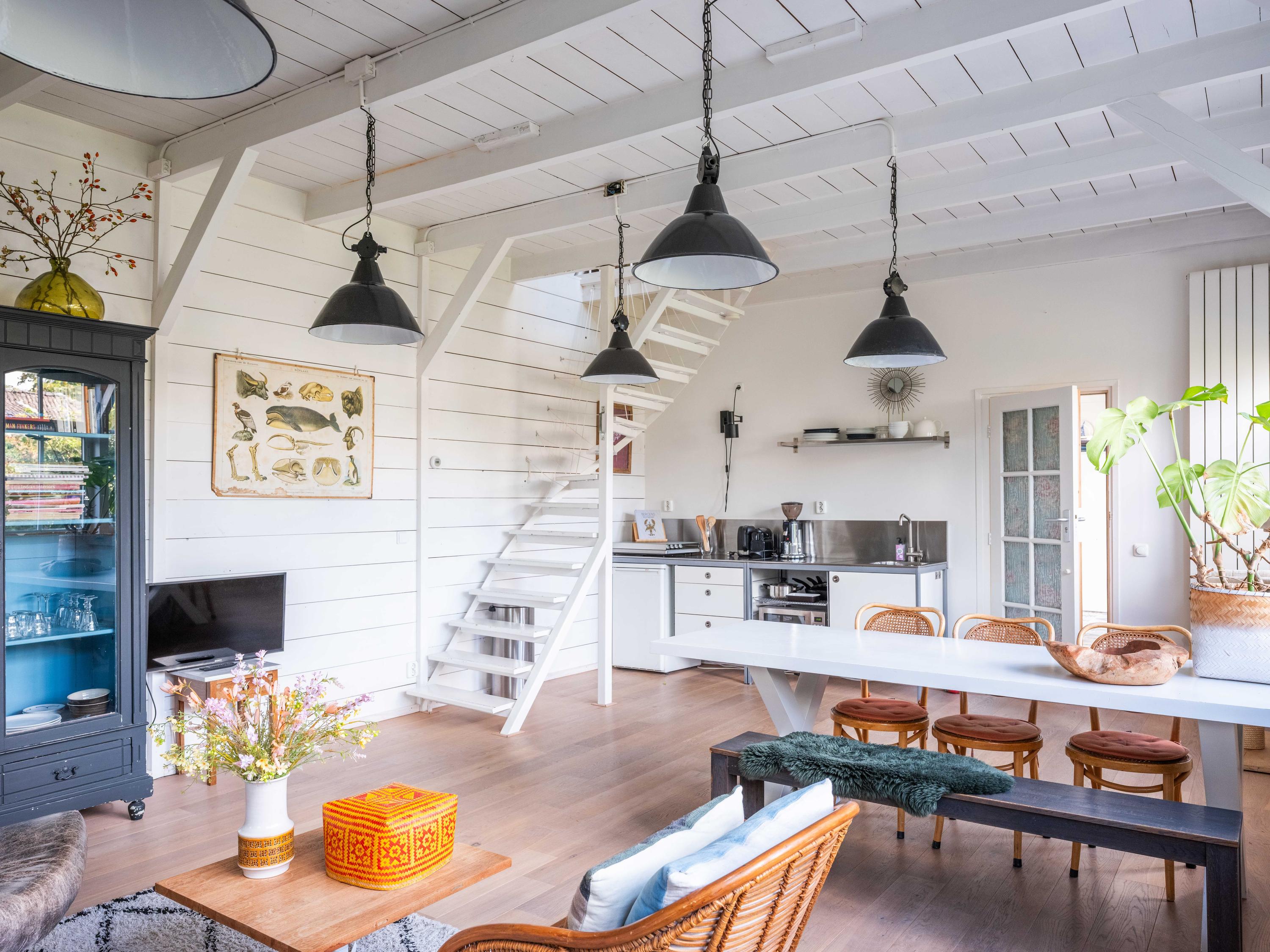 On the other side of the house, you will find the former atelier, now used as a guesthouse with a kitchenette and sleeping area. The roof has been insulated, and the upper floor is beautifully light and spacious.