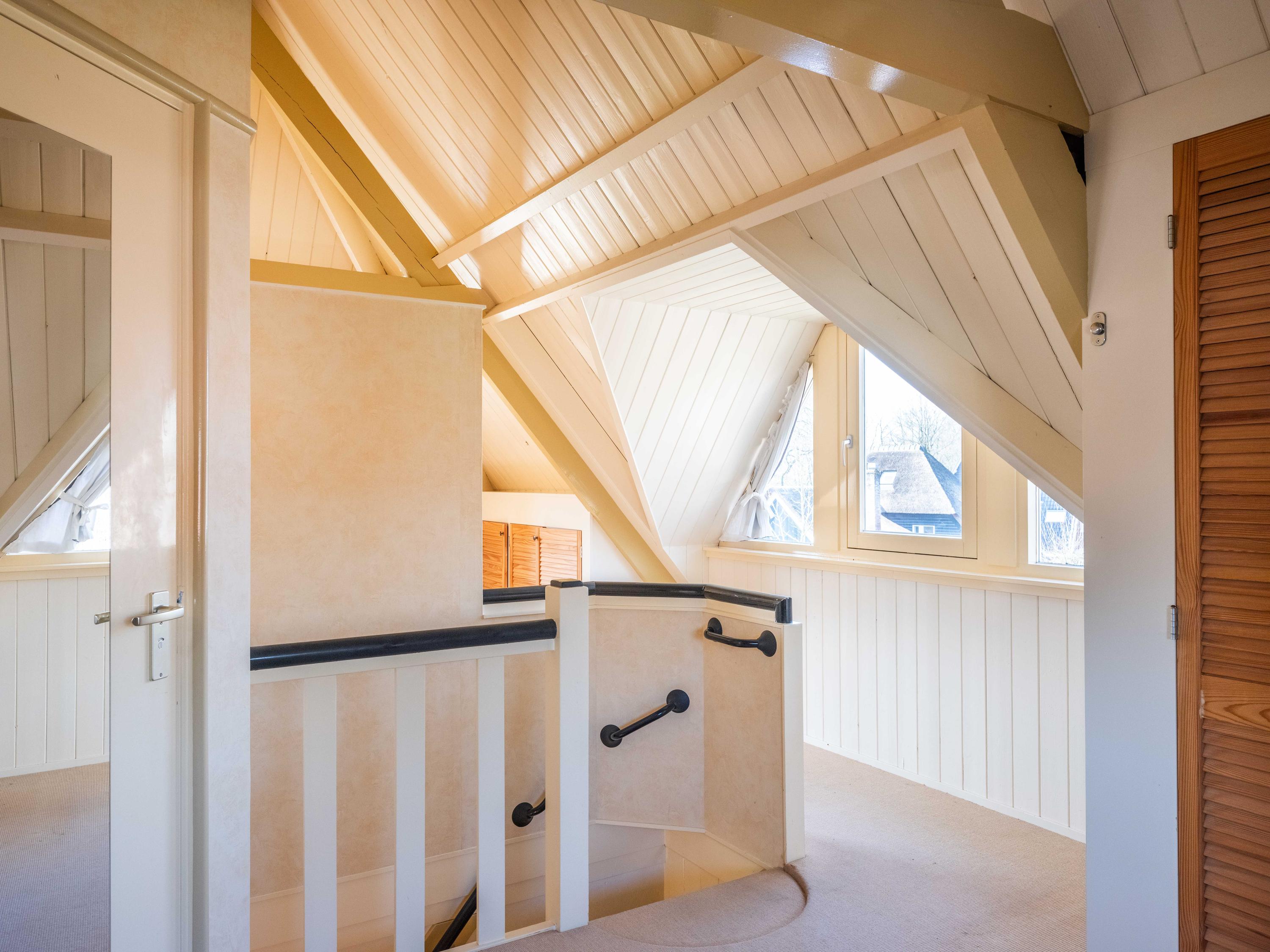 You enter this charming house through the red front door and intermediate hall with meter cupboard. The hallway with stairs to the first floor, a toilet and a large pantry under the stairs, continues into the kitchen. This is equipped with various built-in appliances including ceramic hob, combination microwave oven, fridge and dishwasher. The kitchen is also accessible from outside via a door at the side of the house.