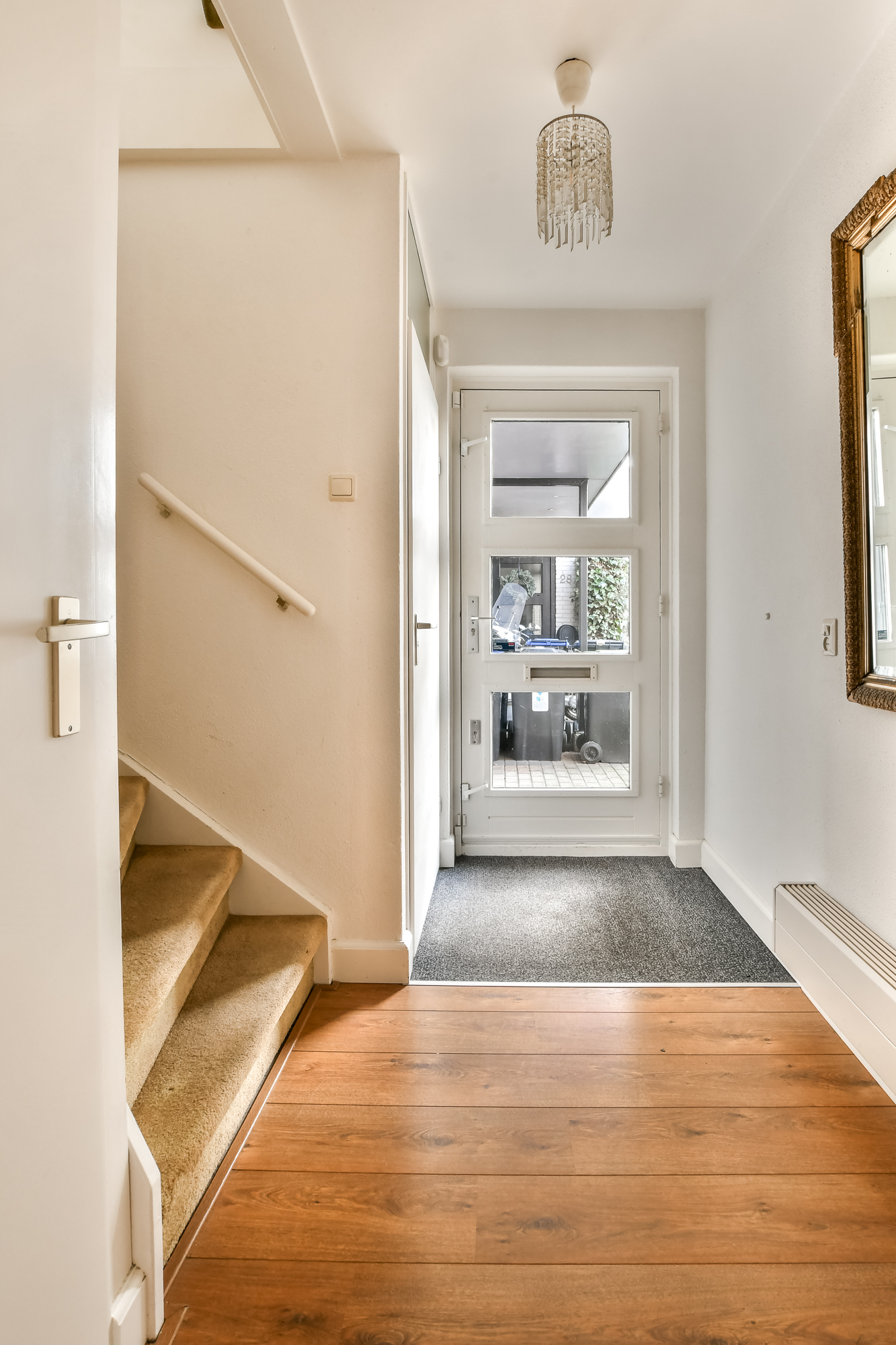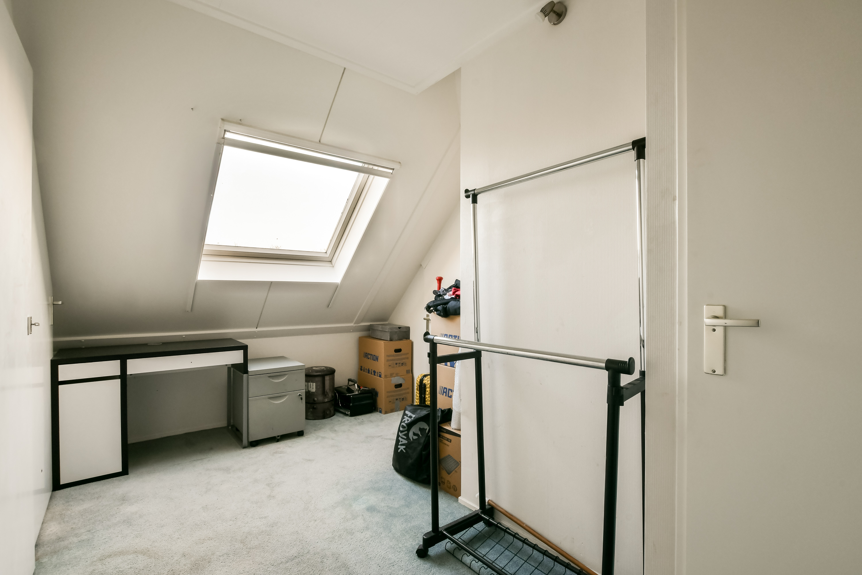 Upstairs, bedrooms offer flexibility and comfort, including one with a balcony overlooking the singel. The bathroom is appointed with a bath, shower, toilet, and double basins. Further, insulation features include roof, wall, and floor insulation, and double glazing. Modern facilities such as mechanical ventilation, fibre optic cable, awnings, sliding doors, and a skylight complement energy class B and central heating. This two family house in Bergschenhoek balances privacy, accessibility, and family lifestyle.