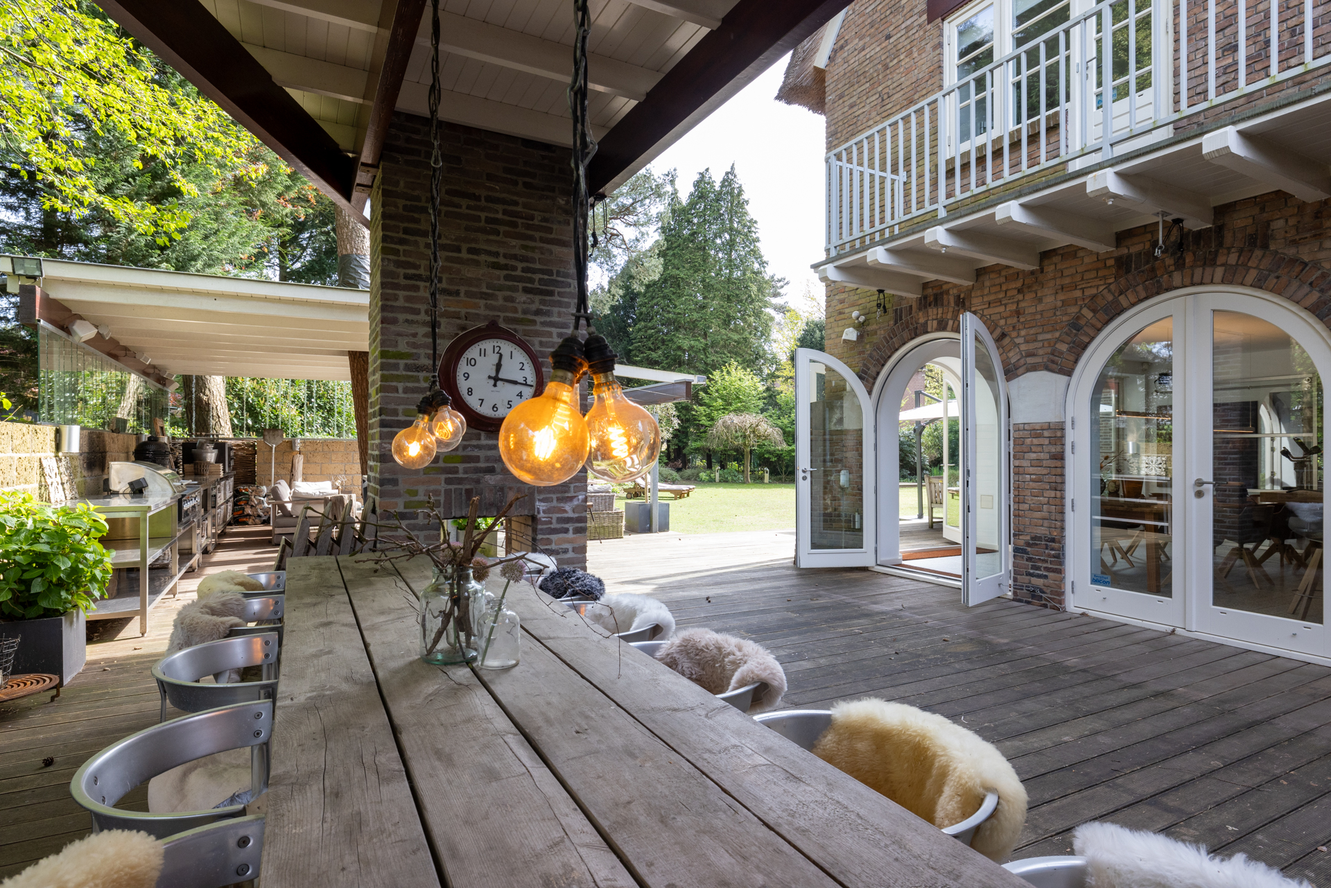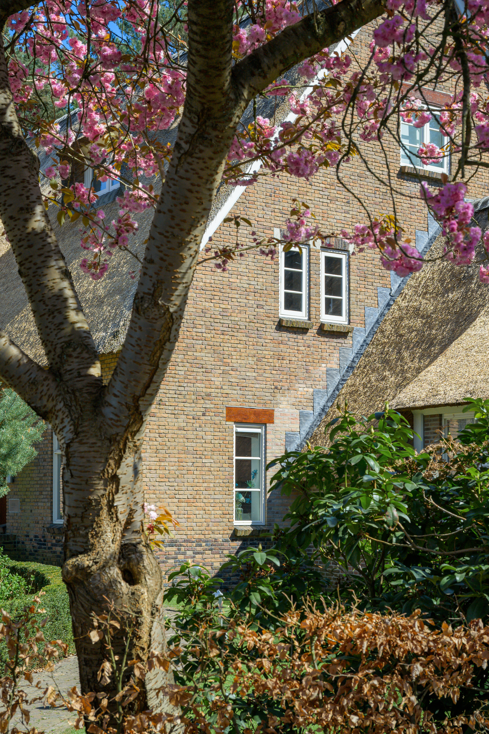 Very unique, perfectly maintained, thatched country house with, among other things, a luxurious wellness area with indoor swimming pool and fantastic outdoor space, situated at a prominent point in the middle of the popular and stately residential area "Ruitersbos" with its beautiful trees and within walking distance of the Mastbos.