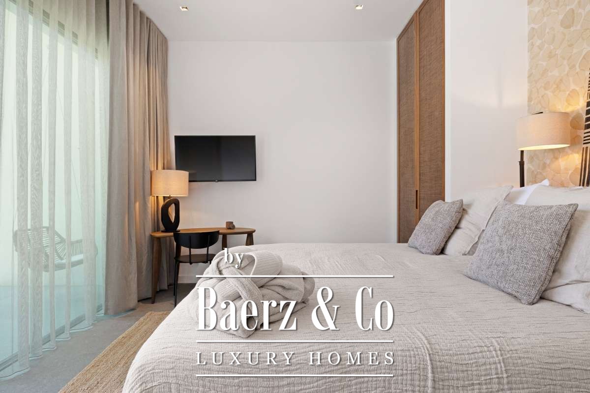 Five generously proportioned en suite bedrooms, all on the lower level, open onto private balconies and terraces, each offering a vantage point over the expansive tropical gardens and the pool. The master suites benefit from tranquil garden views and direct access to the serene pool terrace. Throughout, underfloor heating, air conditioning, double glazing, and a full alarm system ensure comfort and peace of mind.