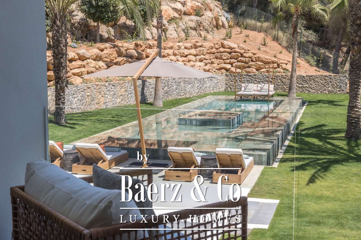 Modern villa Can Furnet invites refined living in one of Ibiza’s most coveted residential enclaves. This elevated home with 426m² of living space, thoughtfully designed by Blakstad, commands spectacular views over Dalt Vila. Set within a tranquil 1,404m² plot, it offers a rare combination of privacy and immediate access to the cultural pulse of Ibiza Town, the fashionable marina of Botafoch, and the sandy stretch of Talamanca Beach, each within minutes’ reach.