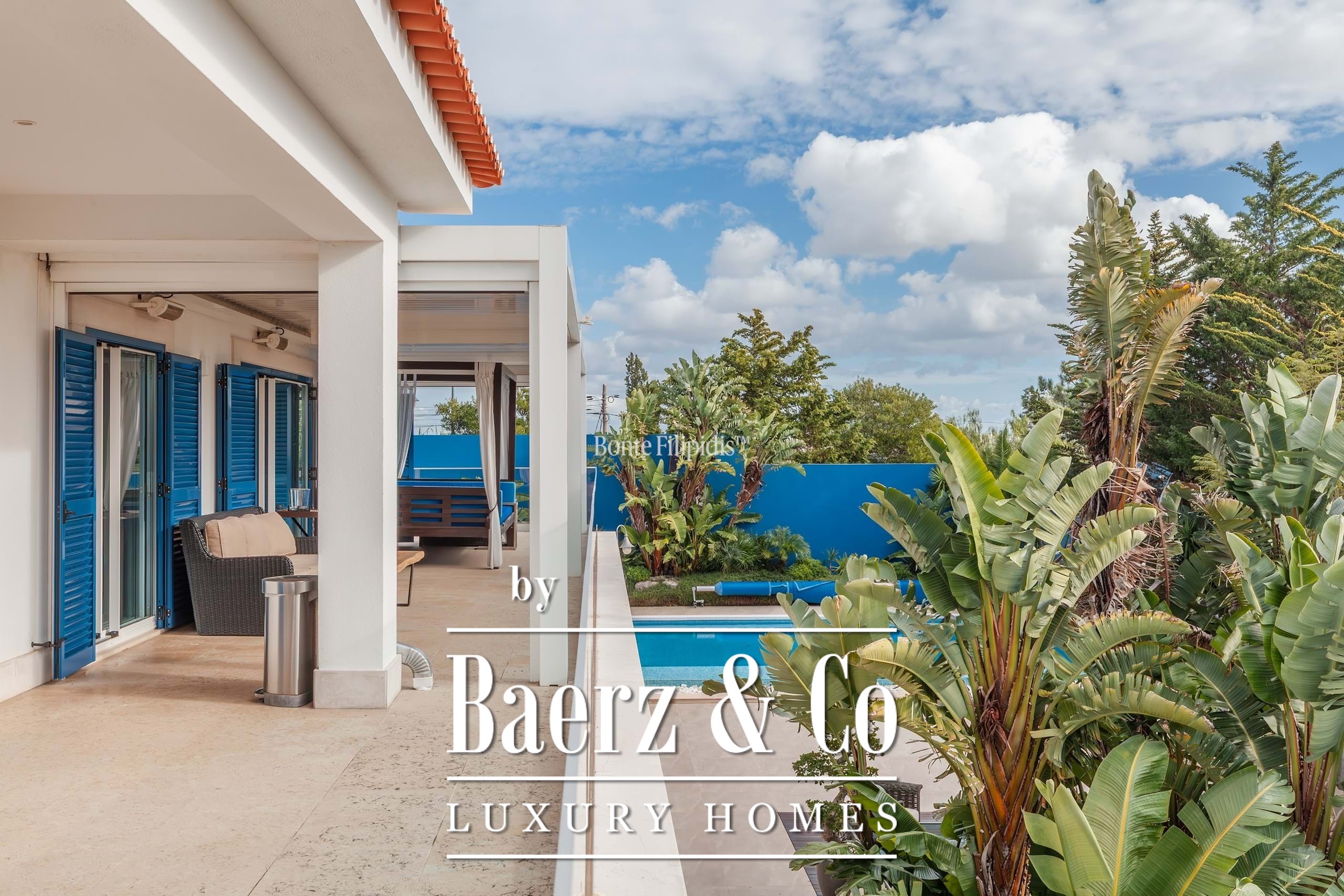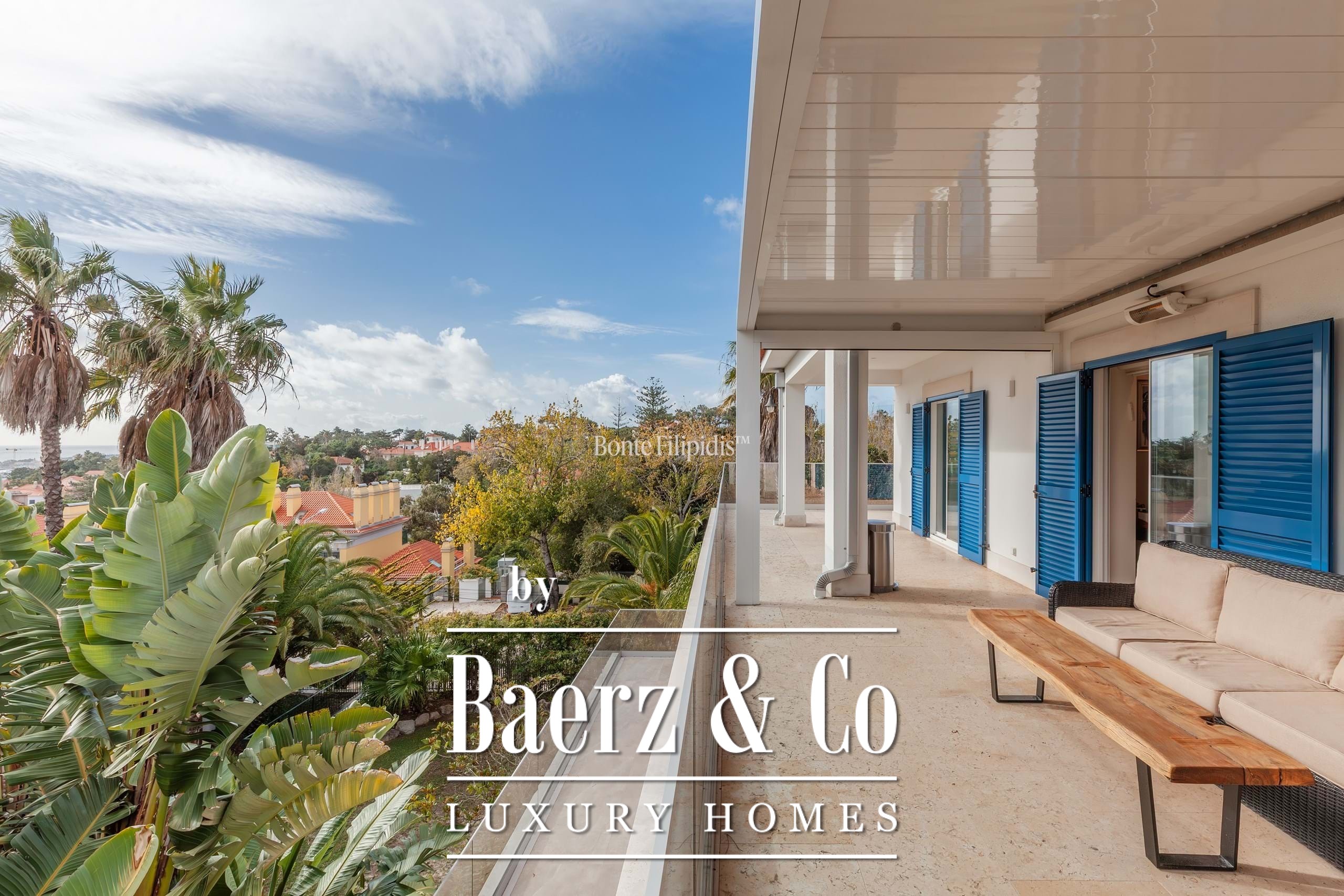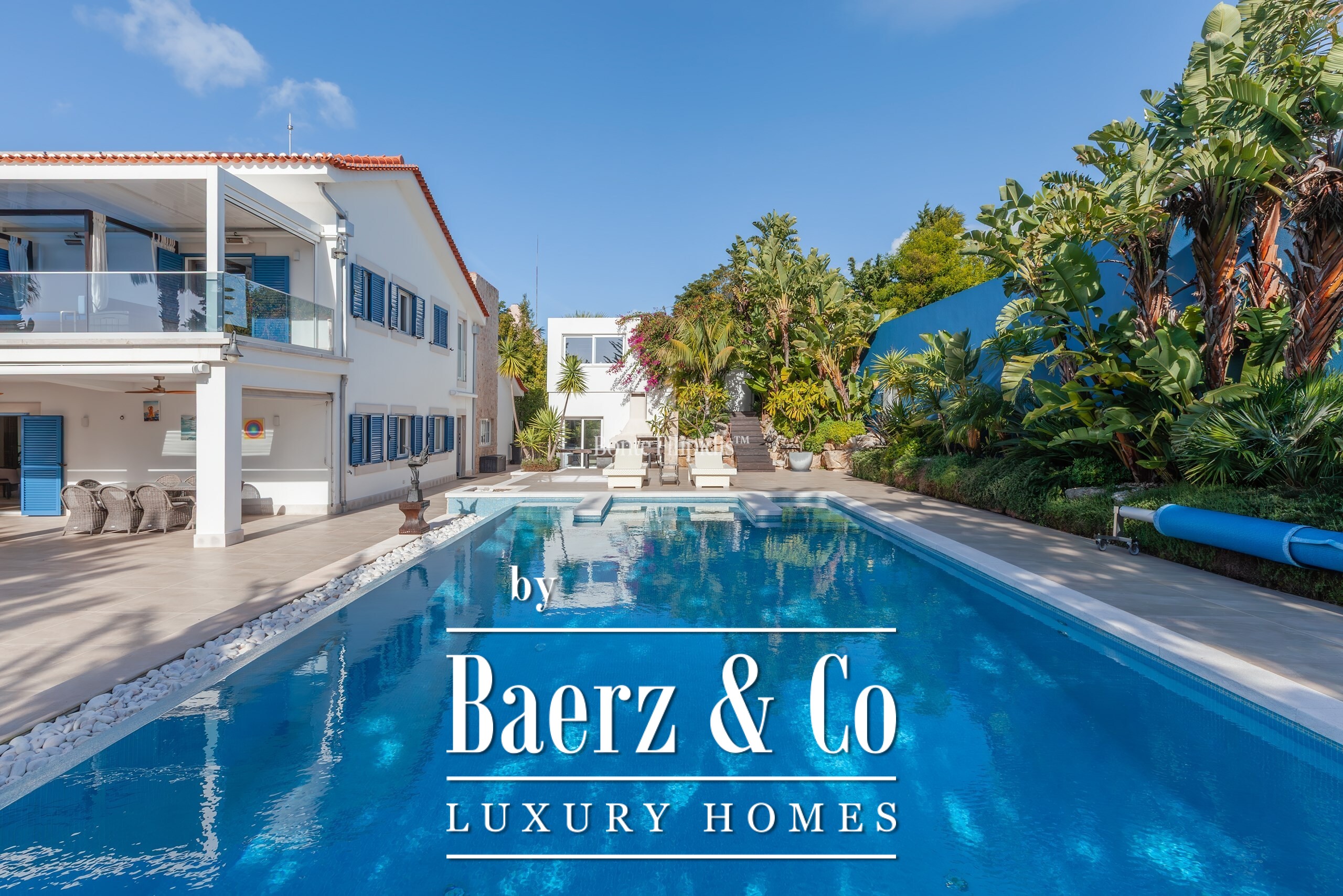 Villa Cascais e Estoril occupies a privileged plot of 2,100 m² at the highest elevation in Estoril, defining a rare dialogue between seclusion and amenity. This villa Cascais e Estoril rests between the renowned Estoril Golf Course and exclusive access to the Estoril Tennis Club, striking a harmonious balance between privacy and connection. Sea views unfold across two floors, and generous garden terraces shape the landscape into a series of living spaces, where sheltered seating, a lake, waterfall, jacuzzi, and a heated saltwater pool evoke a measured tranquility.