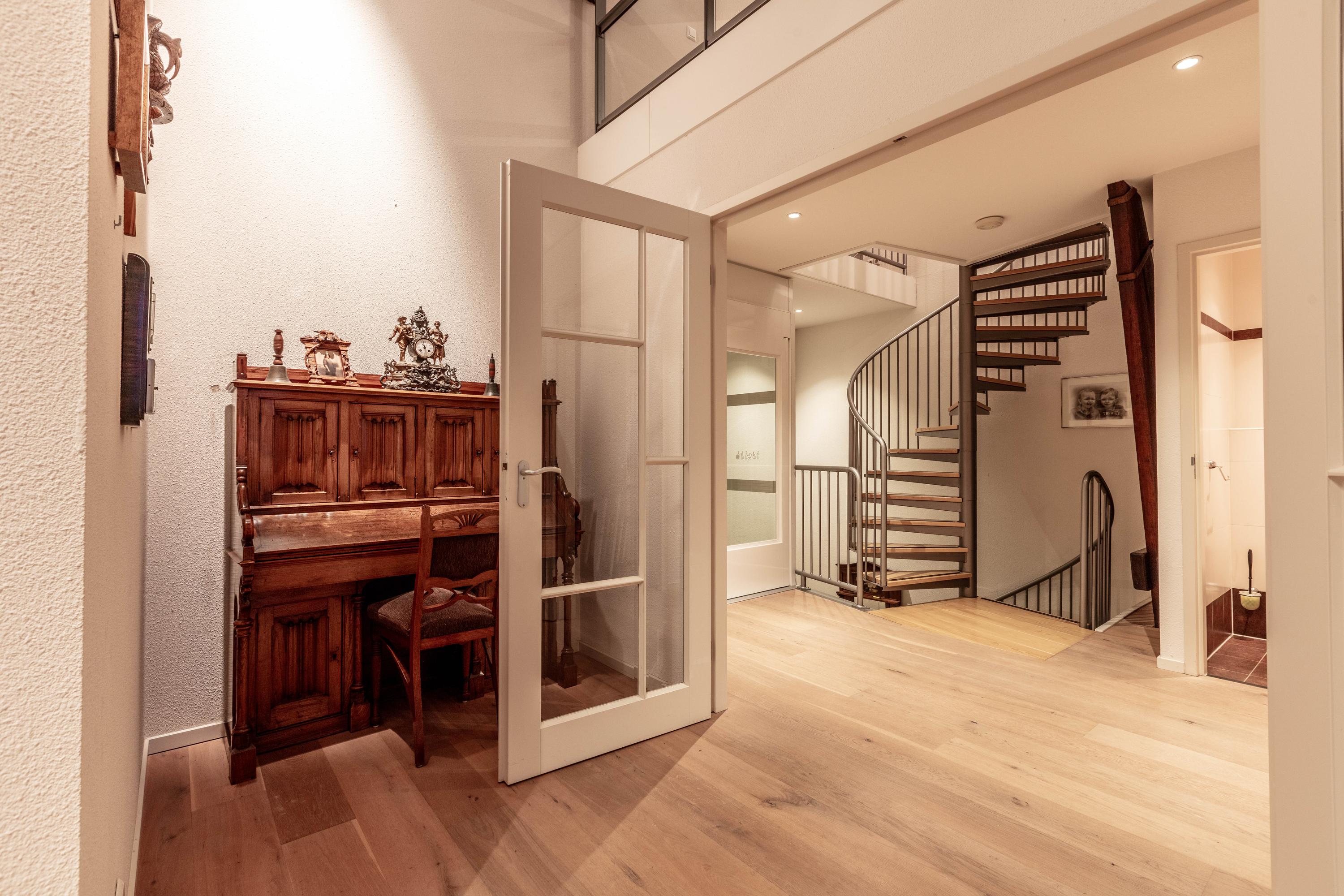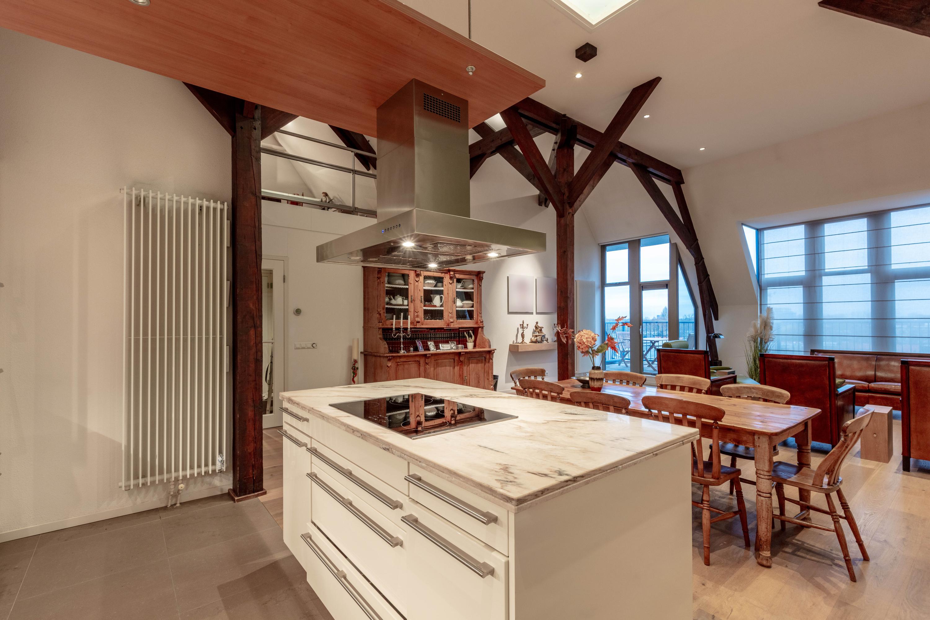 Apartment Delft with lift offers a rare opportunity to reside in a striking heritage setting within the city centre. Set in the former TU-library, this duplex top floor residence blends monumentality and modern living across 193 m². The apartment is accessed by a private lift, offering comfort for every stage of life.