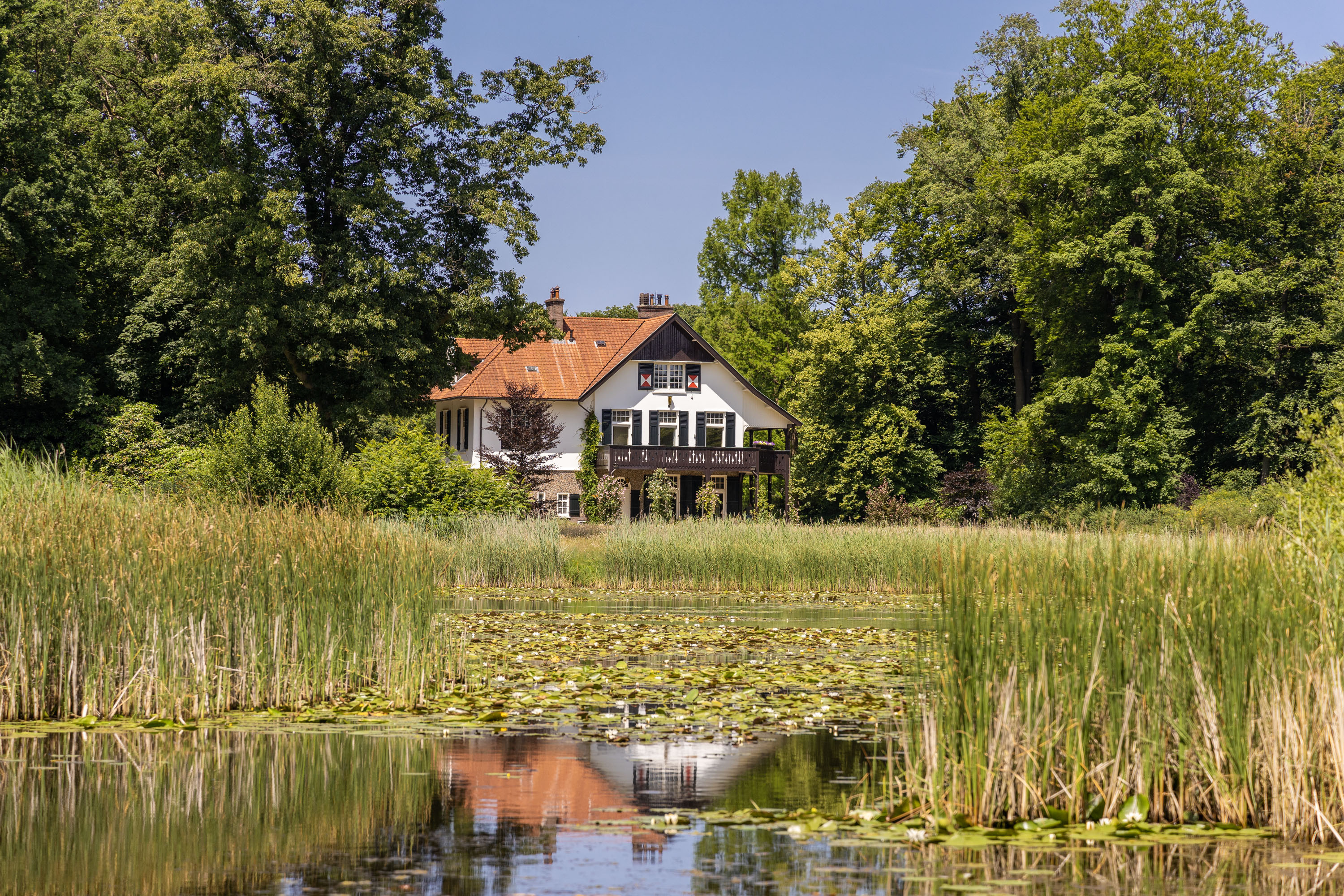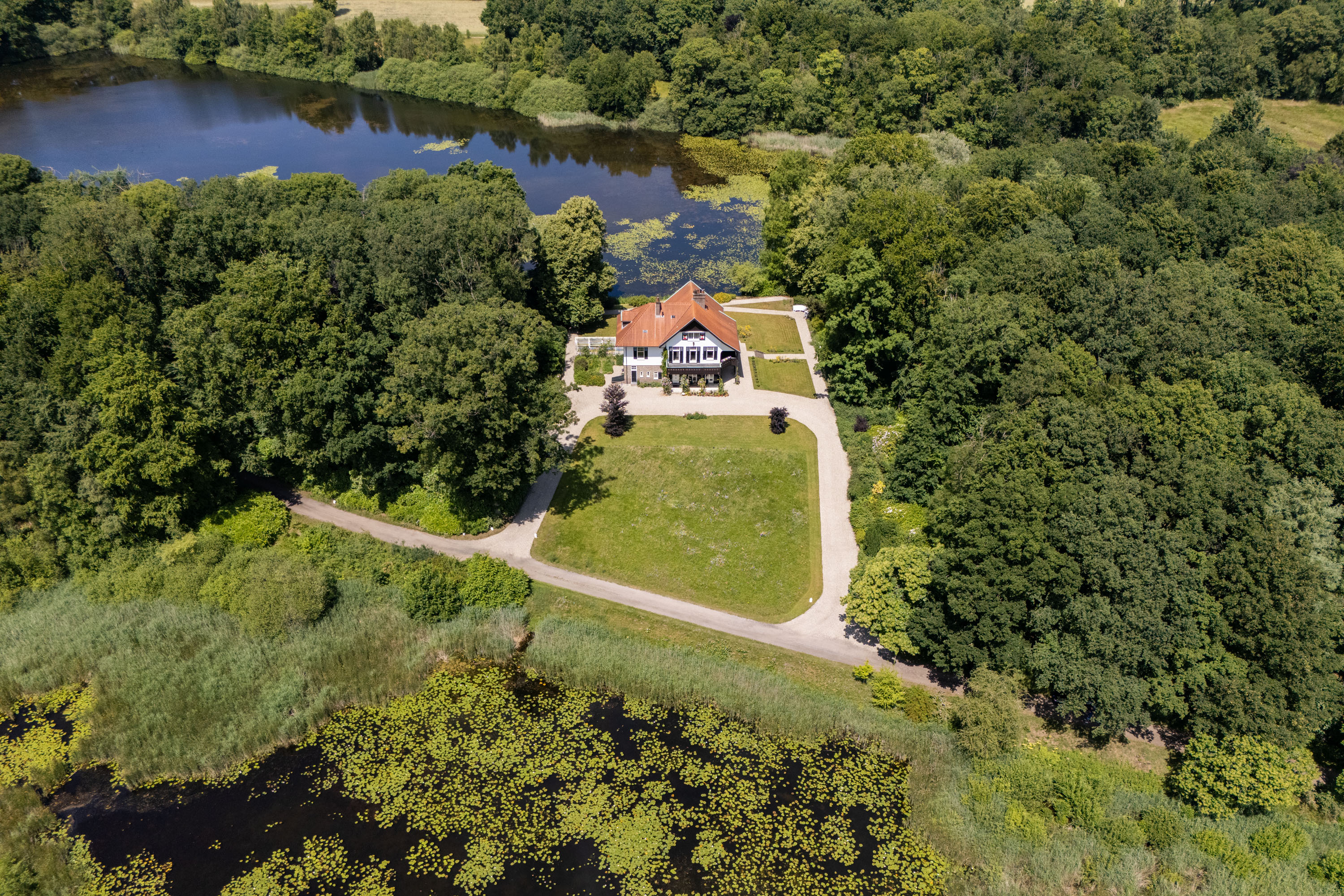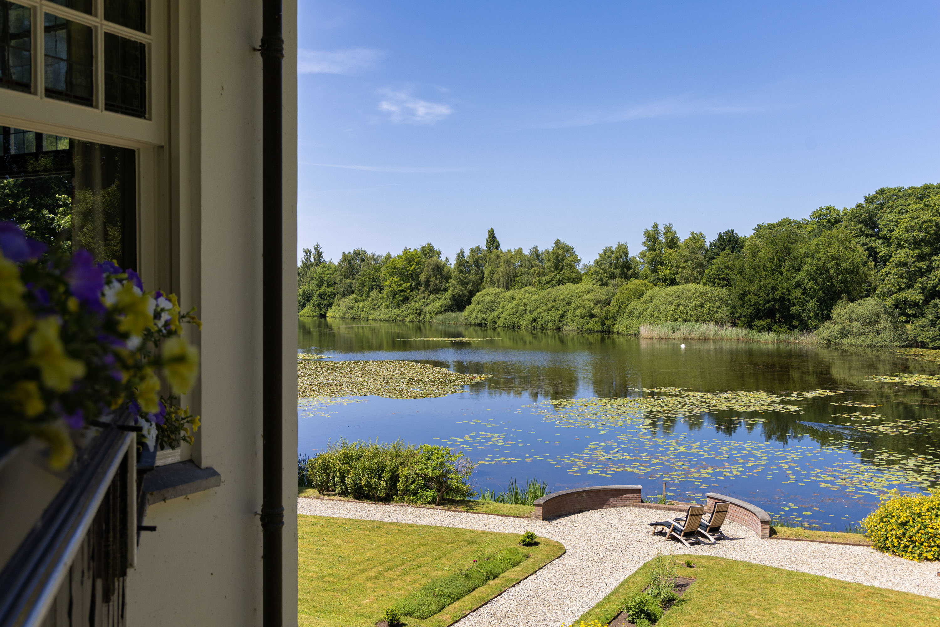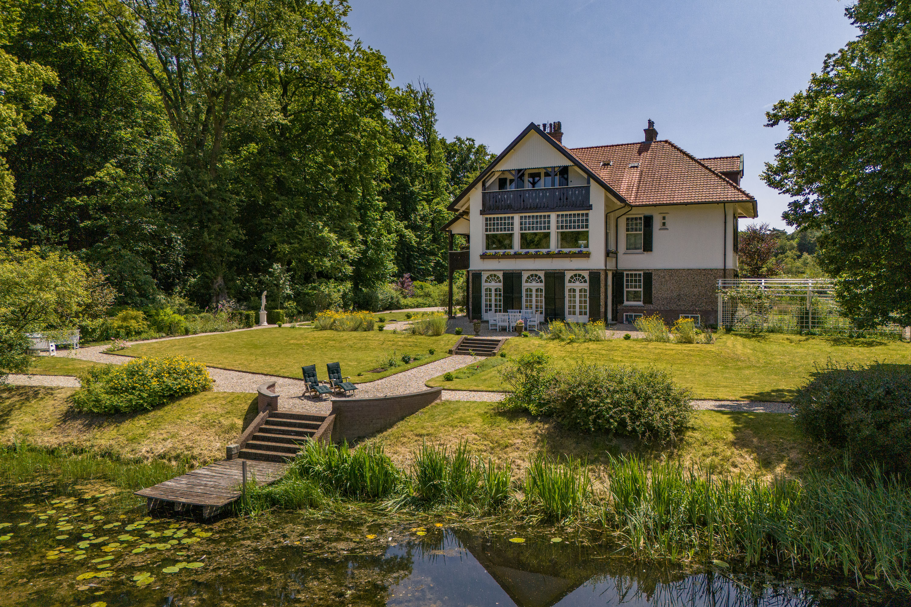 Over the past decade the current owners have made every effort to restore the estate to its former glory. Together with Landschap Overijssel and several renowned partners a restoration plan was carried out for both the garden and the park. Everything was done in line with the intentions of landscape architect L.A. Springer, who designed the estate in the early 1900’s. The two main sightlines from the house to the lakes have been restored as well as several sightlines on both sides of the house, including the so-called maid's lane leading to the nearby farmhouse. The restoration and (re)design of the rose garden, borders, lawns with garden ornaments, ornamental forest edges, decorative shrubbery, park layout with old trees, orchard, and wildflower meadow with historical ornamental plants were completed, complementing the garden and park. It is almost inconceivable how many plants and shrubs have been planted in recent years.