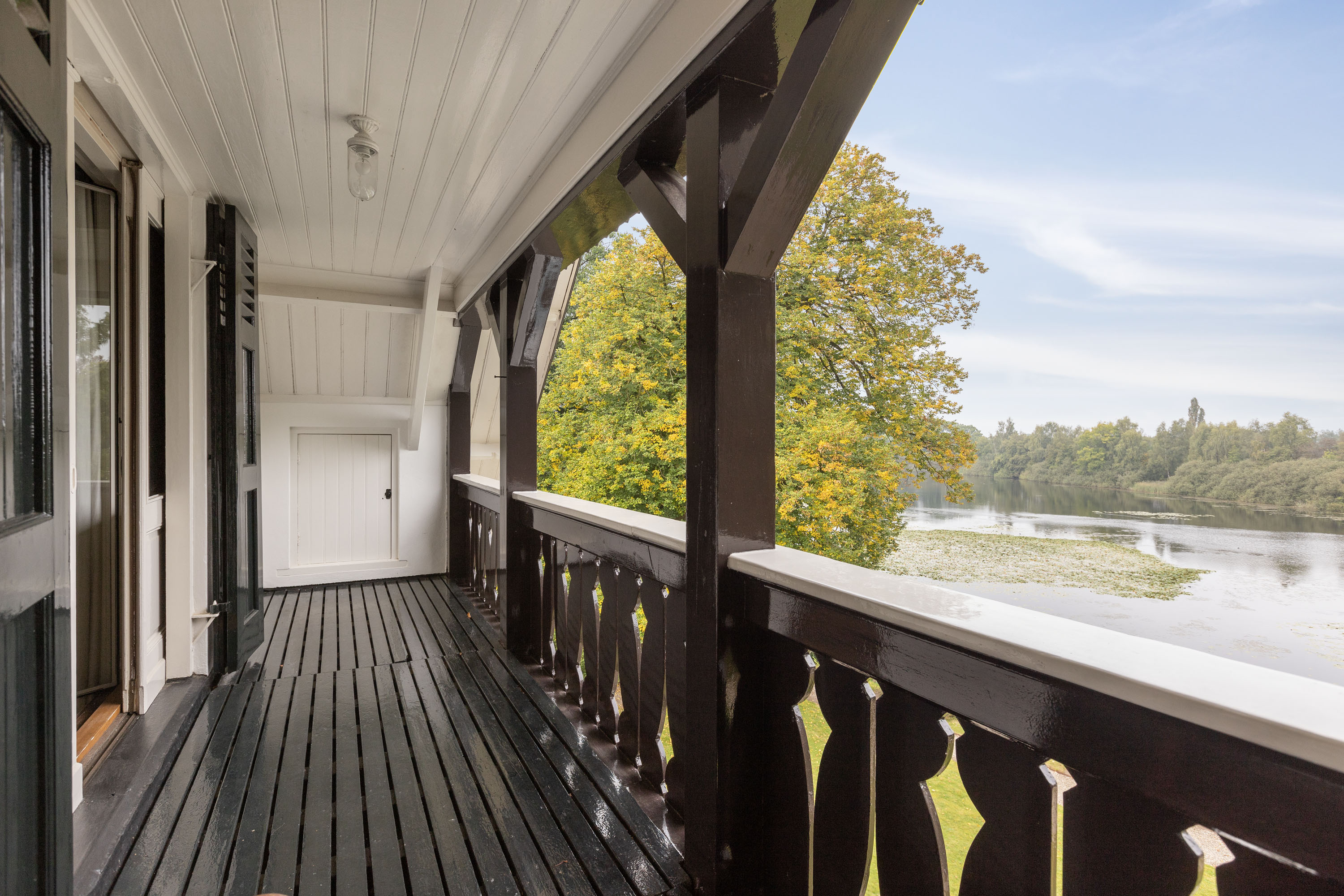 This villa, built in 1901 and designed by architect Karel J. Muller in chalet style, is a national monument. Architect Muller is known for projects such as the Rijksmuseum in Enschede, Tuindorp 't Lansink in Hengelo and several prestigious country houses in Twente. The villa was originally commissioned by Otto Stork, a member of a well-known industrial family. After nearly a century of family ownership the Overijssels Landschap Foundation purchased the Lonnekermeer estate in the early 2000’s including this villa, which was later sold to the current residents with the land leased on a hereditary basis. At the time the house was in a poor state of repair and was subsequently restored to its former glory, preserving its original character and many authentic details. Features such as the terrazzo floors and the original parquet flooring remain intact. The numerous built-in cabinets and service cabinets in the kitchen and pantry are still present. The three fireplaces, two bathrooms and five toilets, most of them with unique facilitary facilities, are also still part of the property. Some original light fixtures have been preserved, as well as the apple drying cabinets in the basement. The many windows provide a very pleasant natural light and offer phenomenal views on all sides. Nearly all transom windows contain stained glass. Despite its age and the focus on preserving details, the villa offers modern comfort. The entire villa has secondary glazing, cavity walls and an insulated roof. In 2023 a pellet stove system, a wood stove and a heat pump boiler were installed. Thanks to careful and systematic annual maintenance supervised by the Monumentenwacht, the house is currently in excellent condition. A structural report is available.