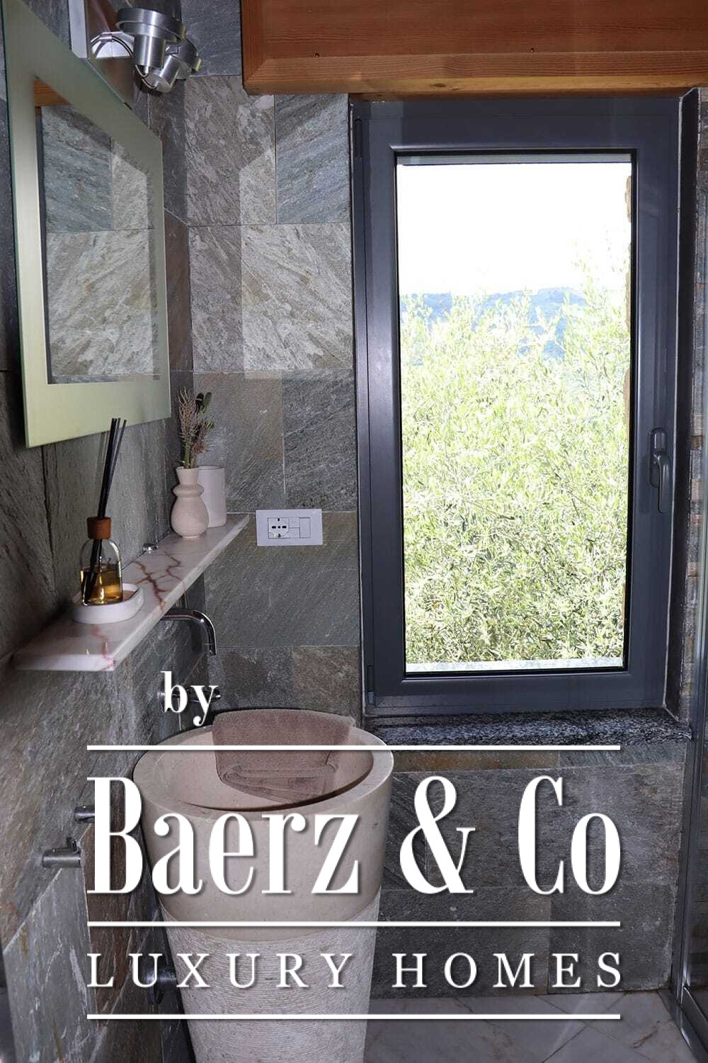 The 11 by 4 metre swimming pool, fully renovated in 2022, lies next to an expansive terrace, offering views over the valley and out to the sea. Multiple terraces, outdoor kitchens, and shaded pergolas invite relaxed dining through all seasons. Paths around the house are lined with olive groves, with hours of sun ensuring exceptional harvests.