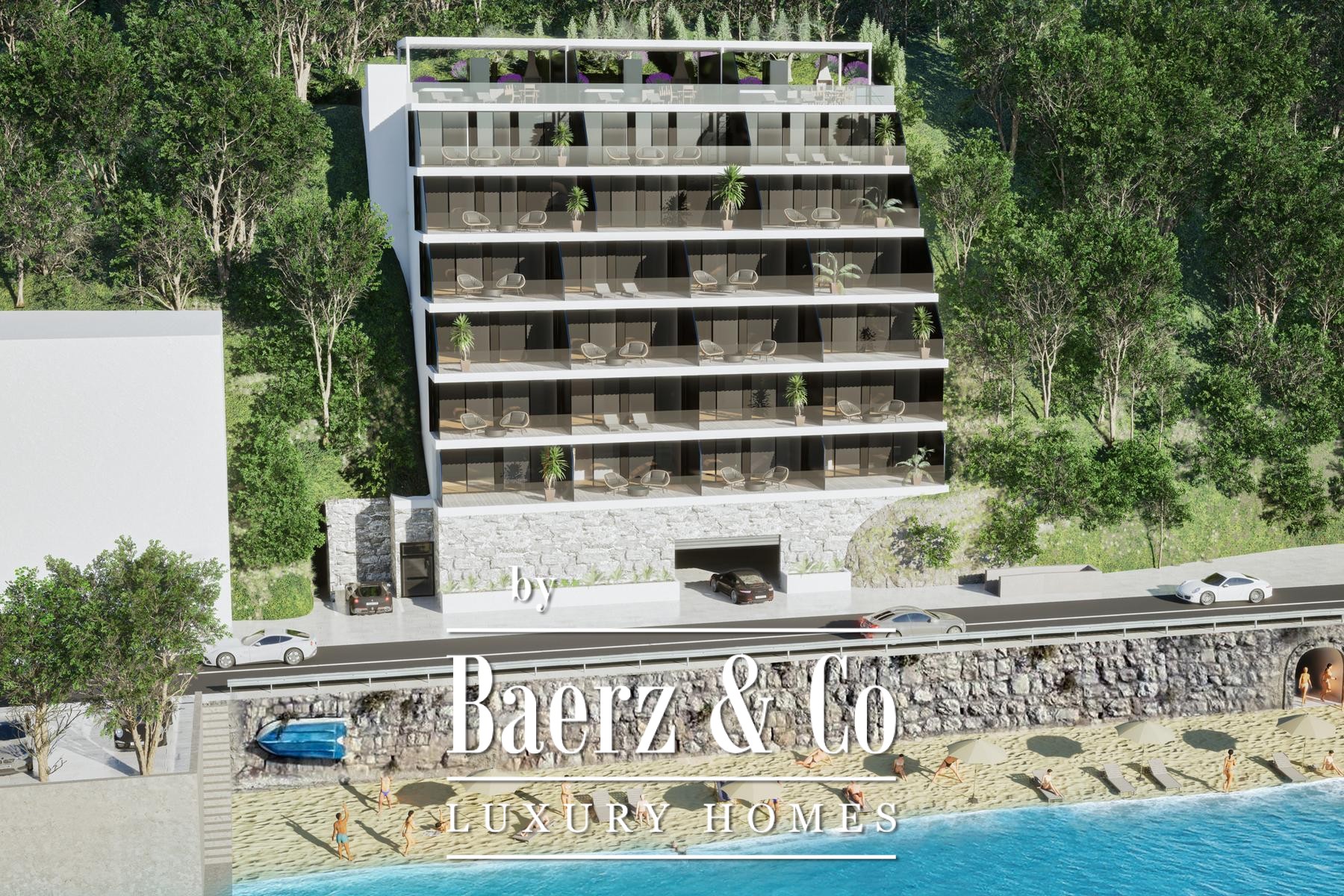 with a ramp, 2 spaces one below the other).The buyer does not pay real estate transfer tax.Construction begins in autumn 2024.Planned completion of construction in autumn 2026.This property can be purchased through a bank loan.The main advantage of this property is an open sea view from all floors, located 1st row to the sea (between roads) and a beautiful beach, between the tourist centers of Split and Omiš.Other information on request.