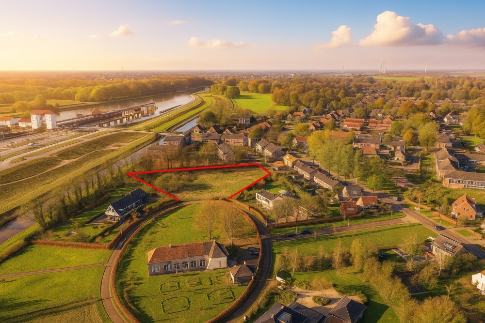 Beautifully situated building plot of 6,029 m² for the construction of a spacious country house, with the unique potential for subdivision into two dwellings. The plot offers a remarkable sense of freedom, with woodland to the rear ensuring additional privacy. Part of the land borders directly on the banks of the Eefsche Beek, with a green strip and the Twente Canal beyond, overlooking the impressive Eefde lock.