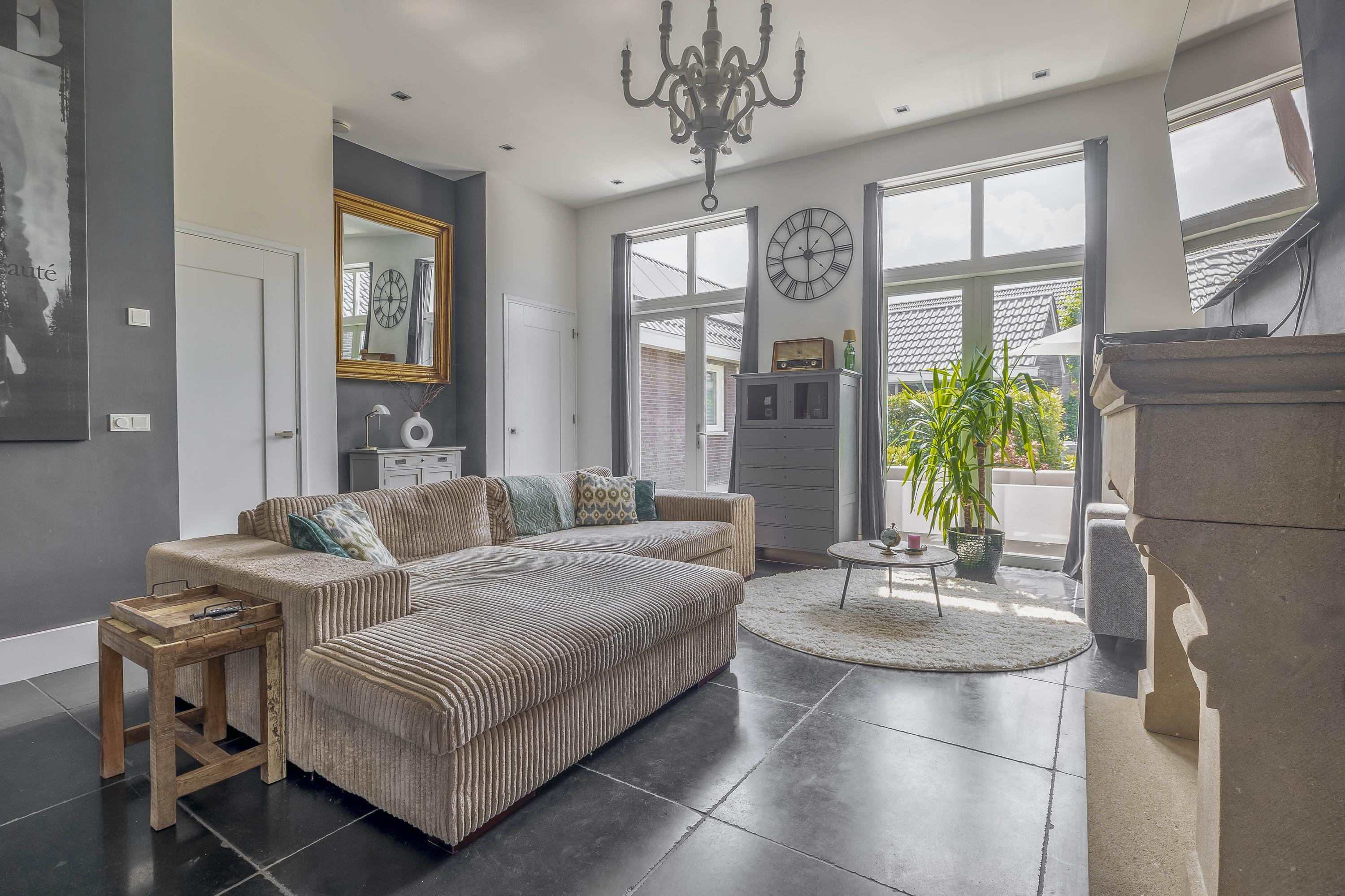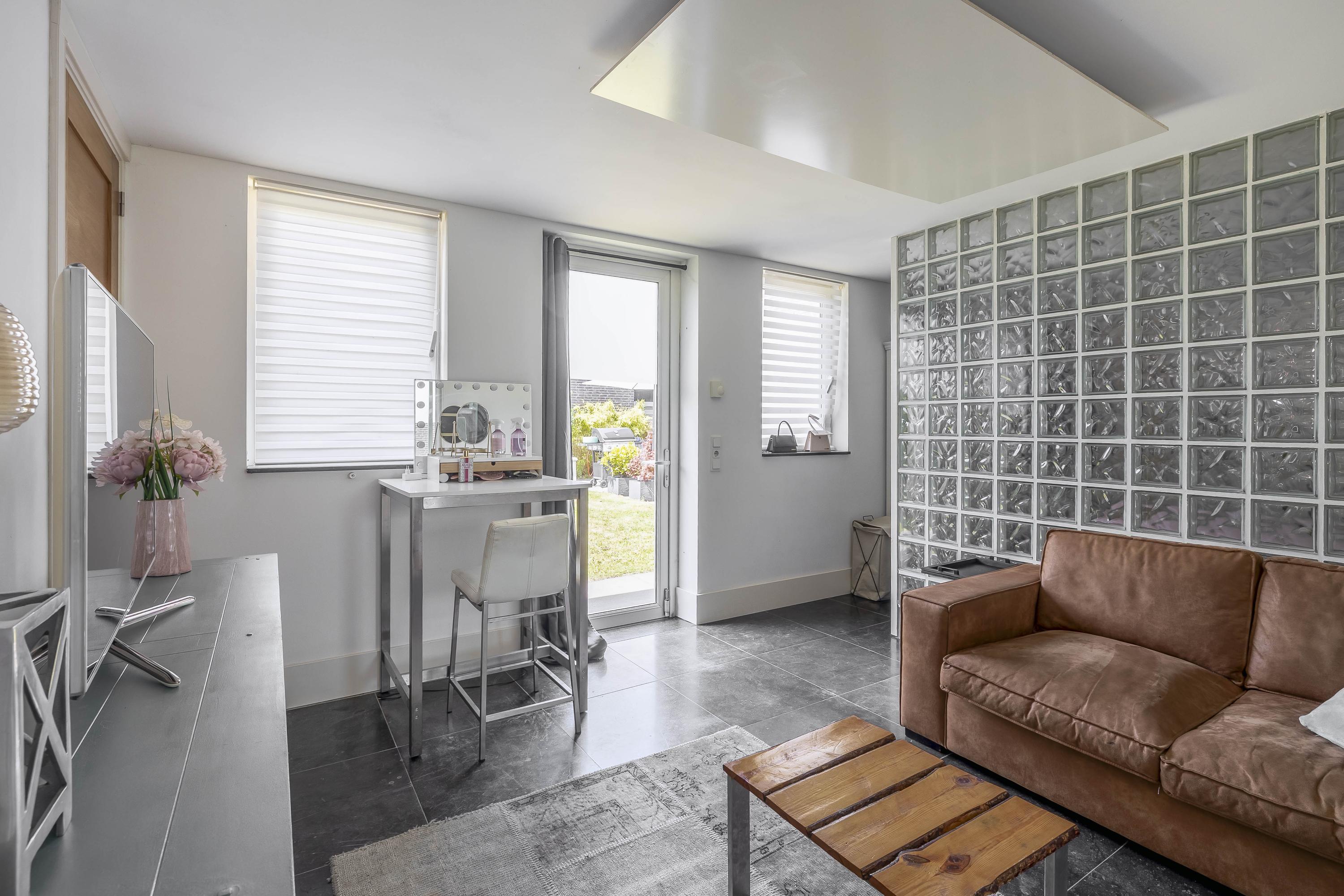 Through the spacious entrance with beautiful tiled floor, modern toilet and extensive meter cupboard, you enter the kitchen at the front of the house. This stylish and complete kitchen is the heart of the house and features a kitchen island, luxury appliances and plenty of workspace. Thanks to the raised floor level, you have a beautiful view of the street.