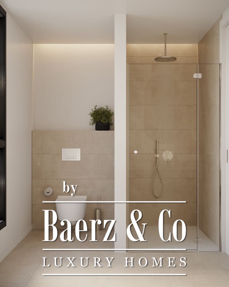 The development brings the comforts of a five-star resort to a residential environment. Residents enjoy a centrally placed forty metre swimming pool with adjoining sunbathing terraces, while leisure facilities include a fully equipped gym, indoor pool, sauna, Hammam, changing rooms with secure lockers, and a co-working lounge. Every aspect is crafted for a seamless, secure living experience, from underground parking with electric vehicle charging to a 24-hour security gate and video intercom entry to each home.