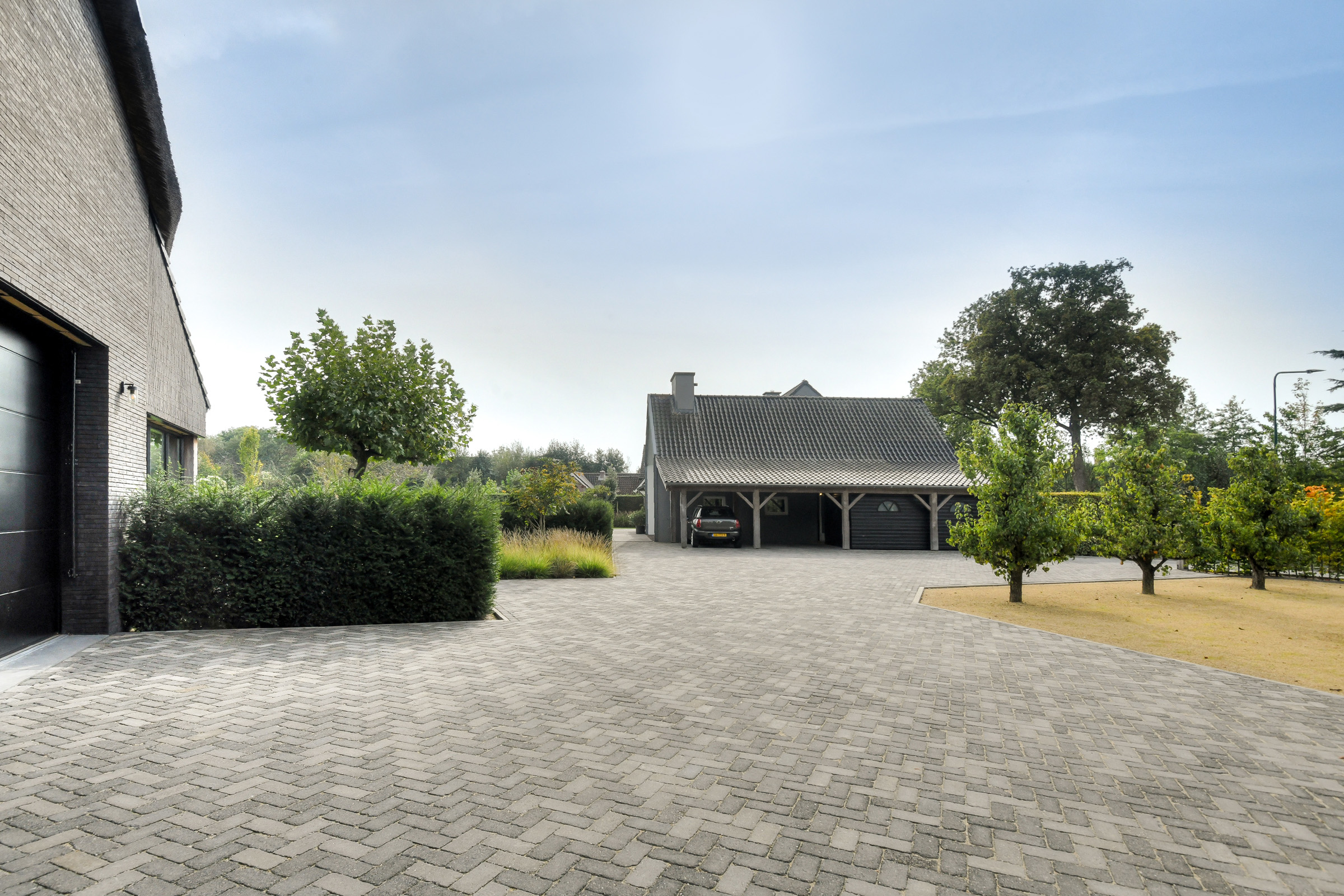 In a unique location on the southern side of Breda, in the village of Galder and bordering the Markdal nature reserve, lies this luxurious detached villa with a multifunctional annex. The entire property sits on an exceptionally generous plot of no less than 25,110 m², spread over five parcels. Here, you live surrounded by greenery, with complete privacy and expansive views over your own lands and the surrounding meadows.