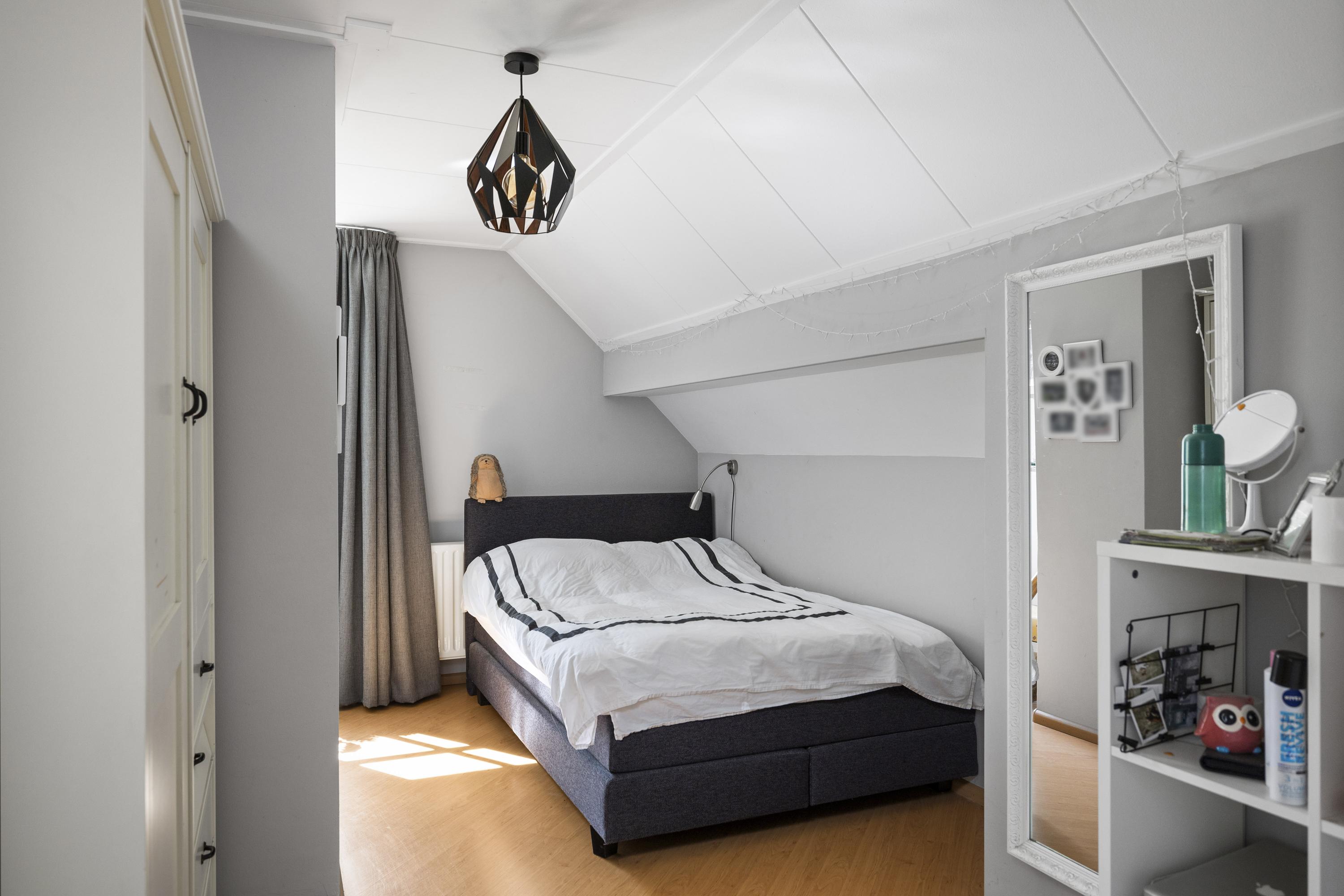 Upstairs is a spacious bedroom.