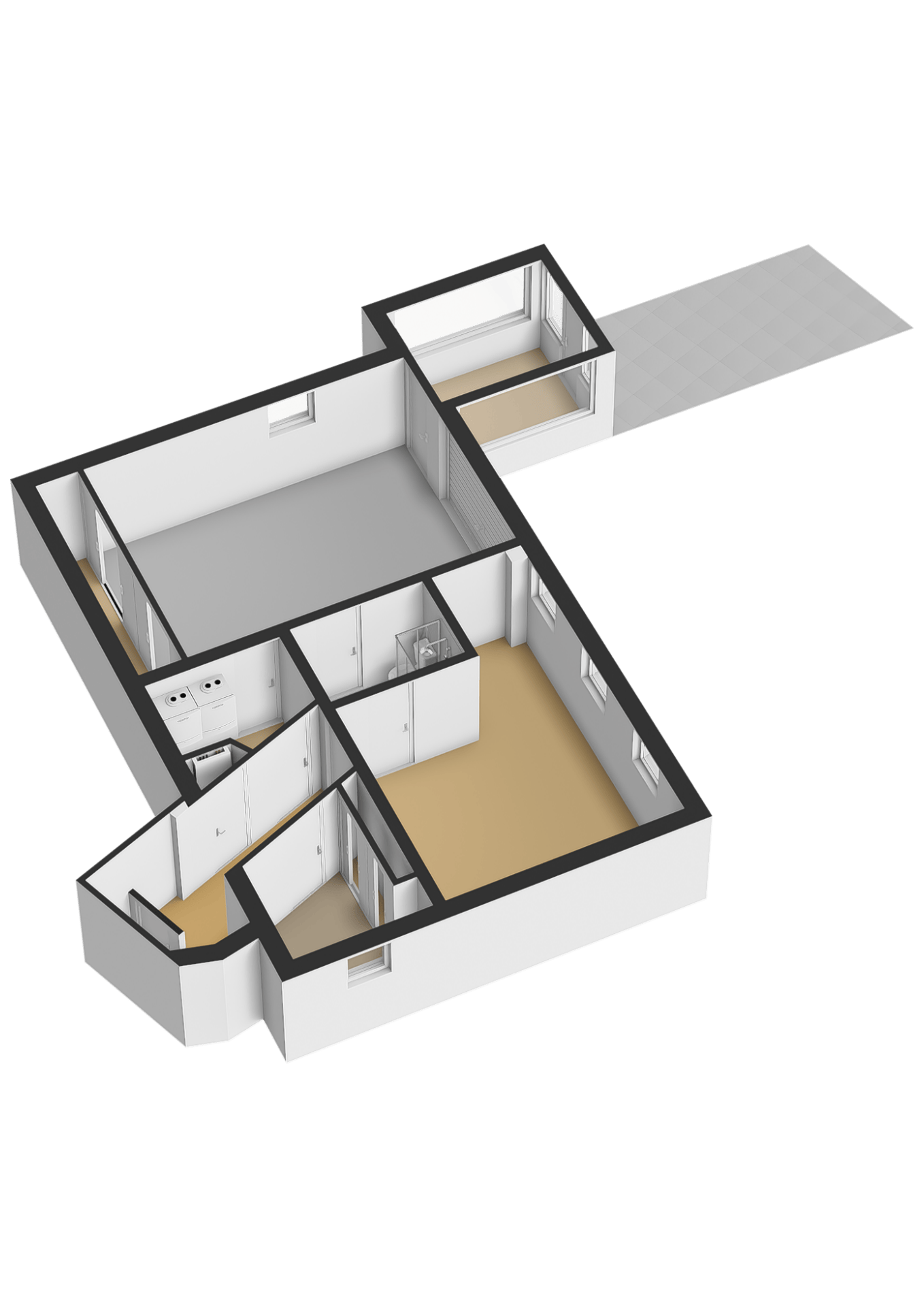 The storage attic with standing height offers possibilities for creating an additional bedroom, workspace or studio.